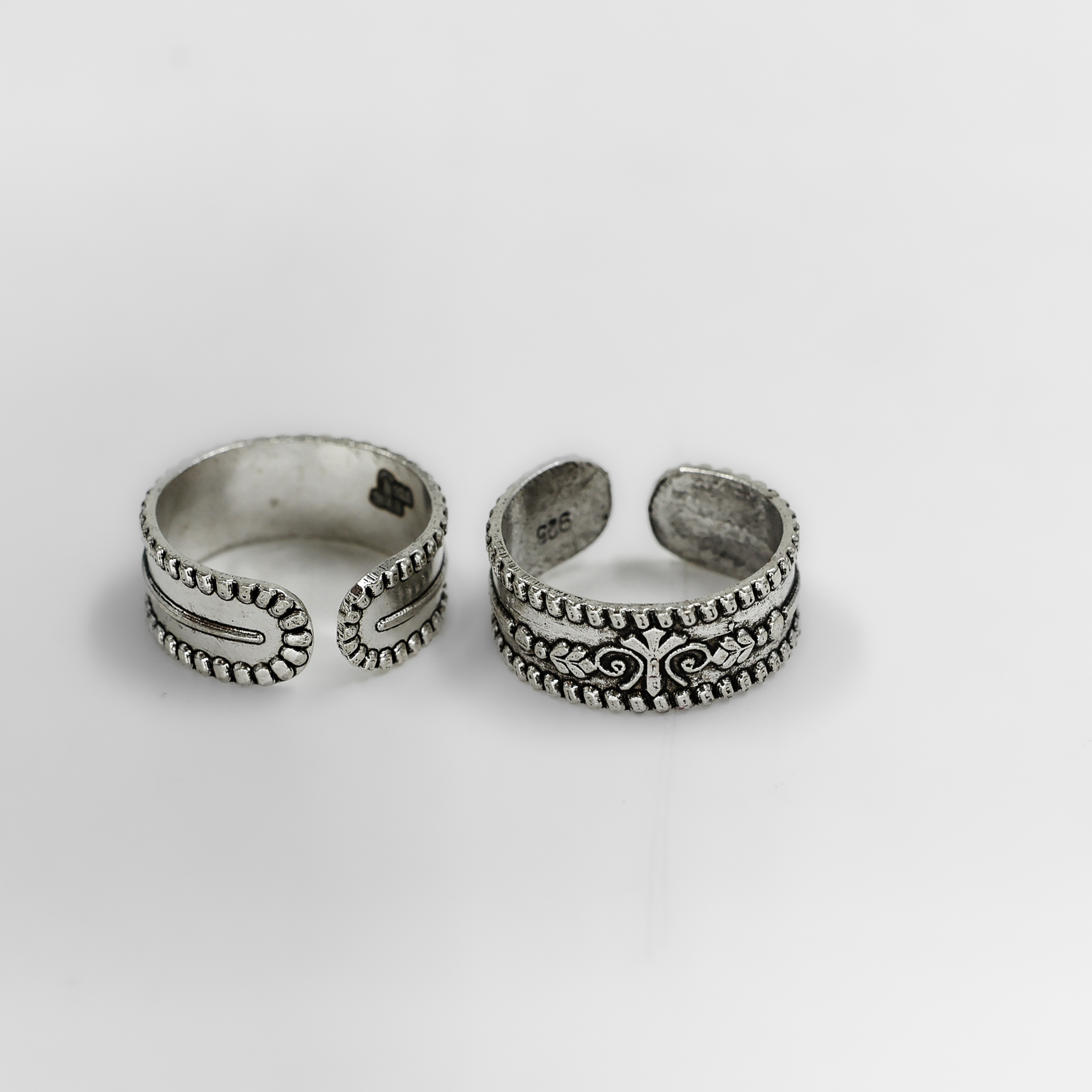 Oxidized silver toe ring with intricate design, perfect for traditional and everyday wear. Buy Silver Toe Ring from Raag Silver Jewellery in Hyderabad.