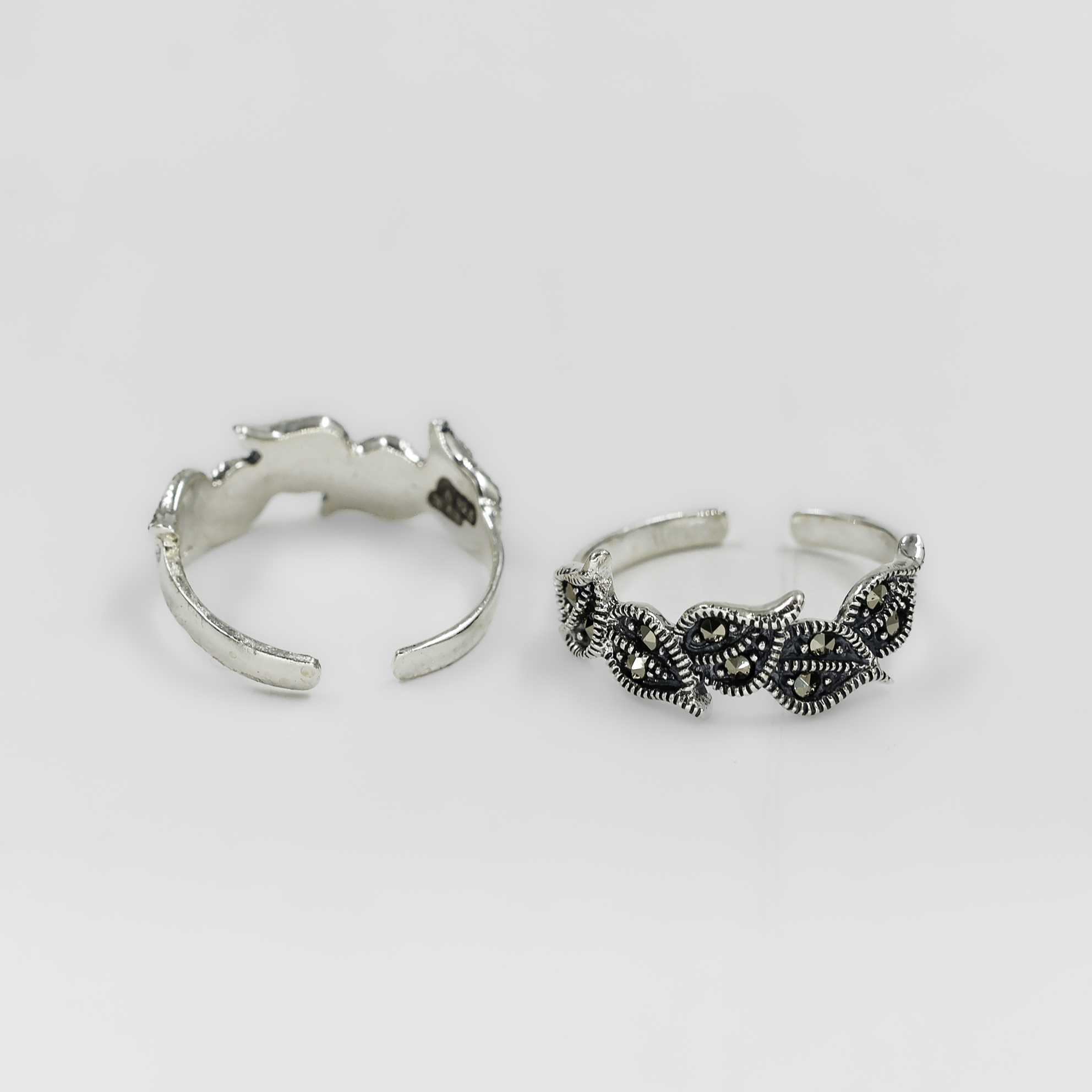 Elegant silver toe ring with a floral design, perfect for adding a touch of style to your feet. Buy Silver Toe Ring from Raag Silver Jewellery in Hyderabad.