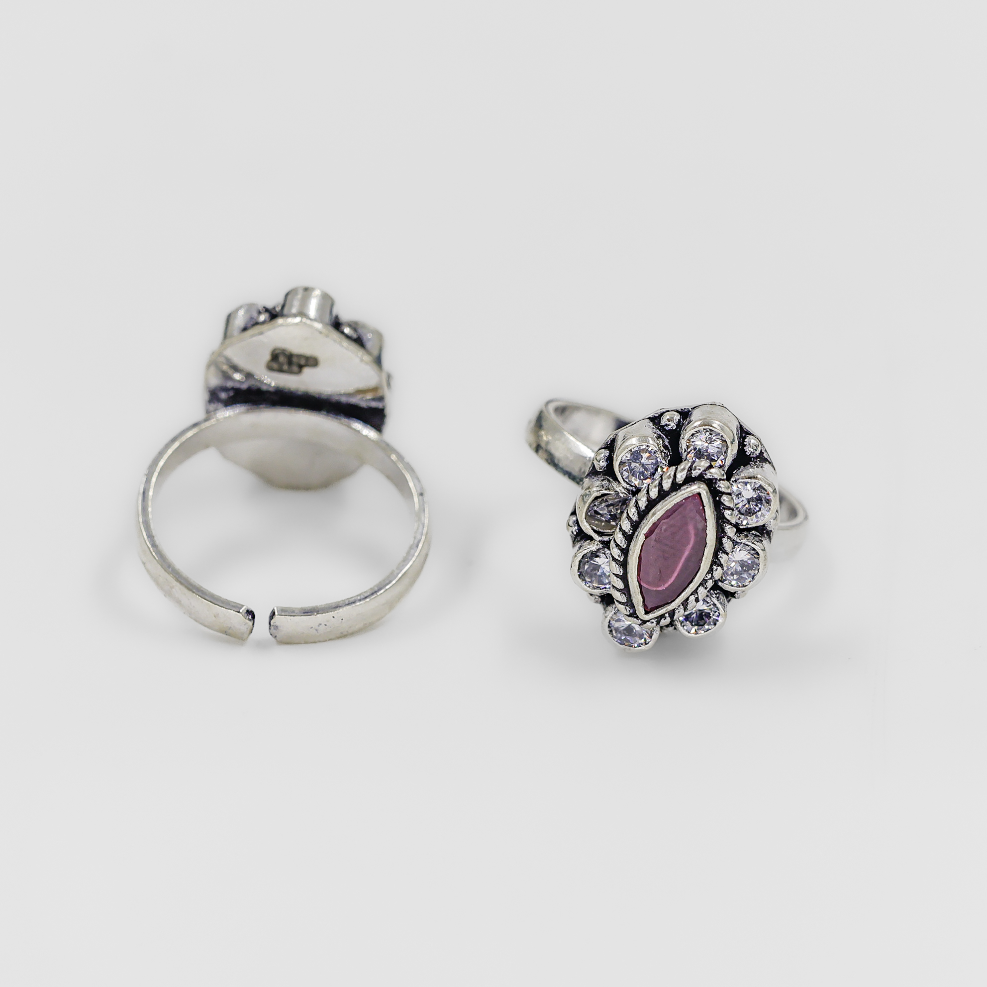 Elegant silver square ring with a ruby stone, perfect for everyday wear or special occasions. Buy silver square ring from Raag Silver Jewellery in Hyderabad.