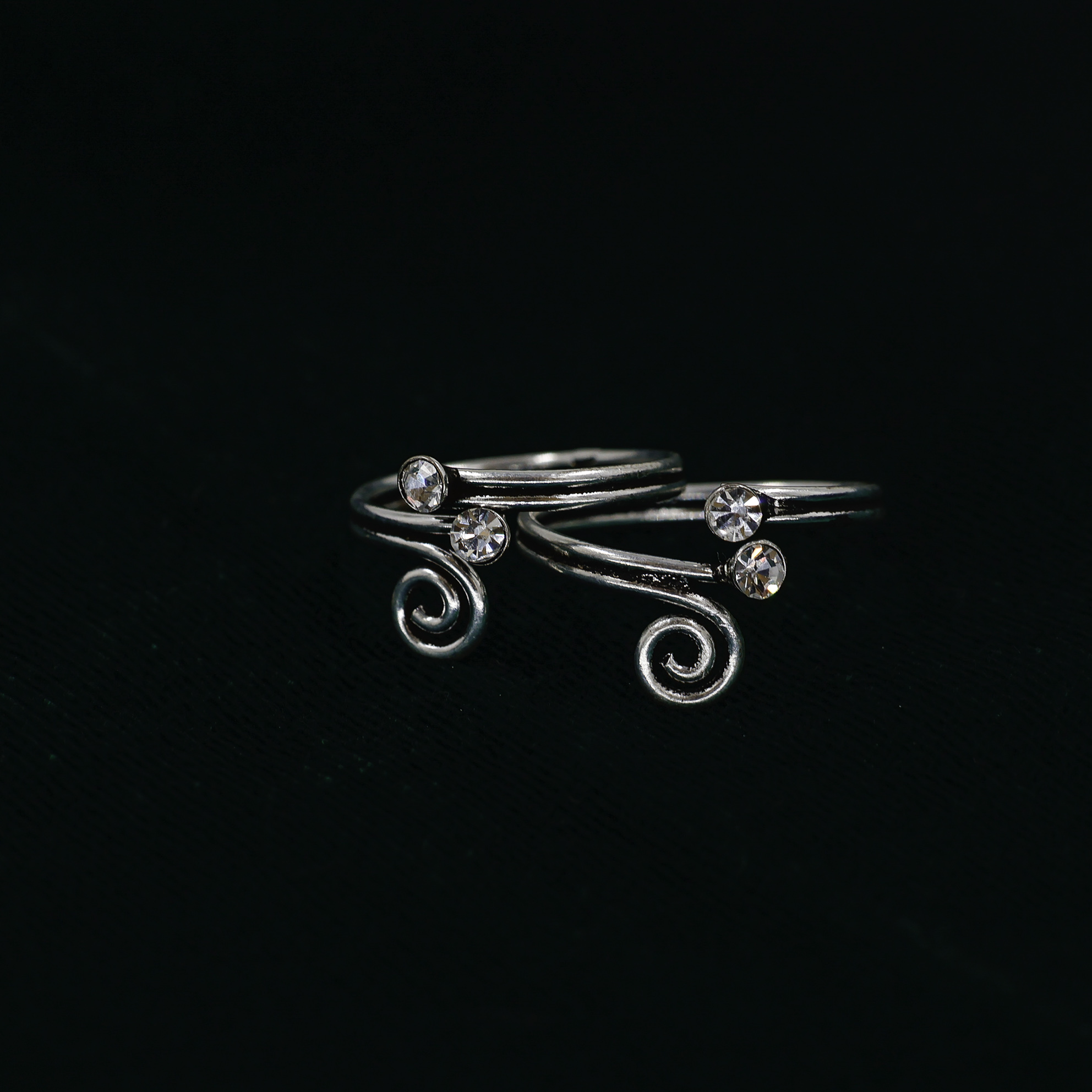 Oxidized silver toe ring with a unique design, perfect for everyday wear or special occasions. Buy silver toe ring from Raag Silver Jewellery in Hyderabad.