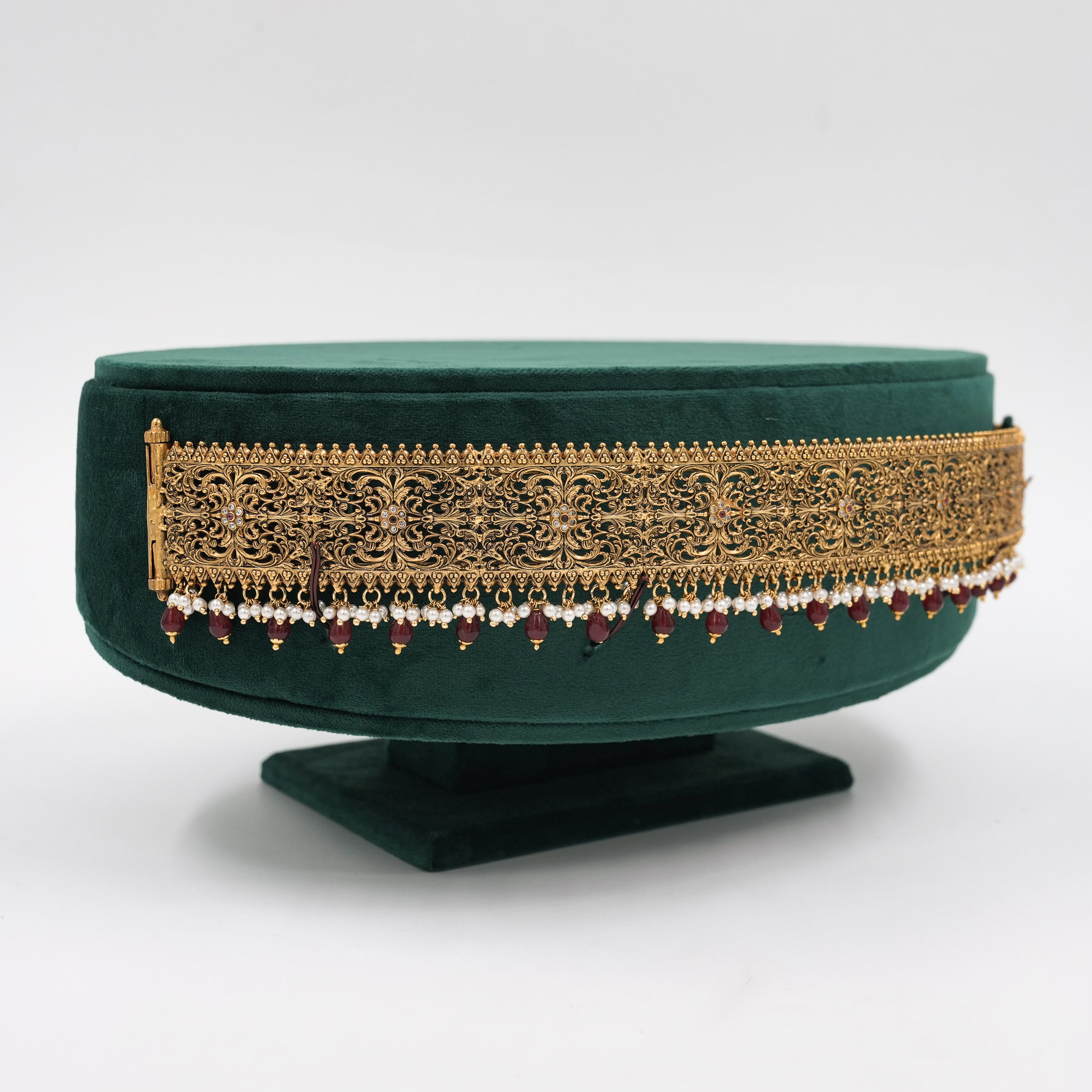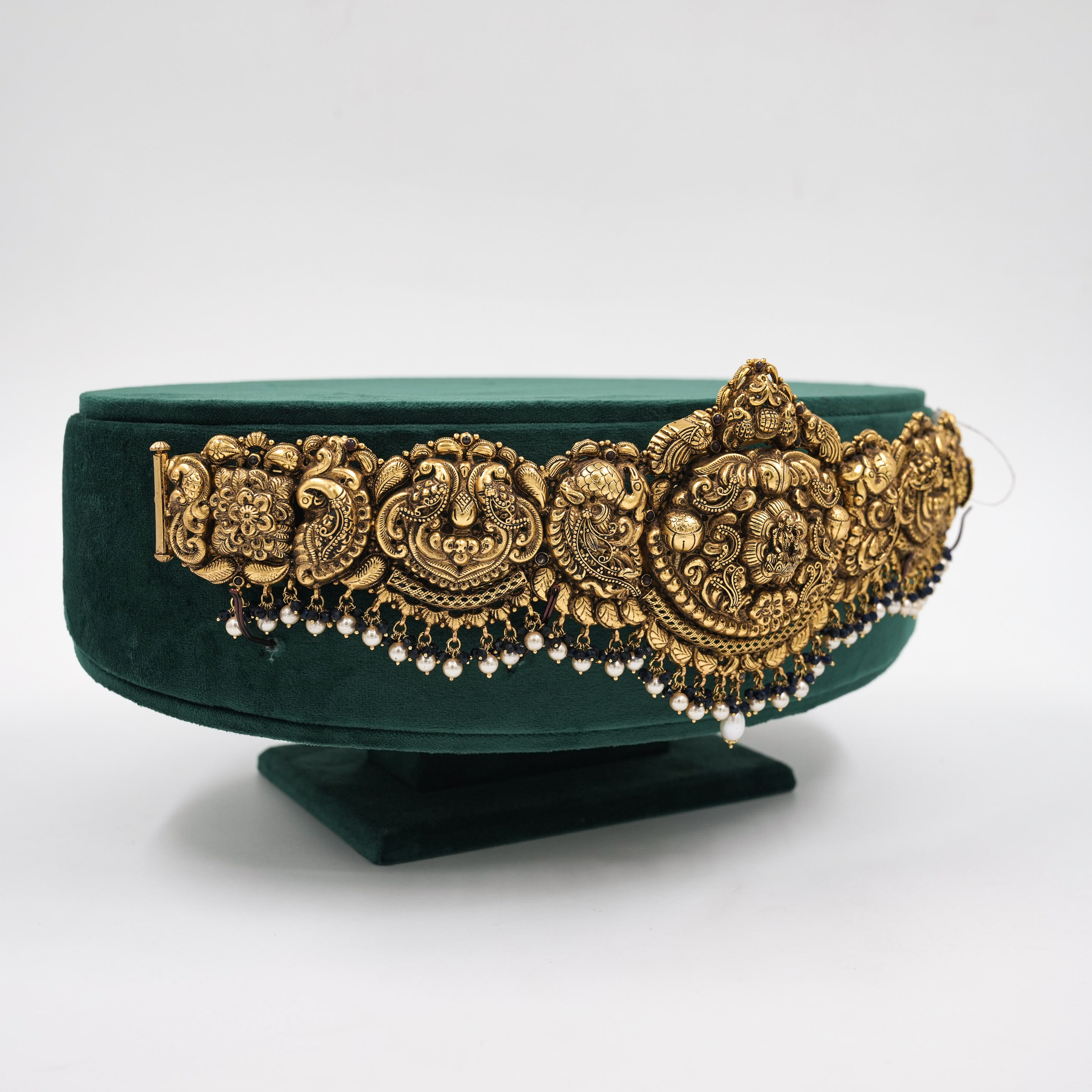 Intricate gold plated belt with traditional design, perfect for weddings and festive occasions. Buy gold plated belt from Raag Silver Jewellery in Hyderabad.