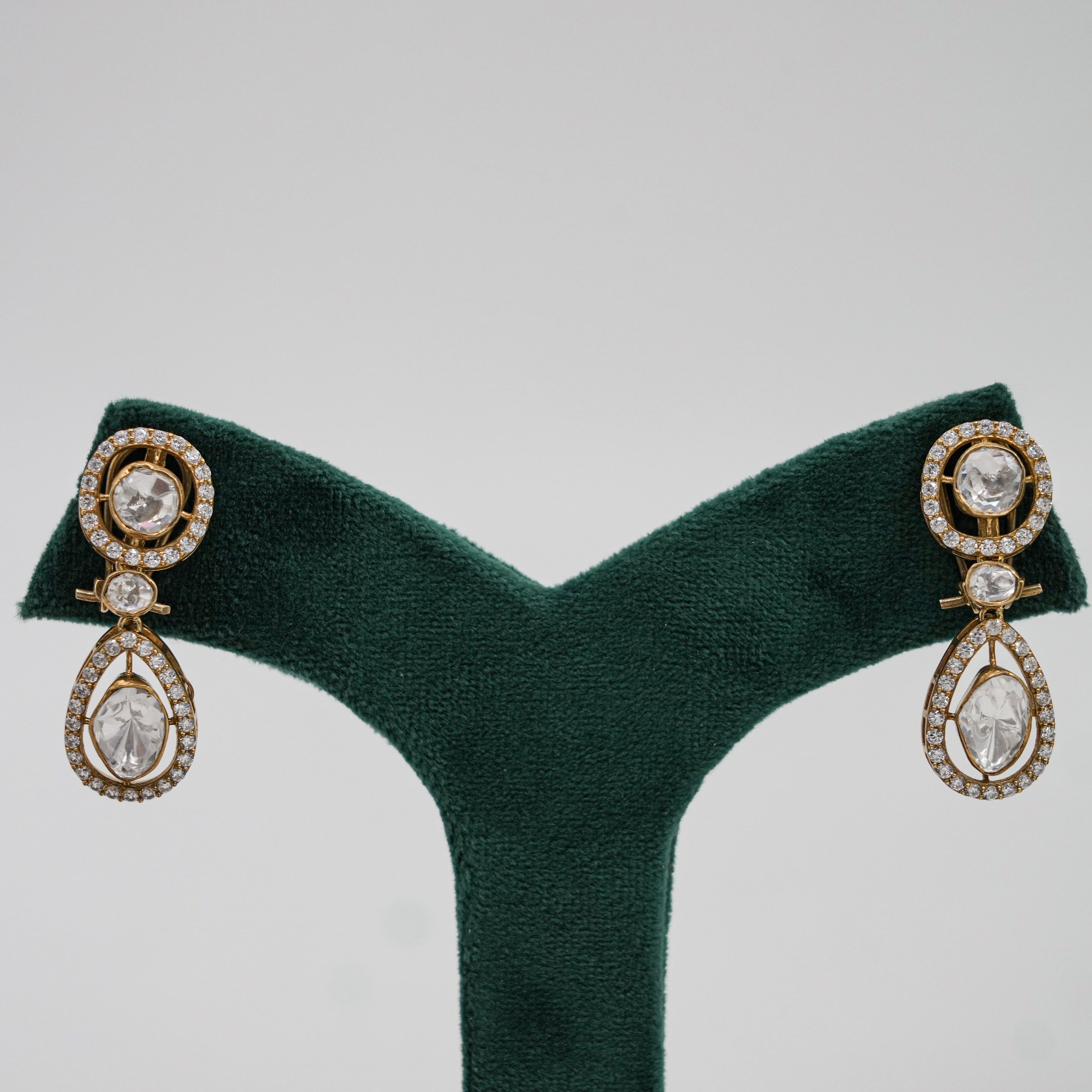 Elegant stone Necklace set with zircon detailing, suitable for weddings and festive occasions. Buy Stone Necklace Set from Raag Silver Jewellery in Hyderabad.