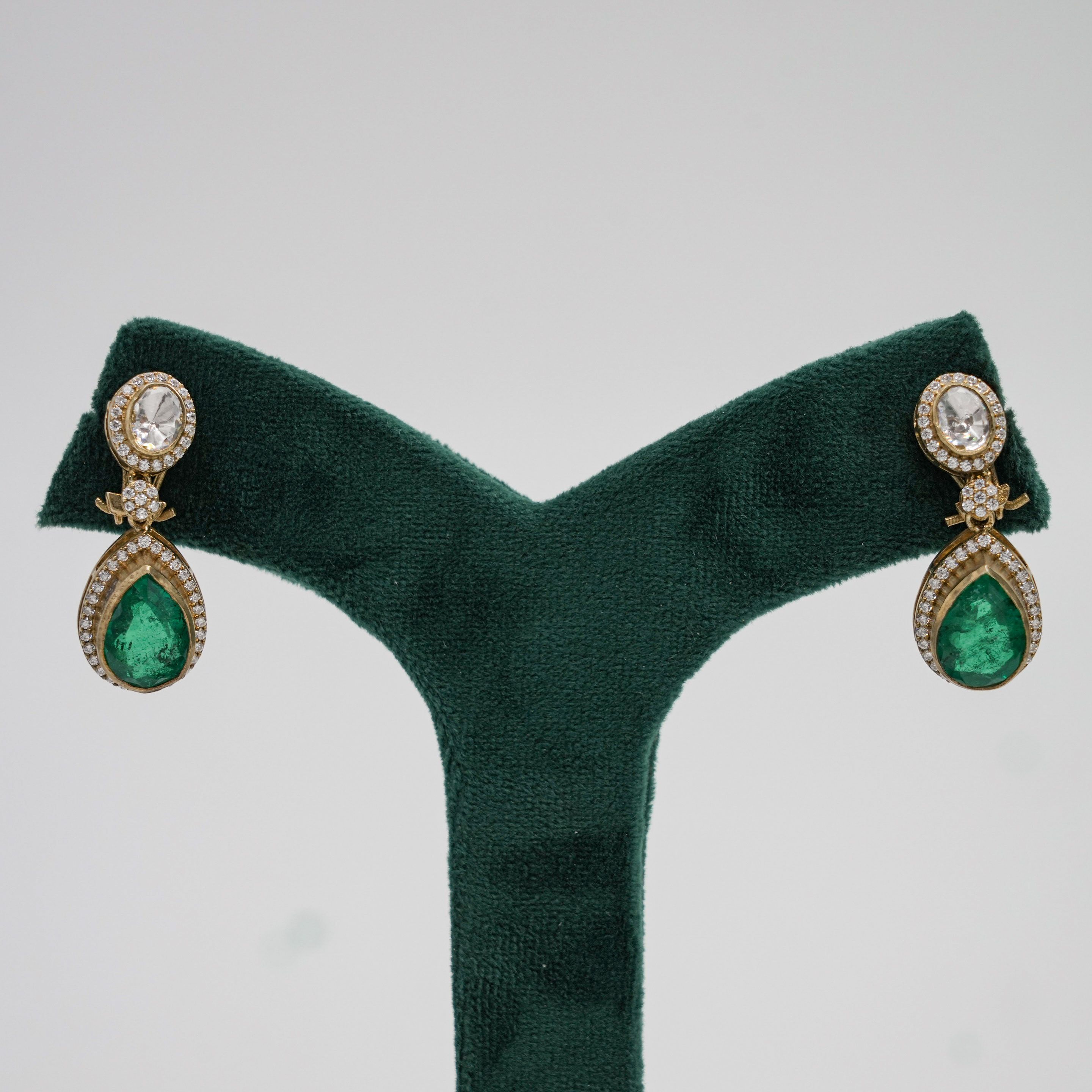 Elegant emerald Necklace set with zircon stones, ideal for weddings and special occasions. Buy emerald Necklace set from Raag Silver Jewellery in Hyderabad.