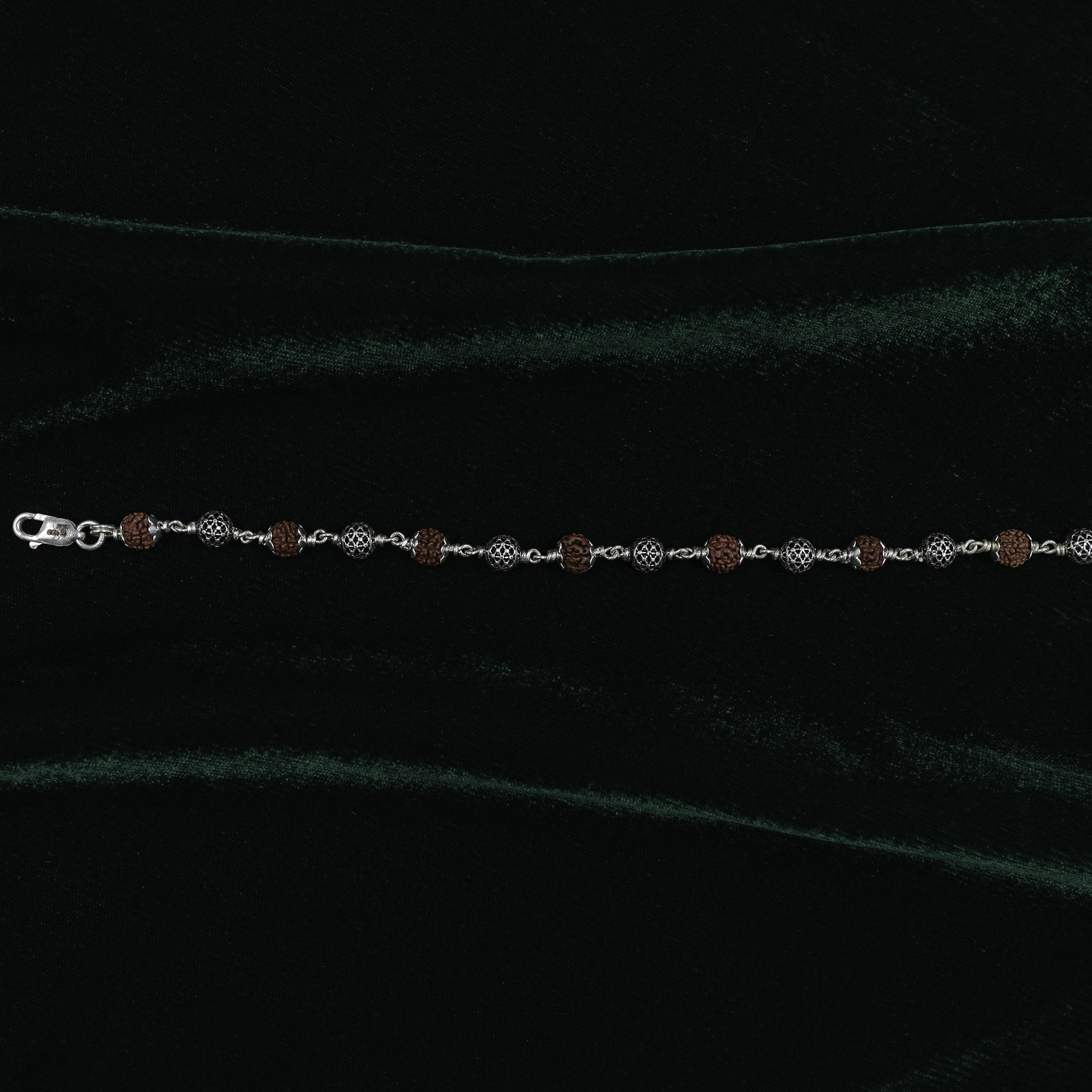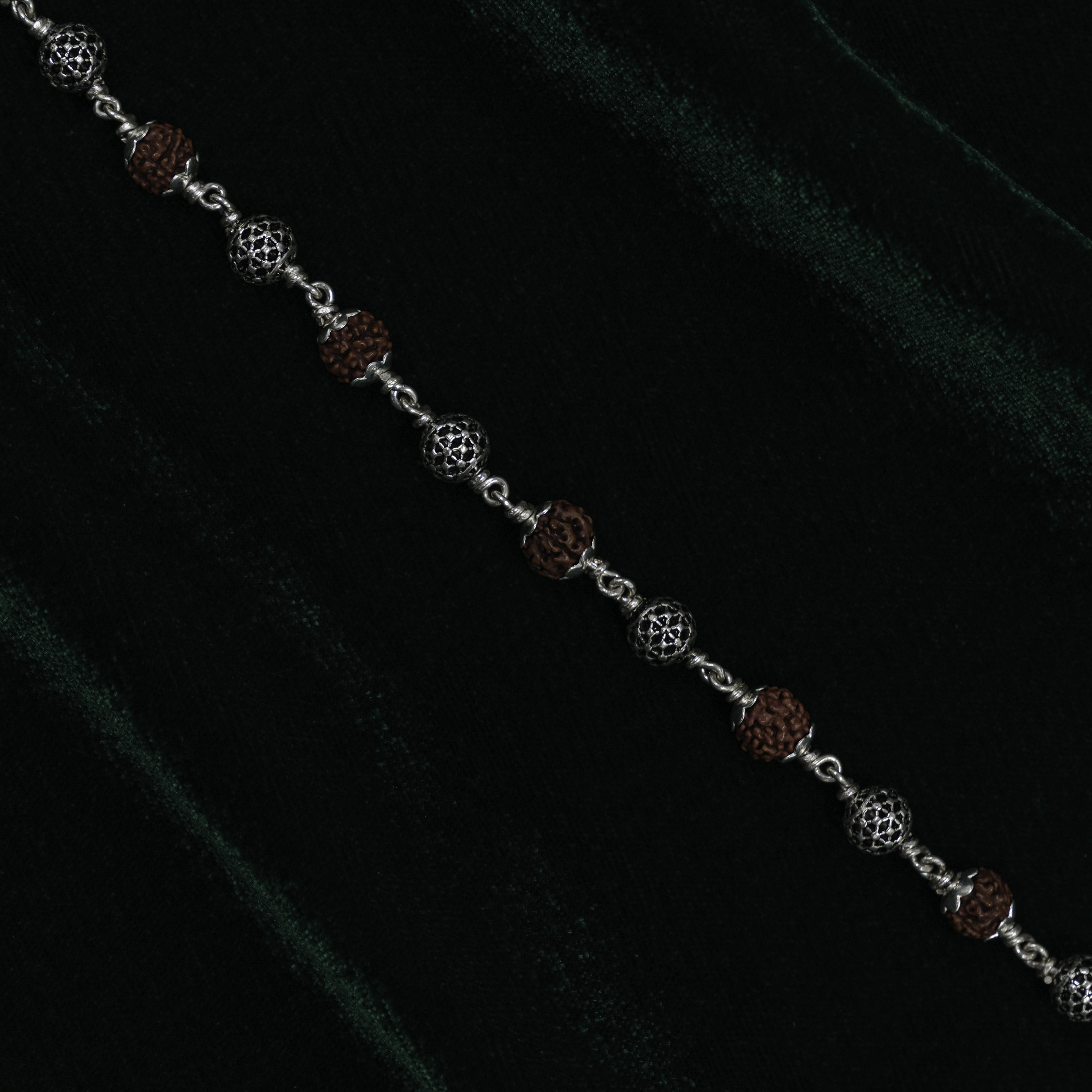 925 Sterling Silver Rudraksha Brown Beads Silver Bracelet Unique Design
