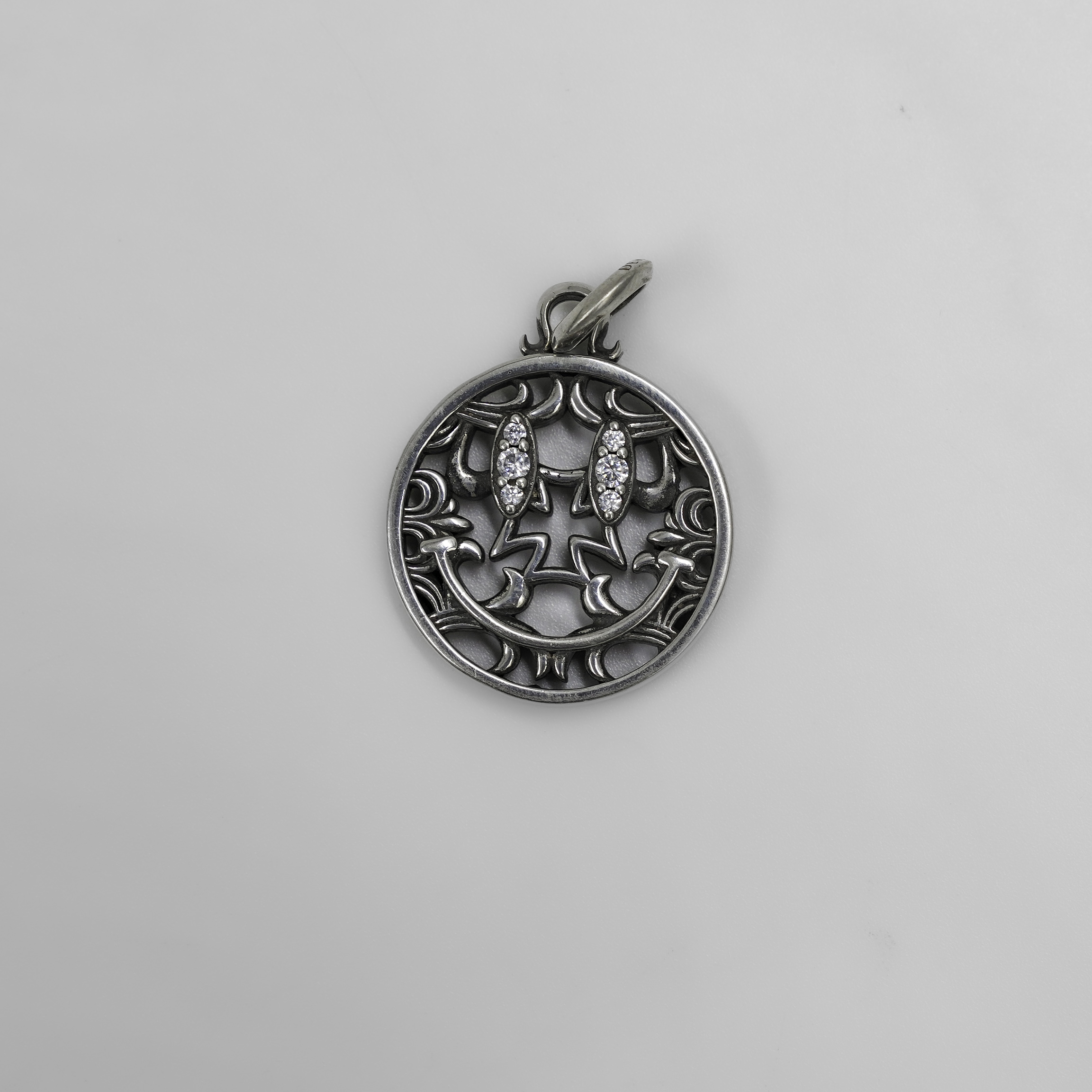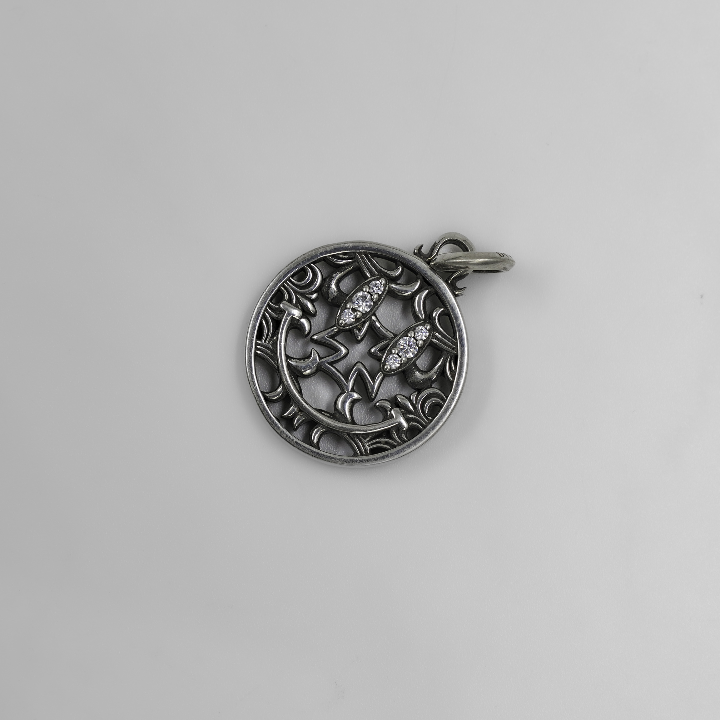 Chrome Hearts Sterling Silver Smiley Face Pendant With Diamonds