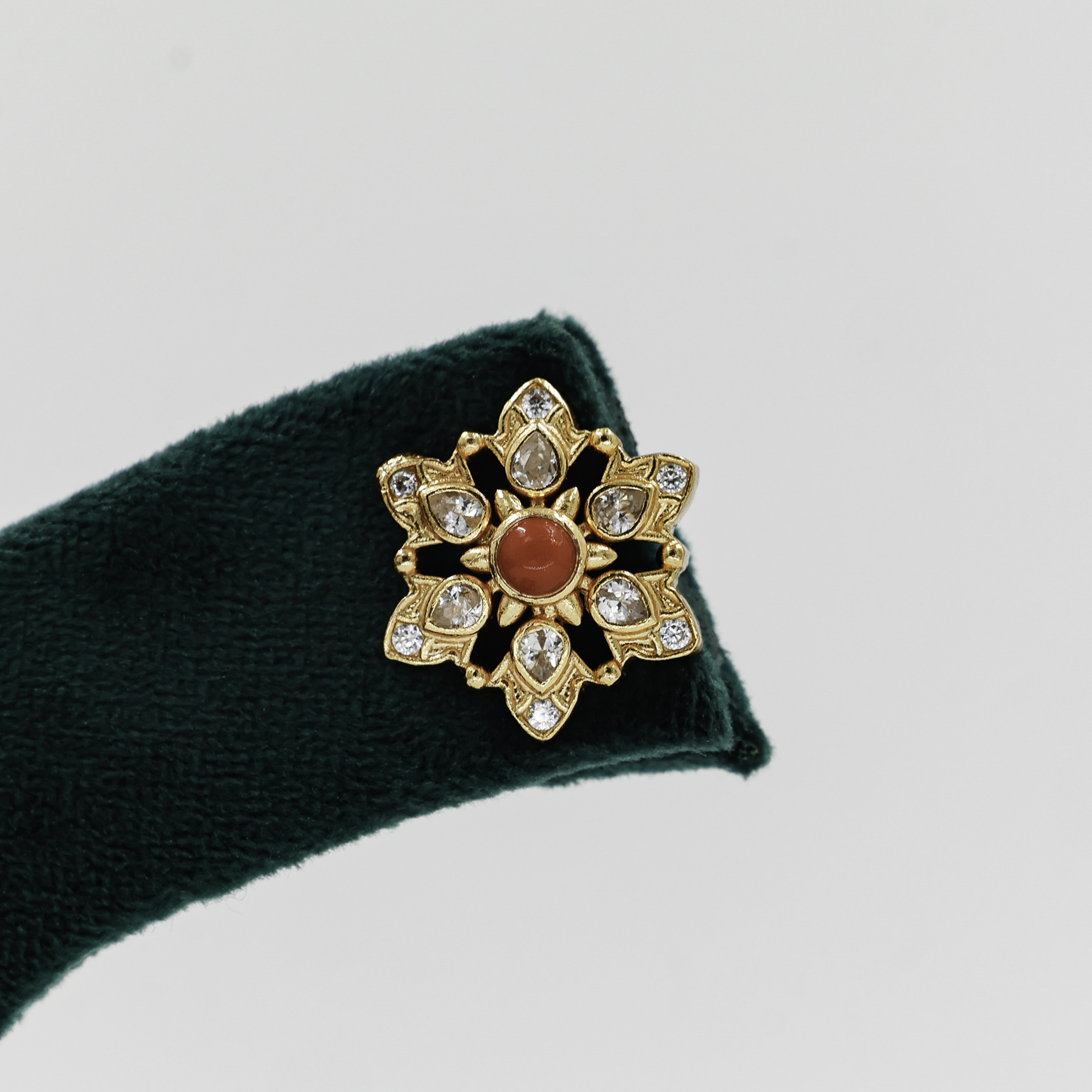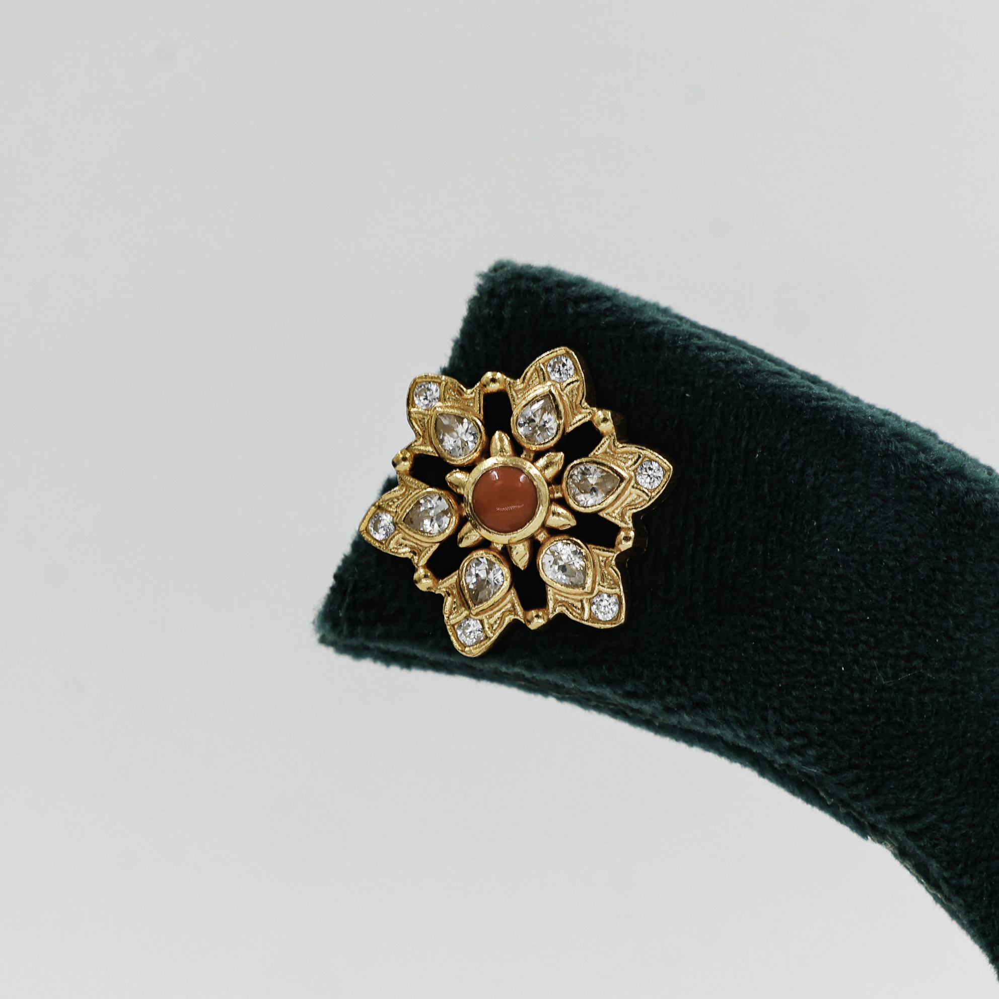 Floral coral silver earrings with intricate detailing, perfect for festive occasions. Buy Coral Silver Earrings from Raag Silver Jewellery in Hyderabad.