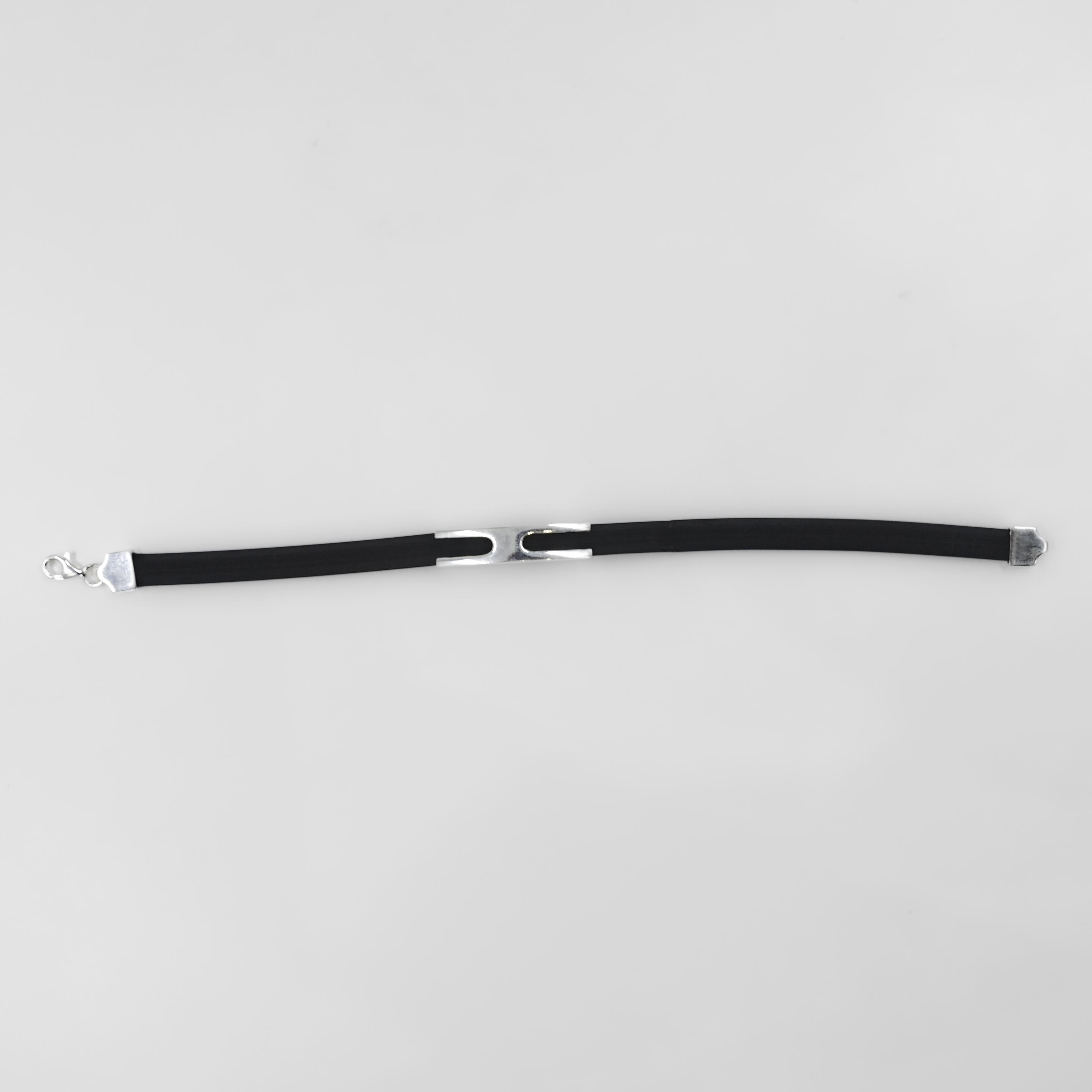 Elegant Silver and Black Rubber Bracelet with Metal Detail