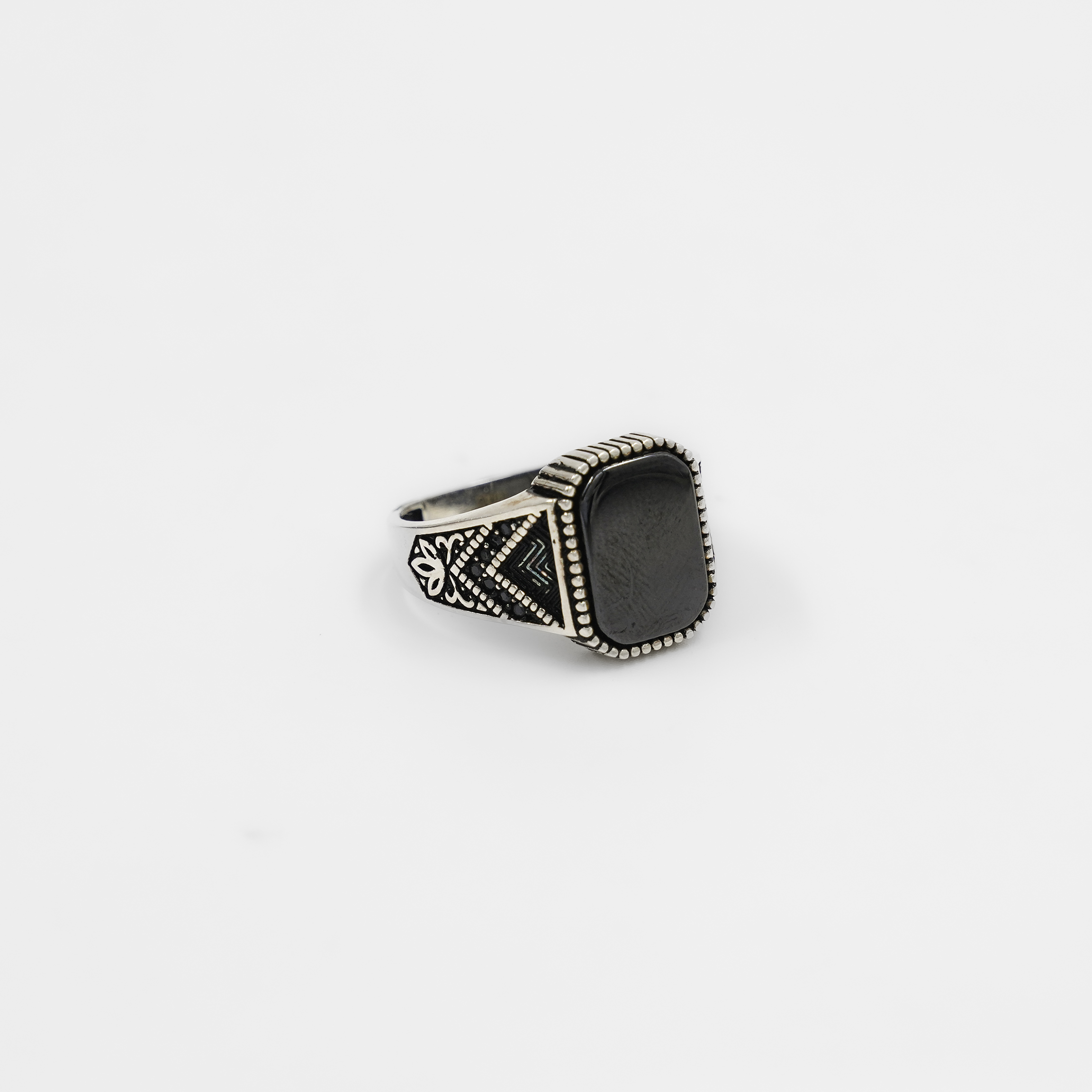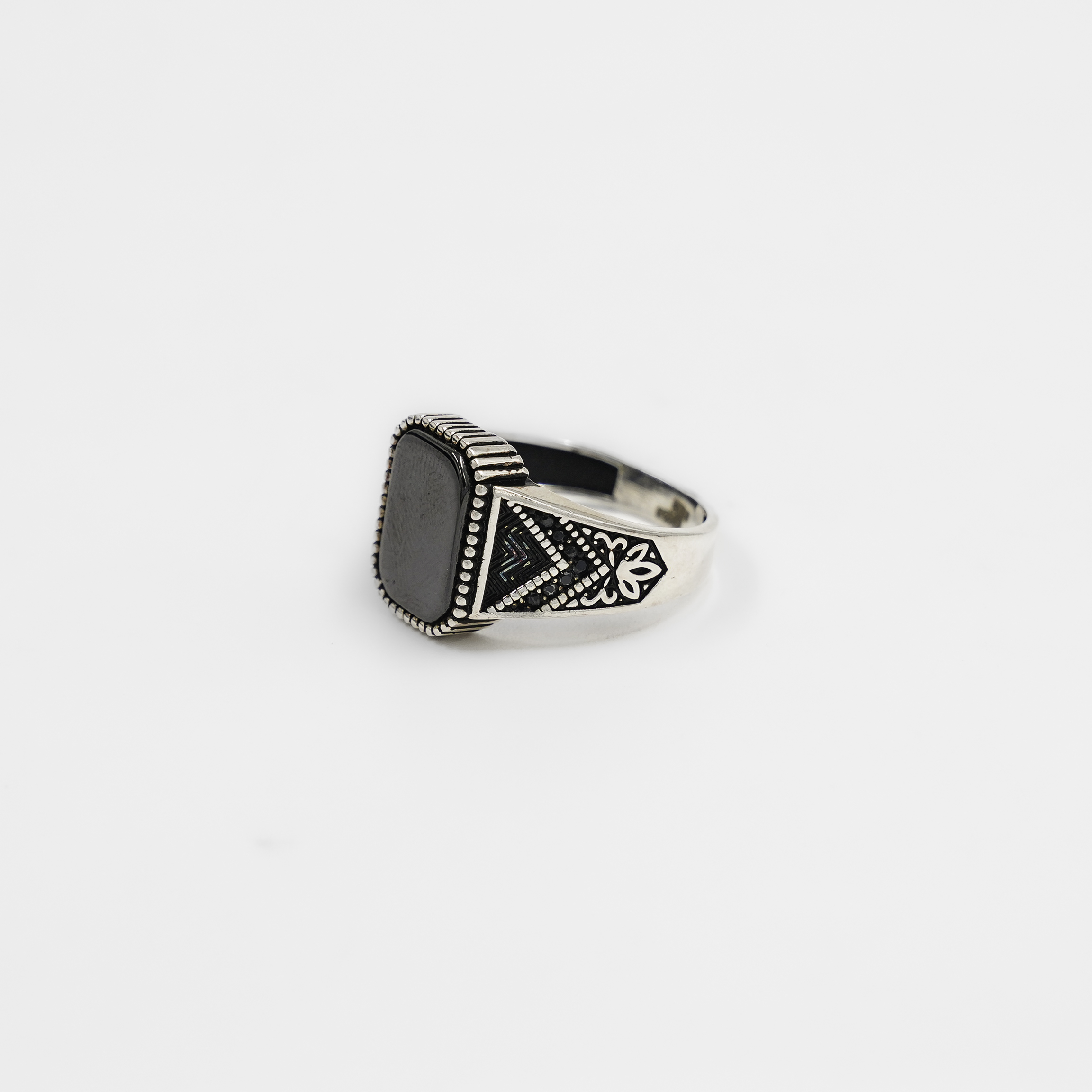 Elegant Silver Black Onyx Gemstone Statement Ring Patterned Band