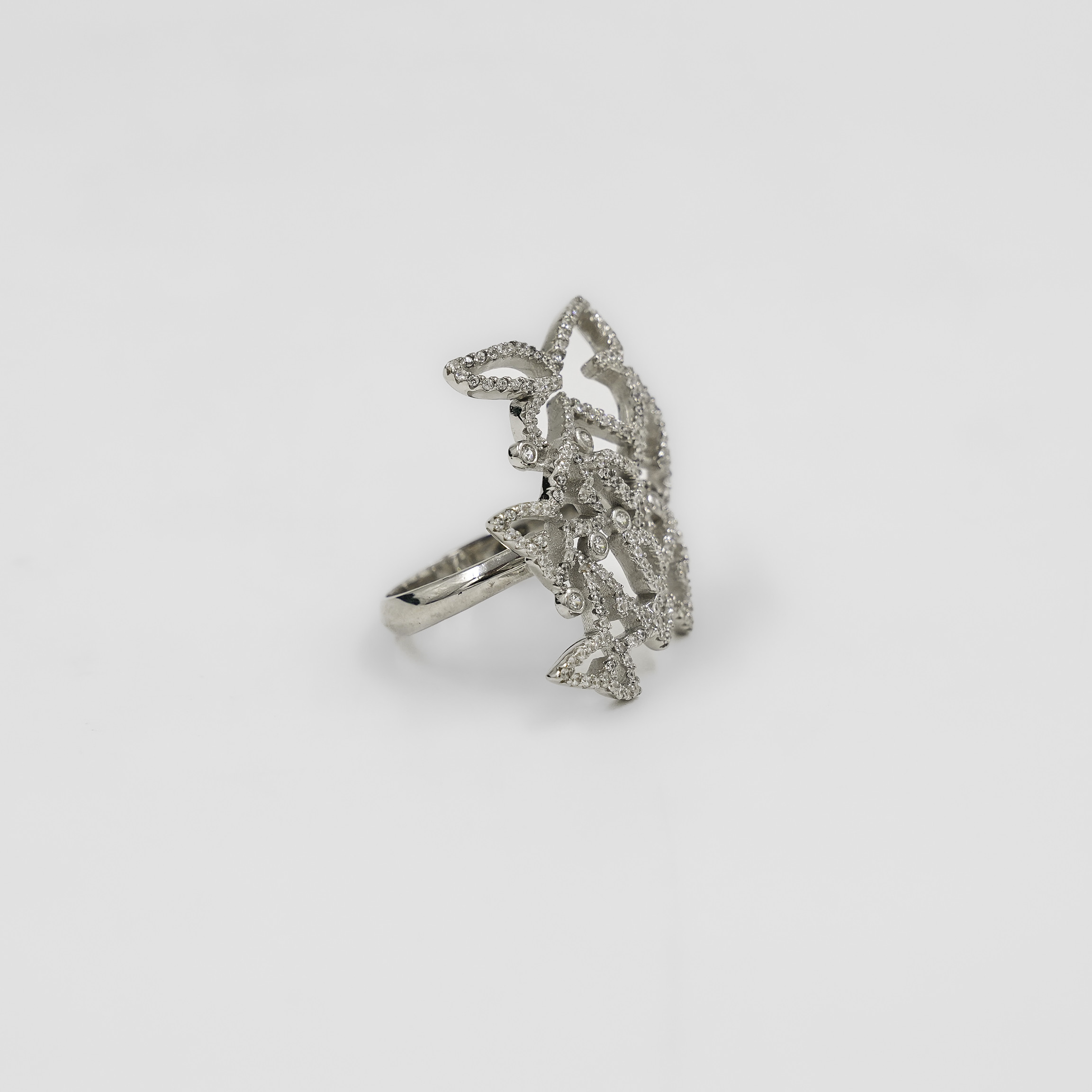 Elegant Silver Butterfly Design Ring Embellished With Crystals