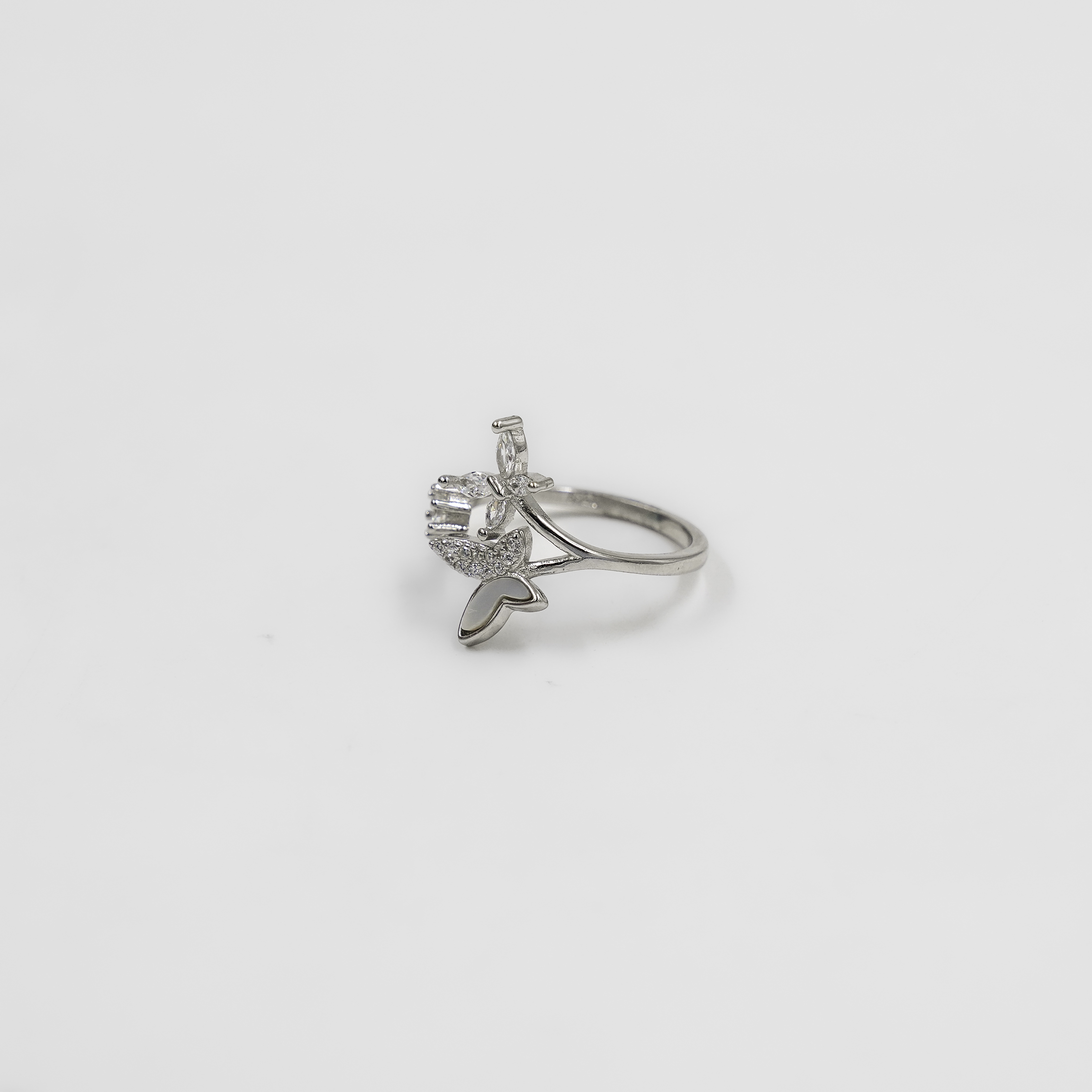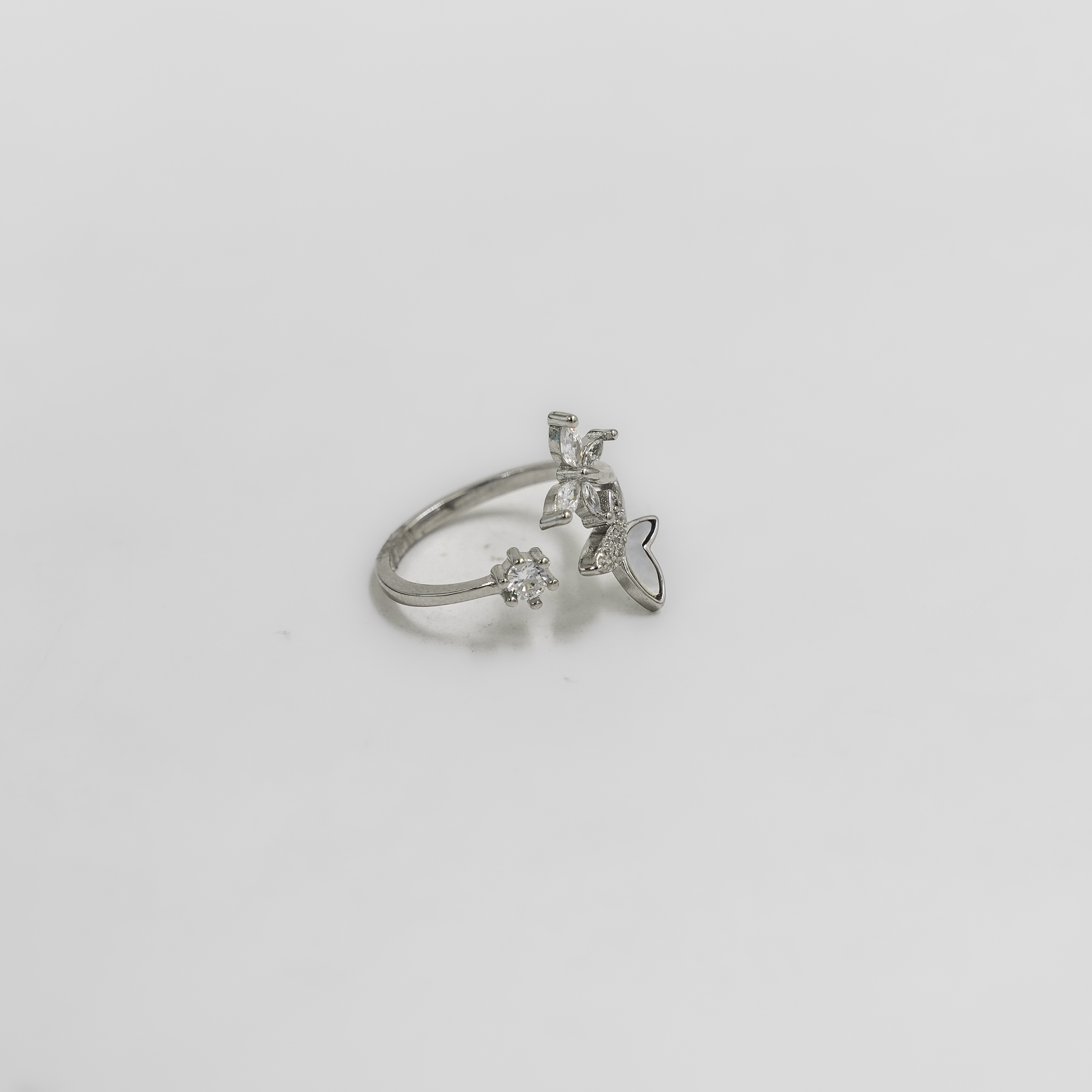 Elegant Silver Butterfly Design Ring Embellished With White Crystals