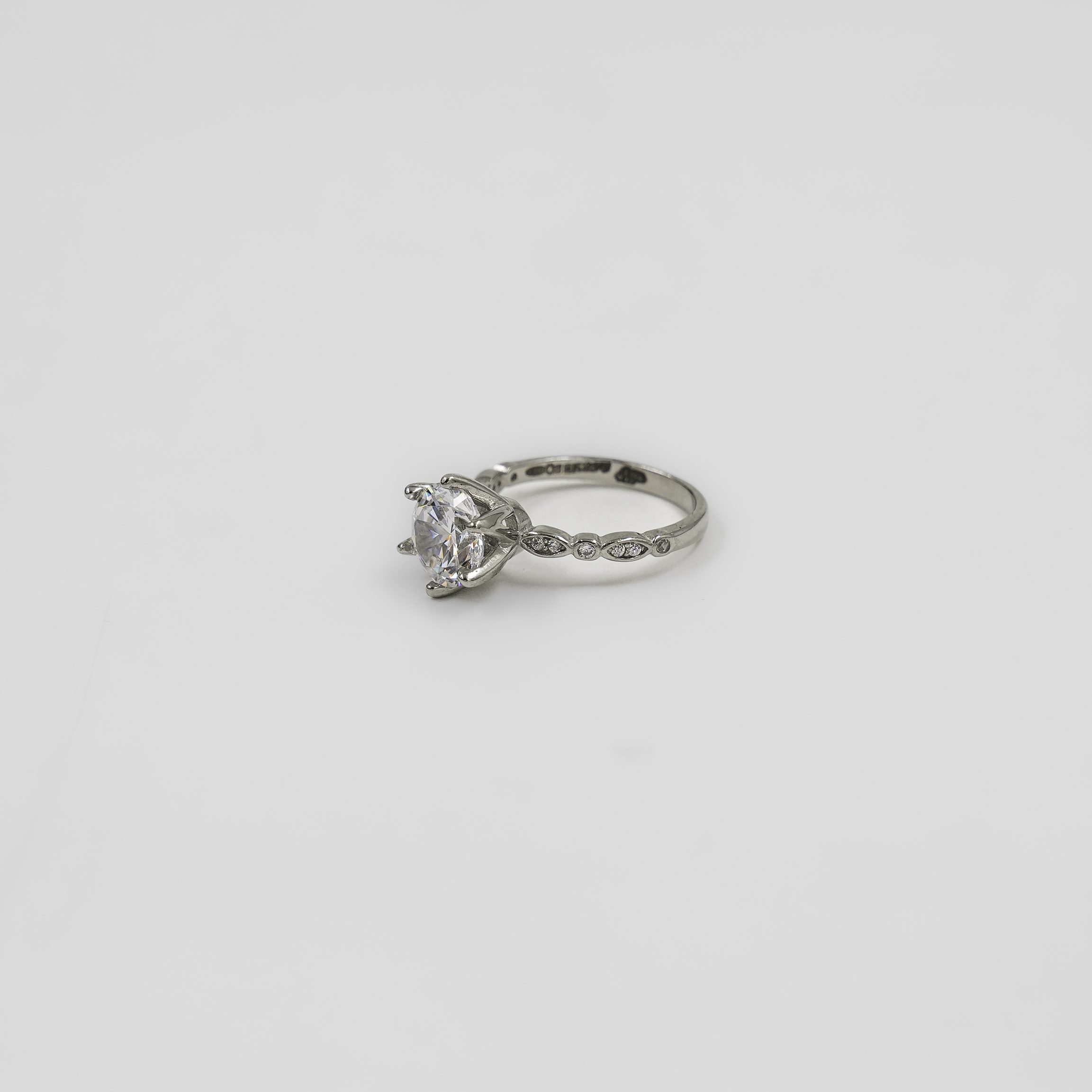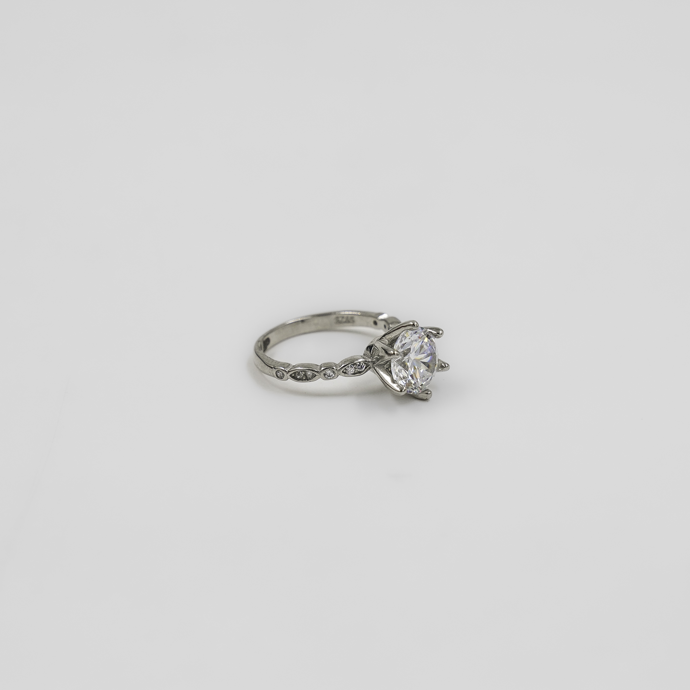Elegant Silver Cubic Zirconia Floral Patterned Womens Ring