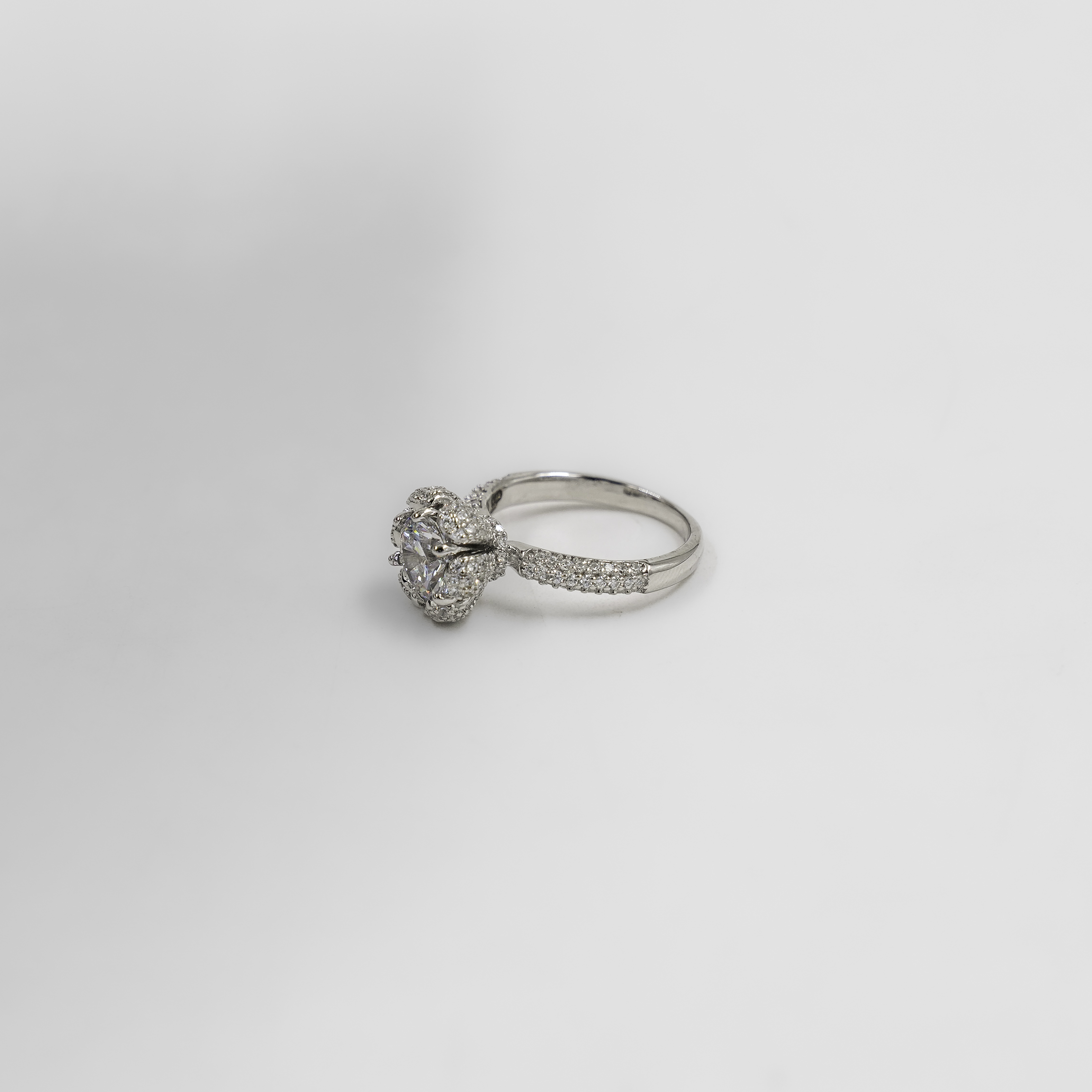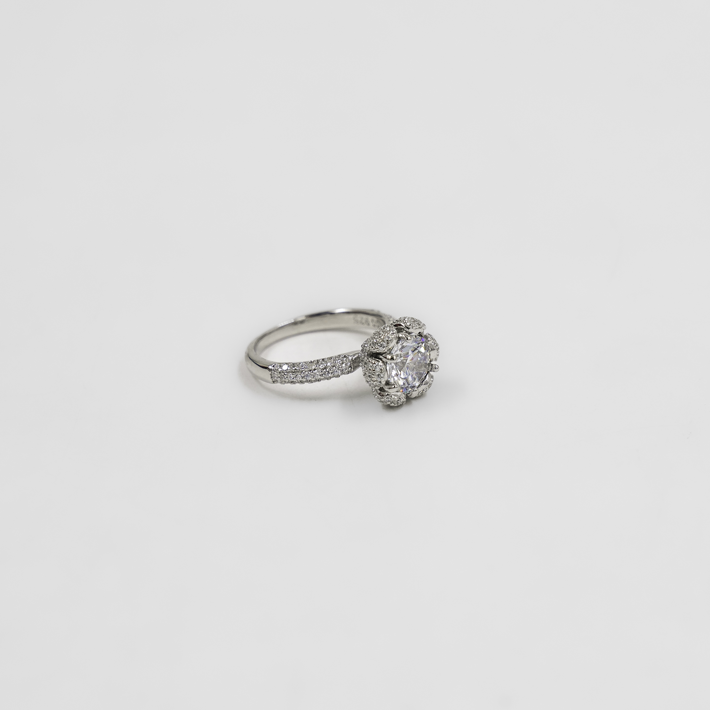 Elegant Silver Cubic Zirconia Floral Design Statement Ring