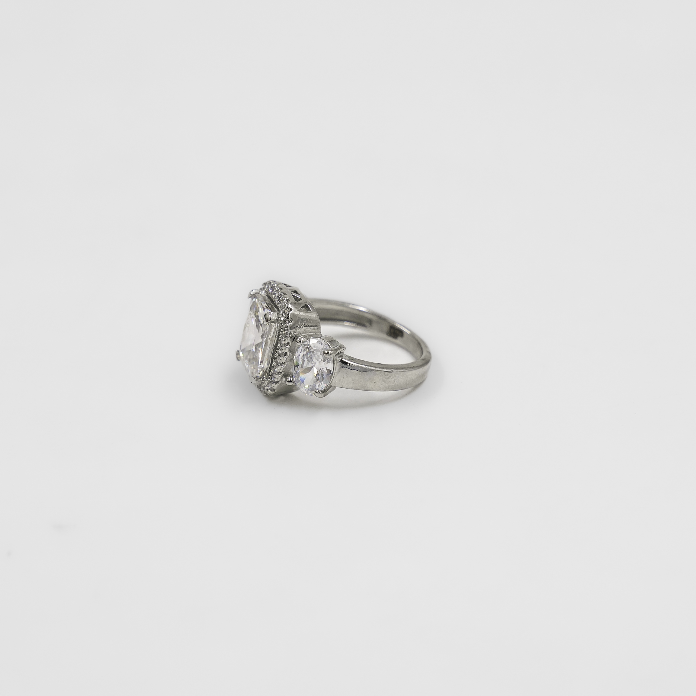 Elegant Silver Cubic Zirconia Statement Ring Classic Design