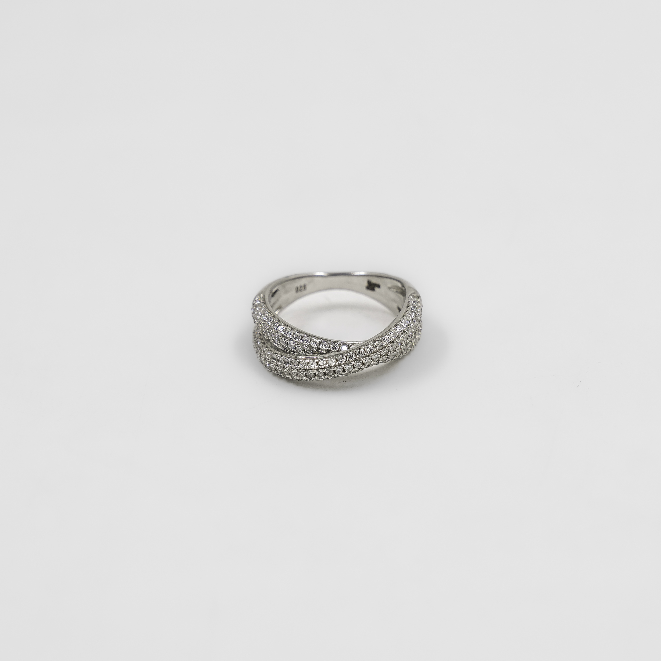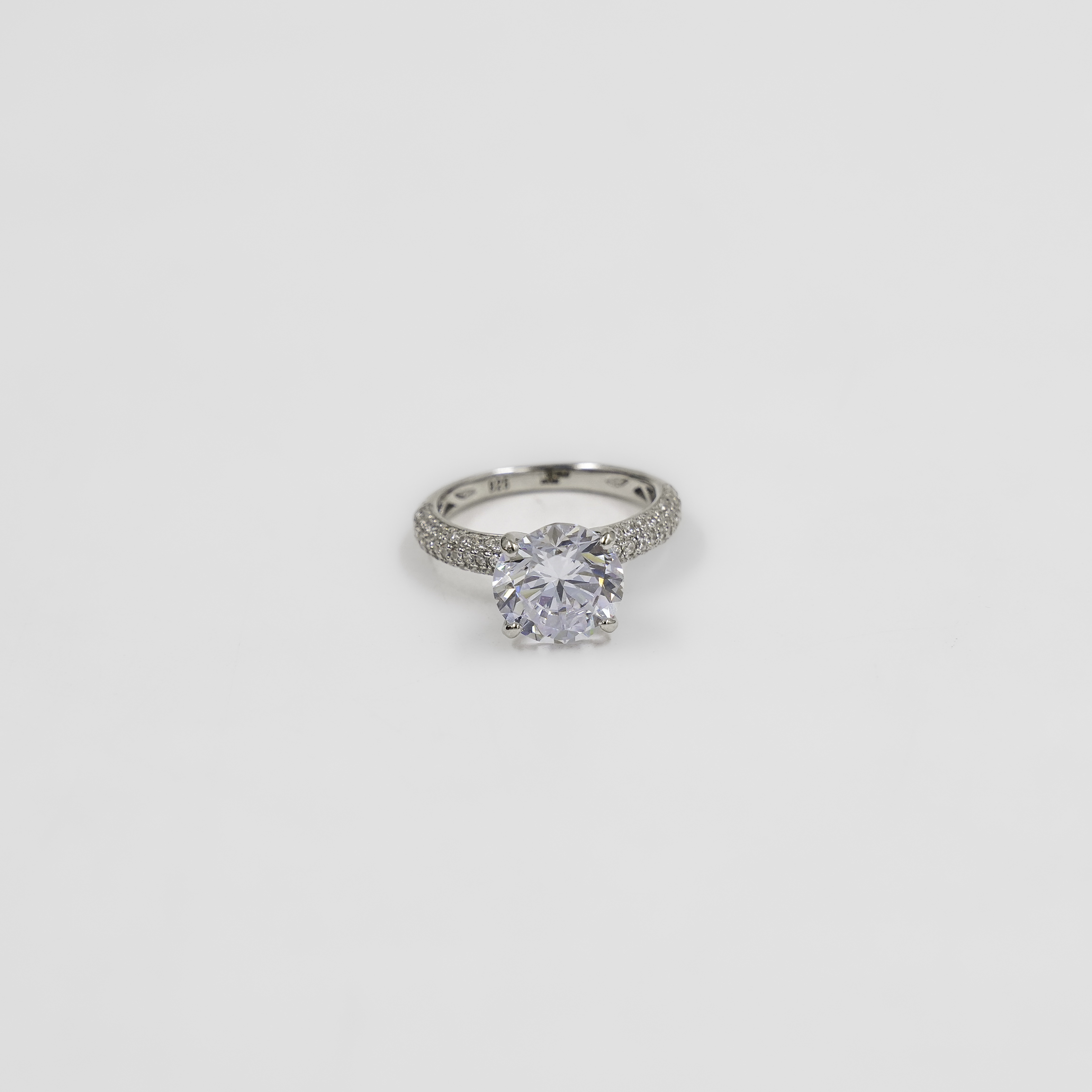 Elegant Silver Cubic Zirconia Stone Ring With Pave Band