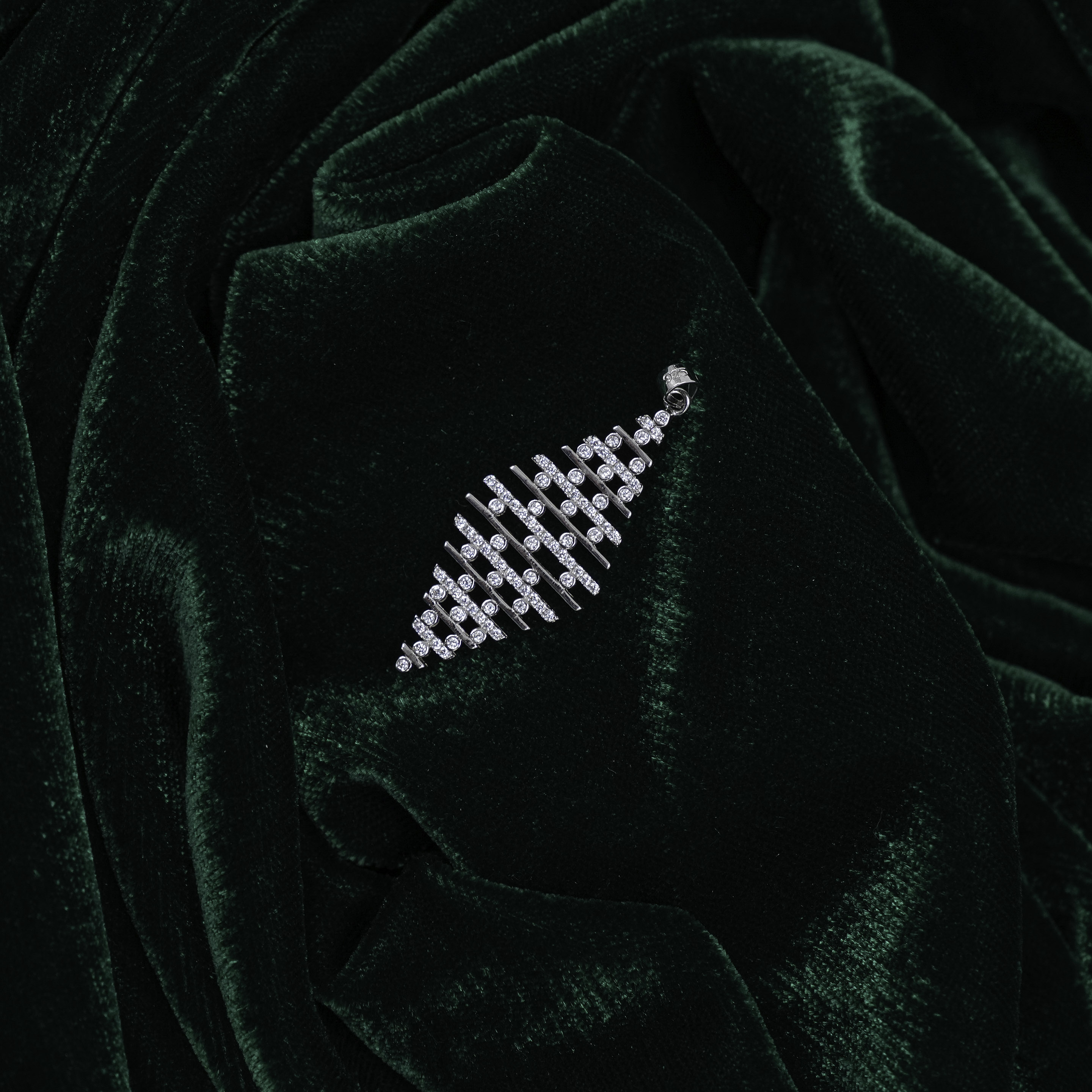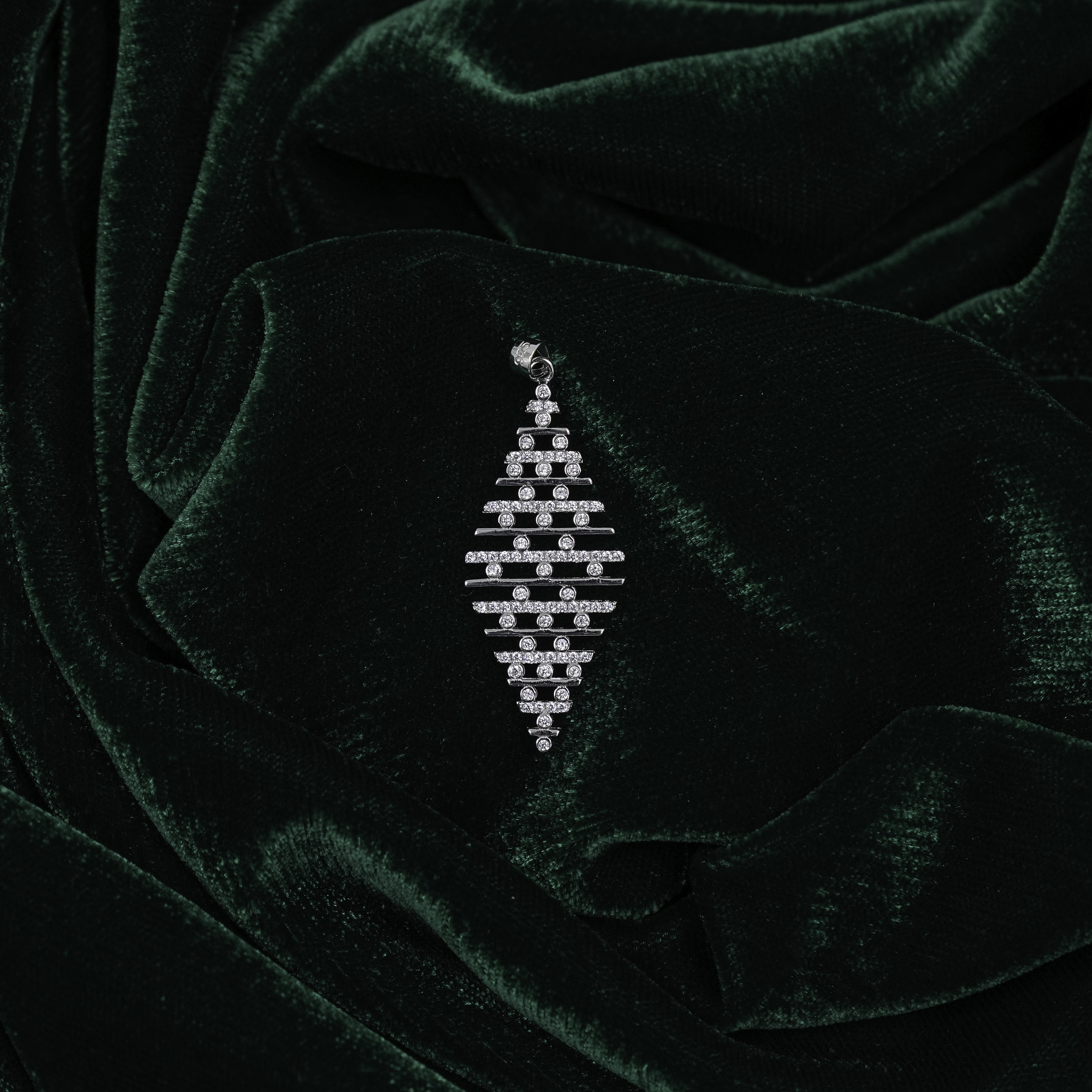 Elegant Silver Diamond Embellished Geometric Drop Pendant Necklace