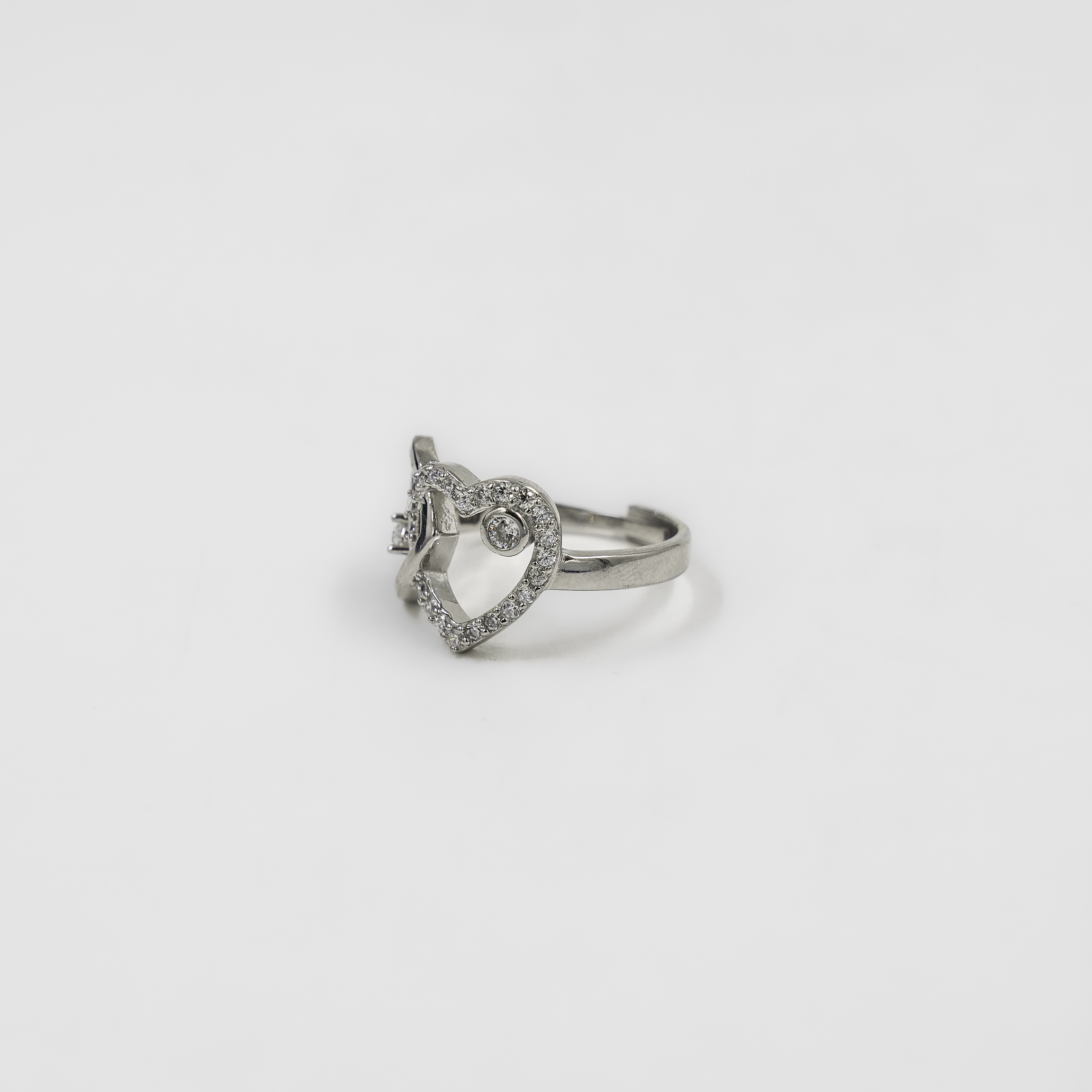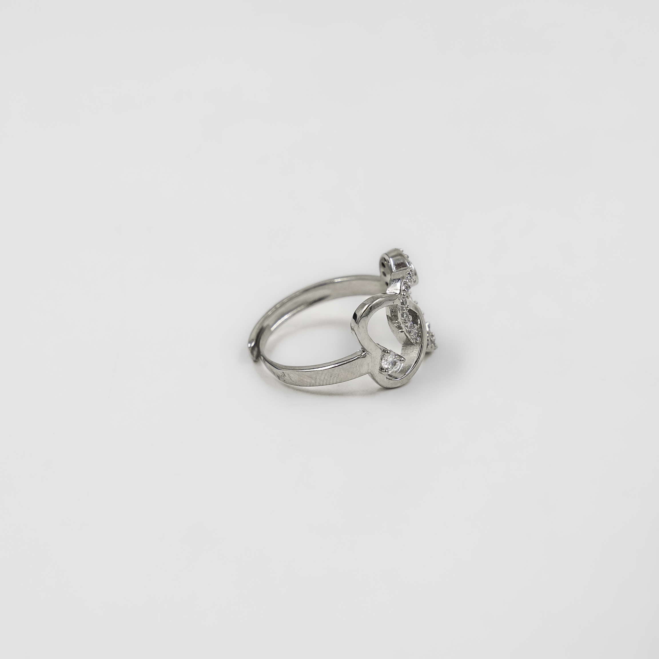 Elegant Silver Double Heart Design Embellished Womens Ring Jewellery