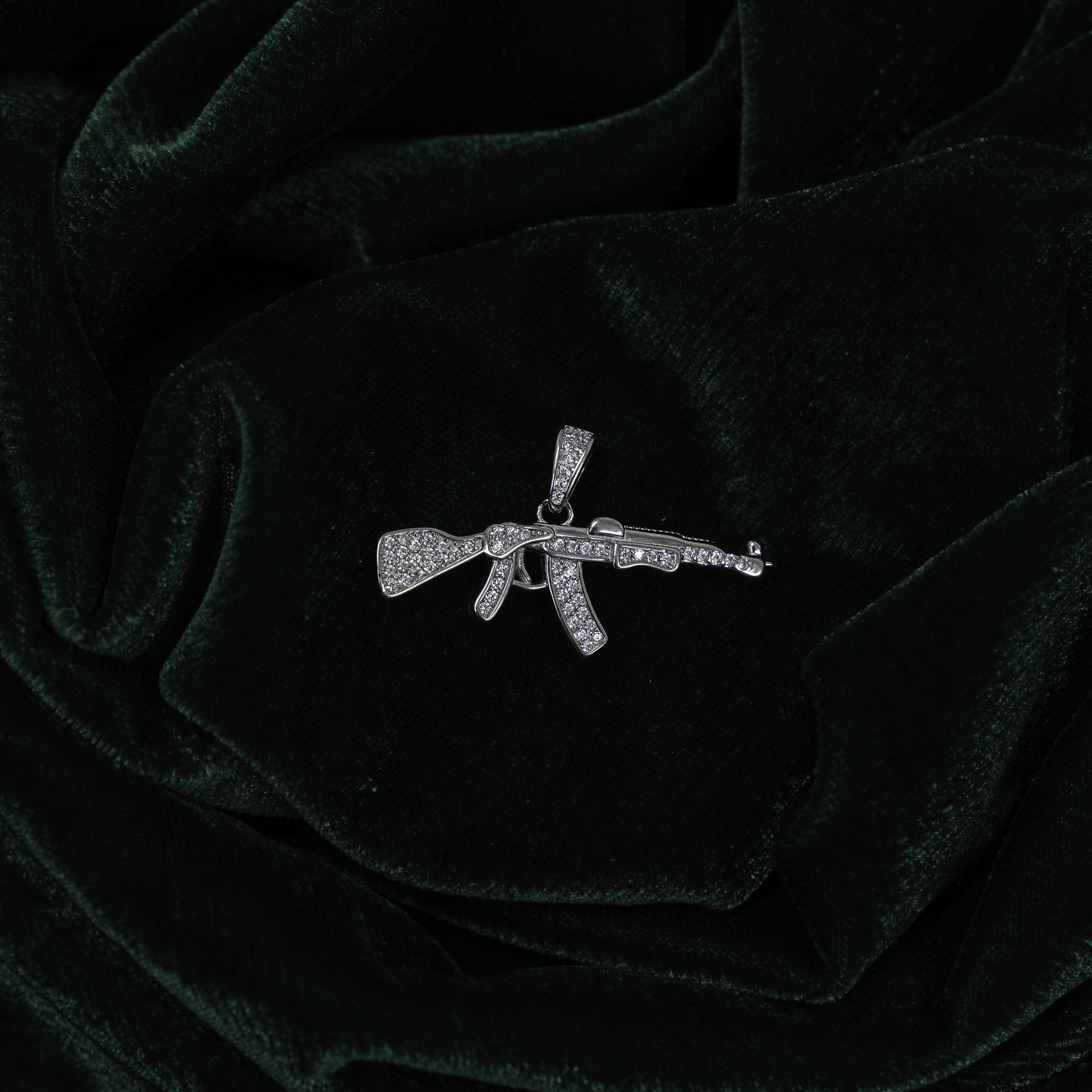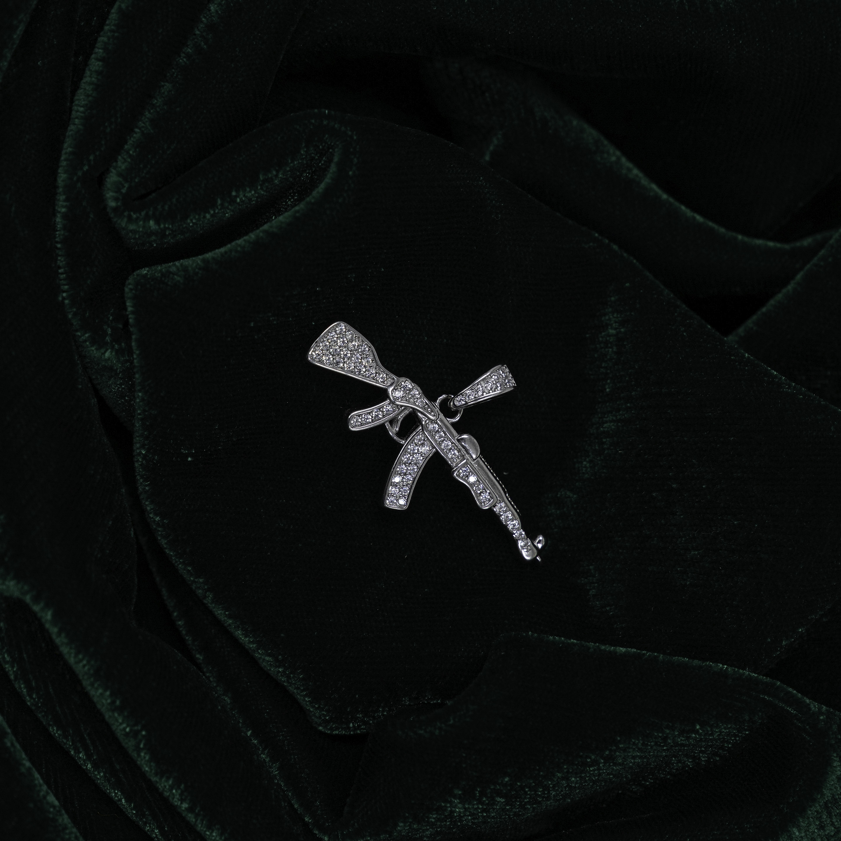 Elegant Silver Embellished Gun Design Pendant Necklace Jewellery
