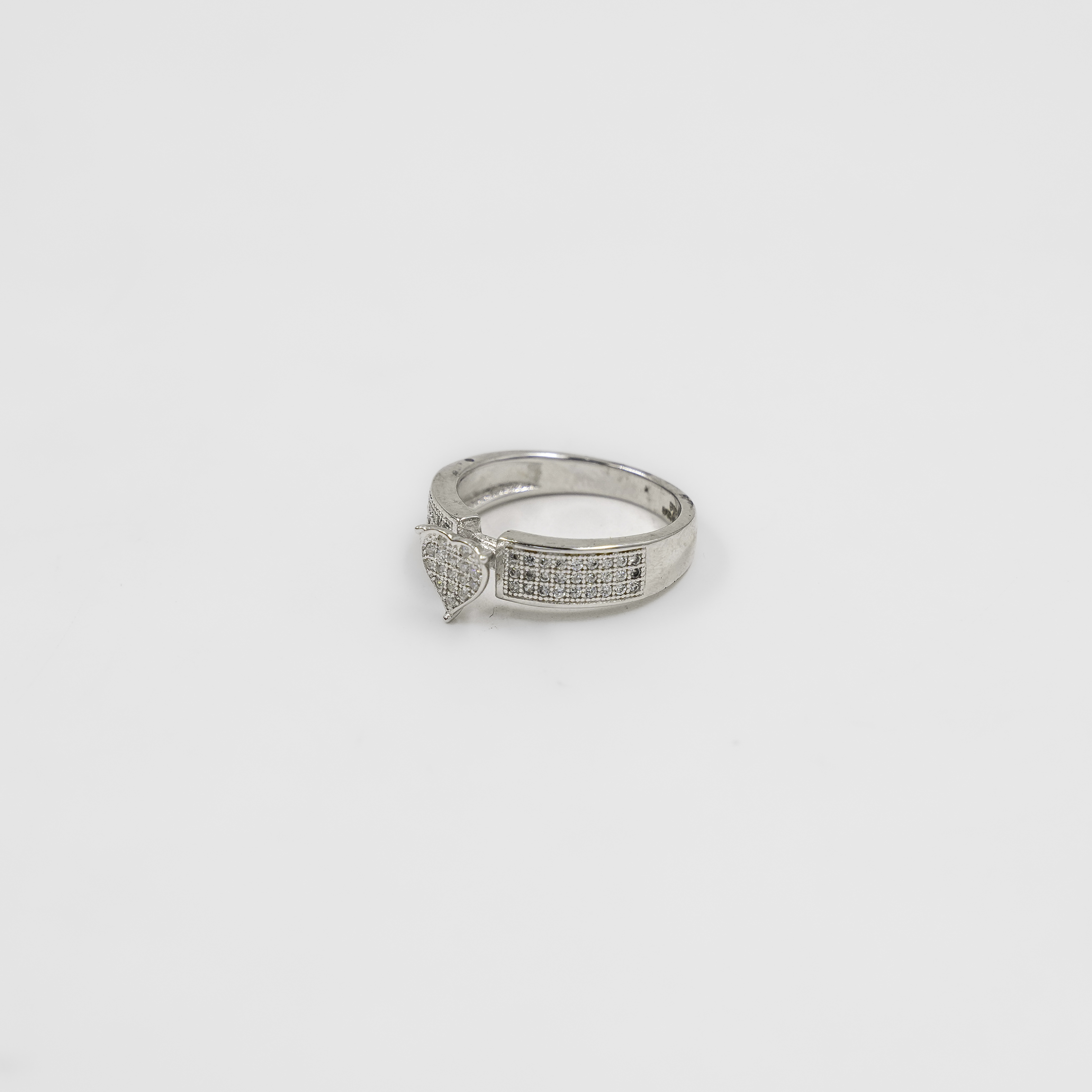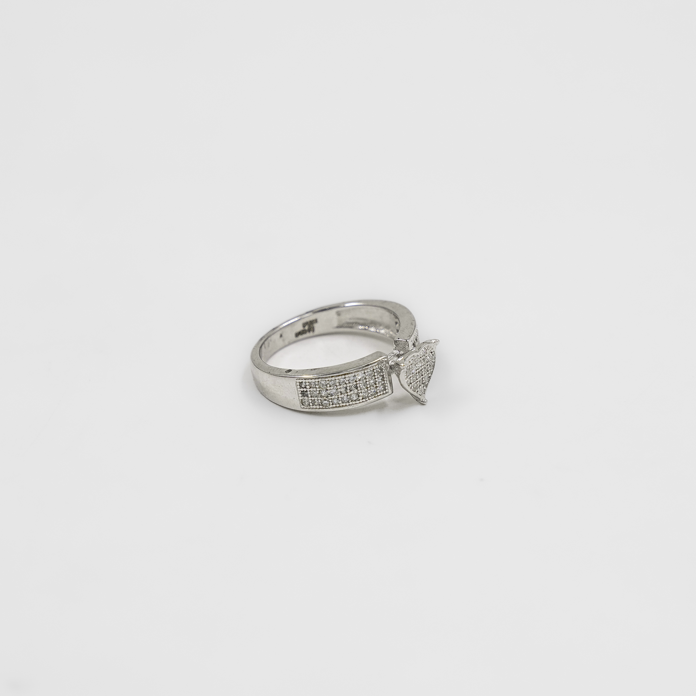 Elegant Silver Heart Detailing Ring with Pave Set Stones