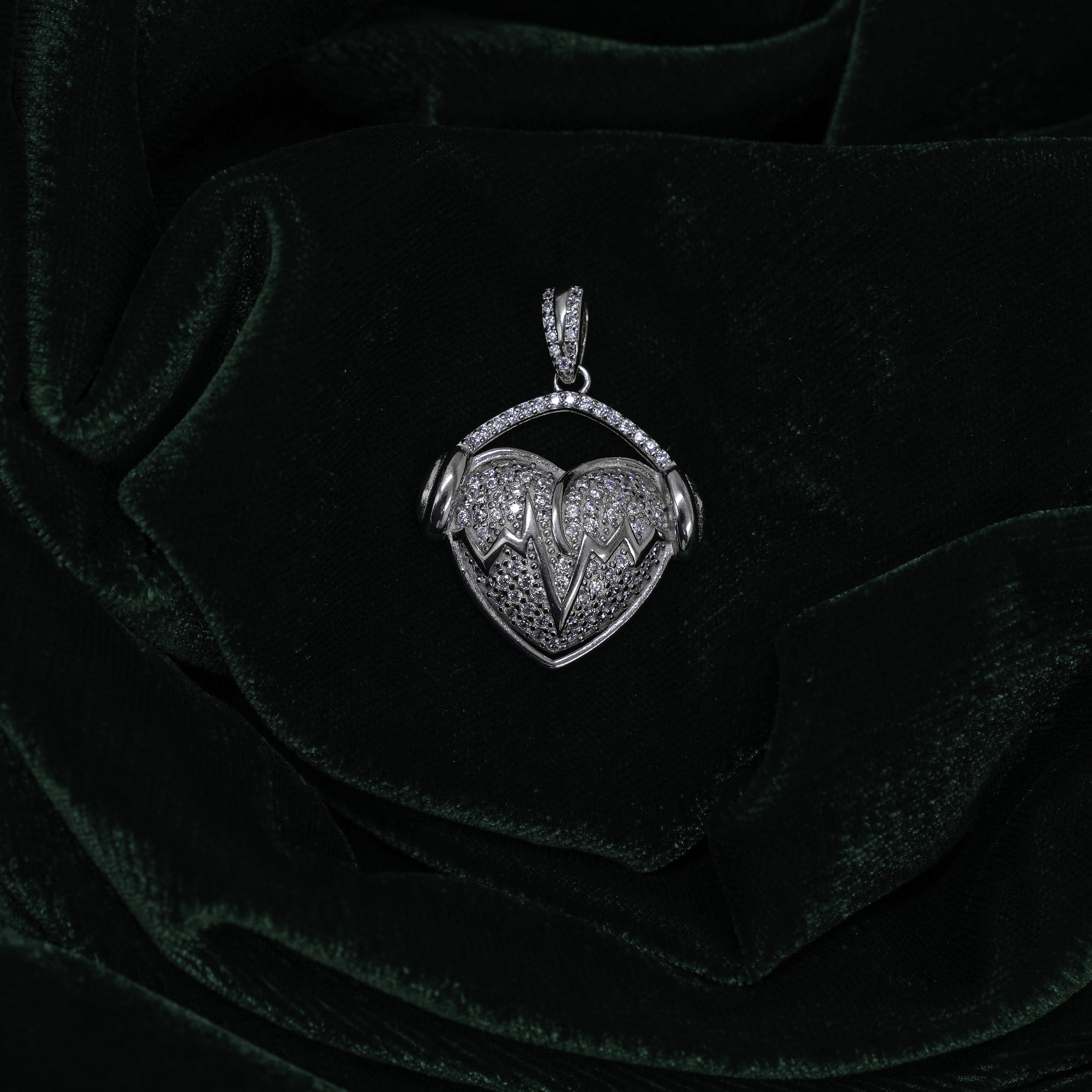 Elegant Silver Heart Pendant With Headphones Jewellery Design