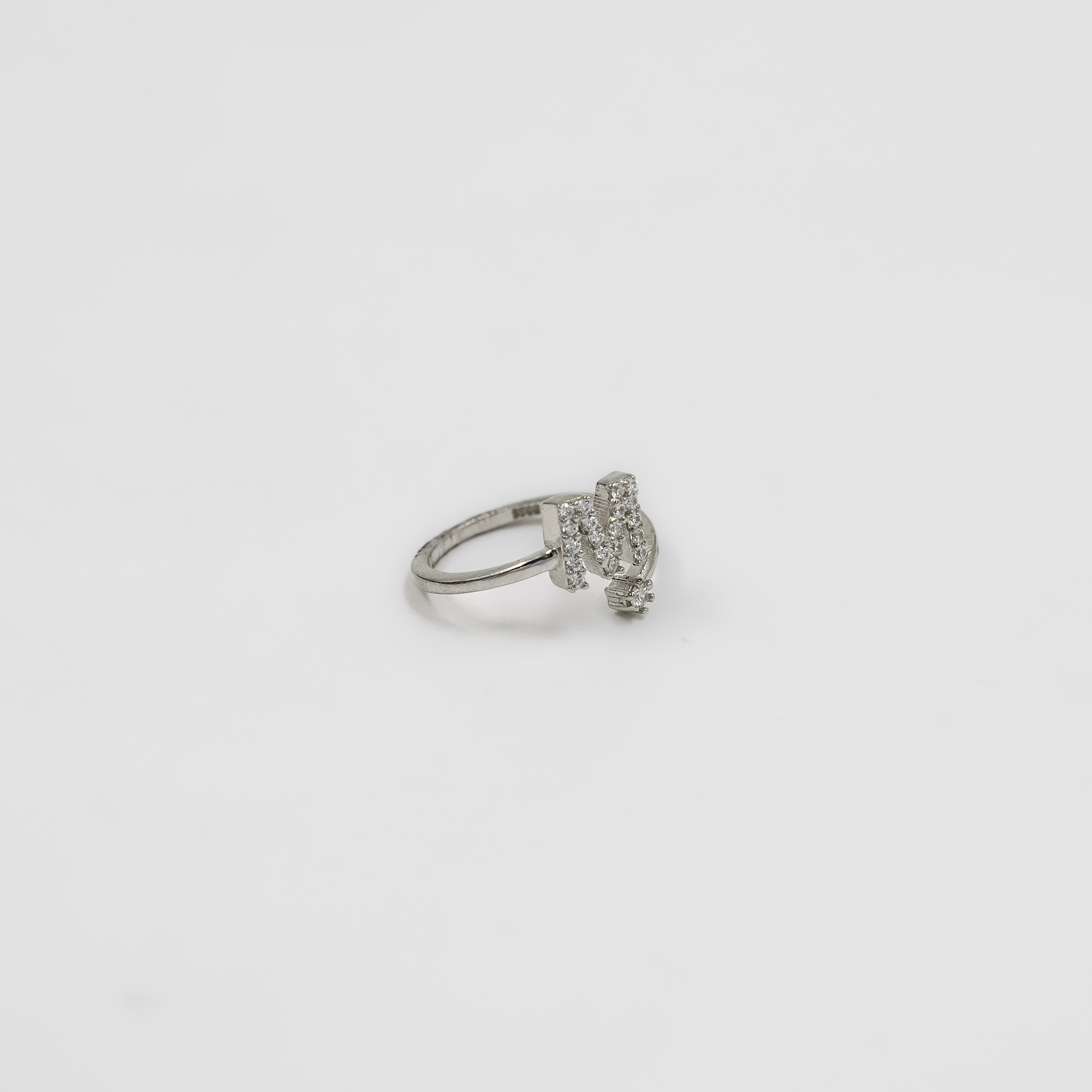Elegant Silver Letter M Initial Ring With Diamond Accents