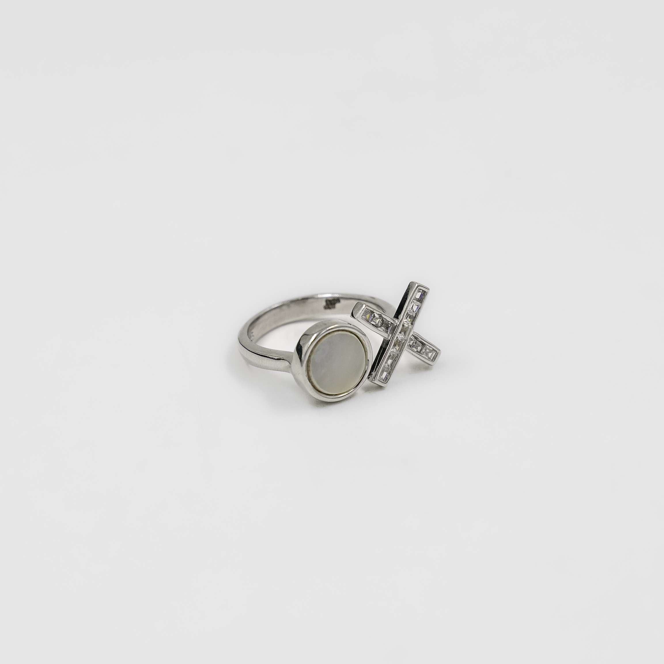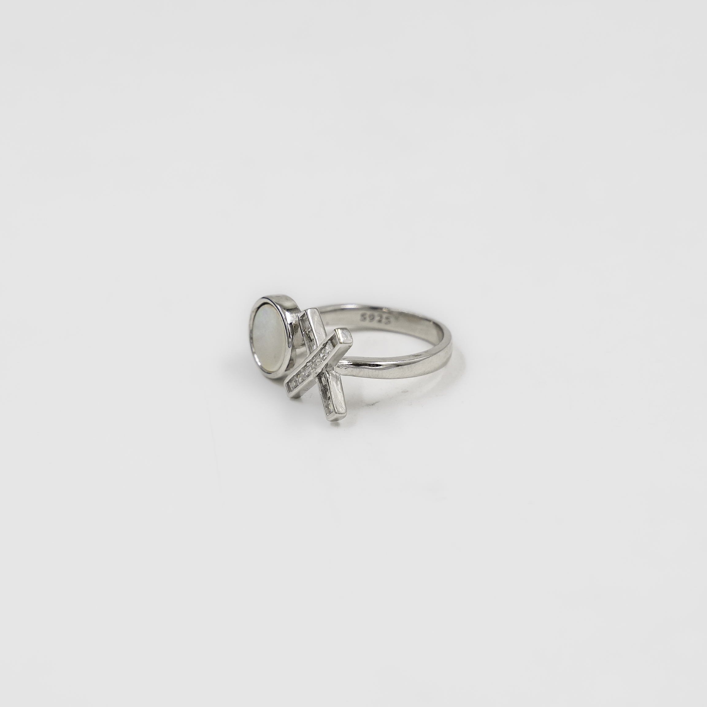 Elegant Silver Mother Of Pearl Fashion Ring X Motif Feature
