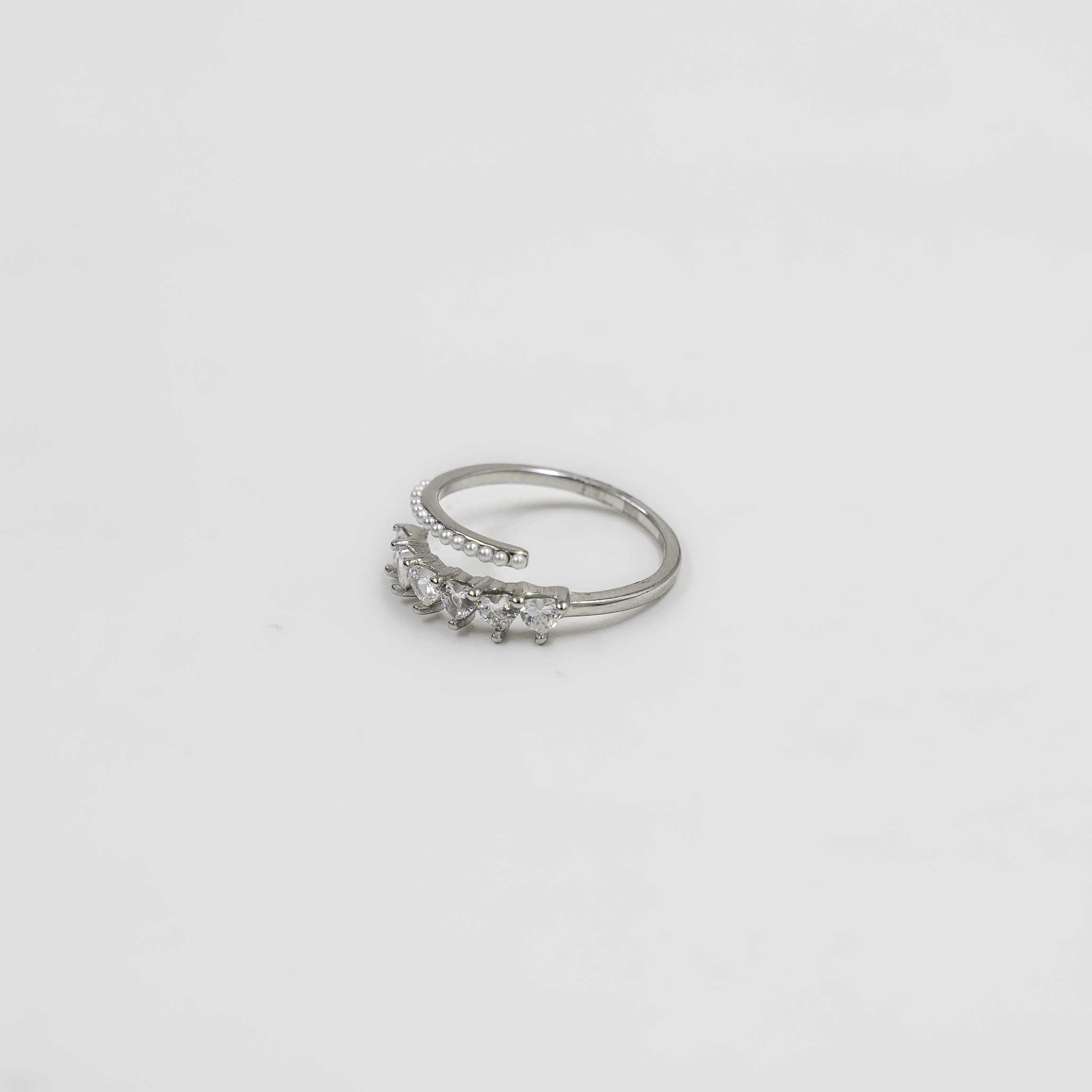 Elegant Silver Open Ring Adorned With Heart Shaped Crystals