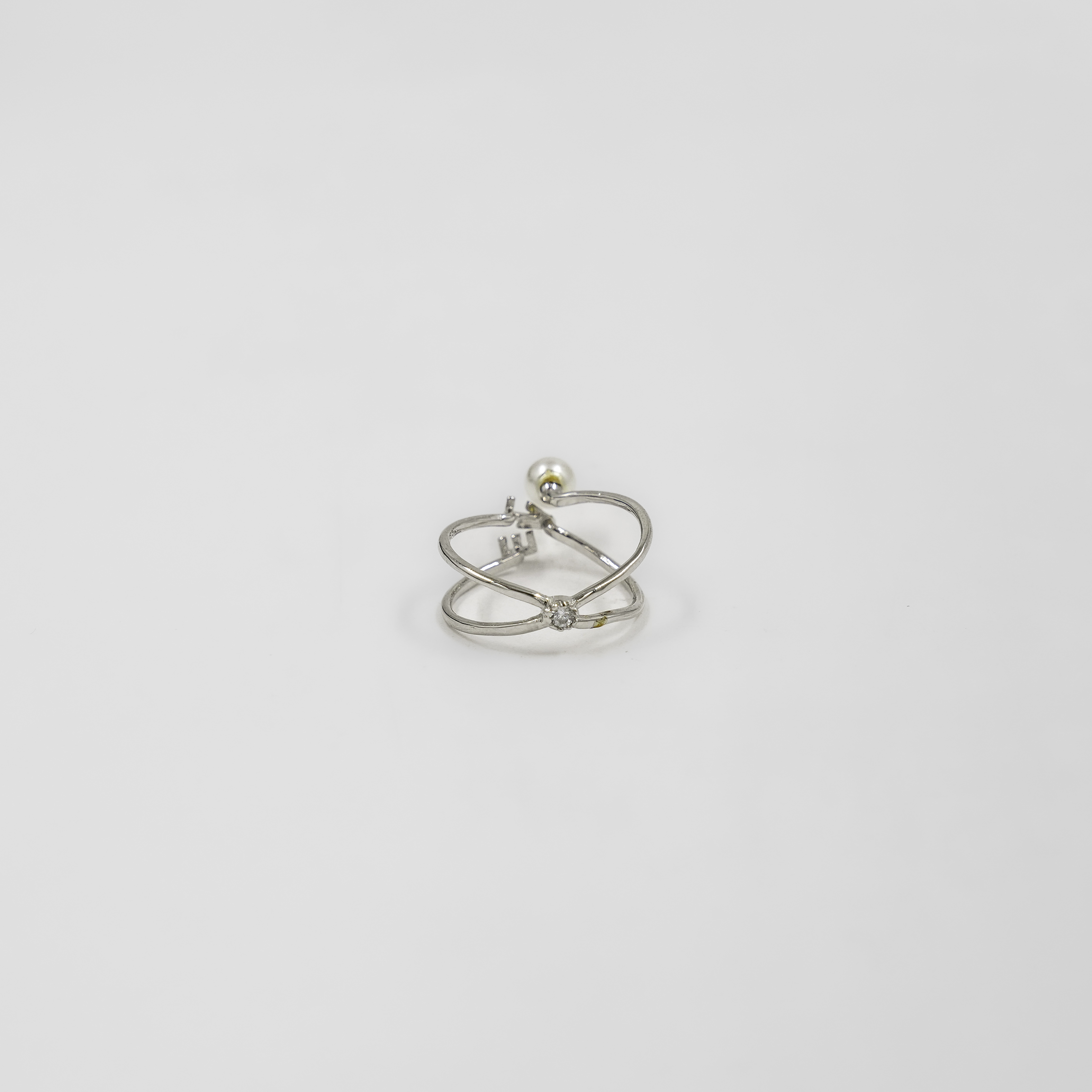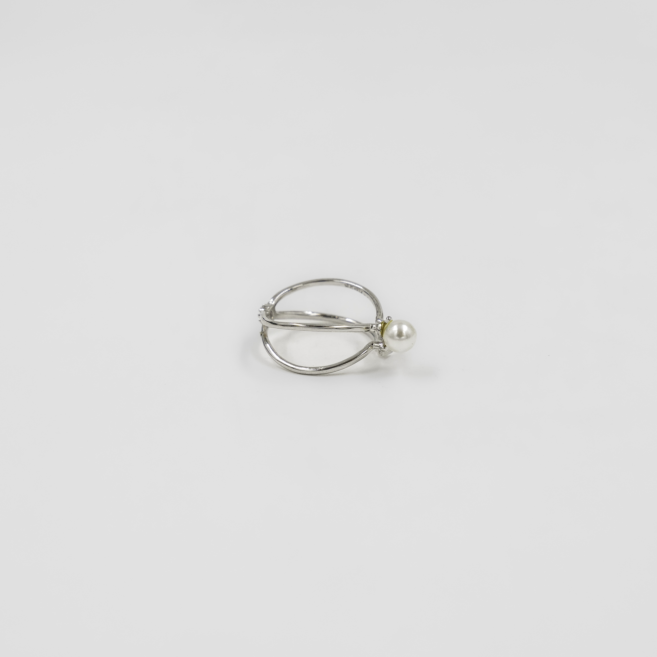 Elegant Silver Pearl Ring Double Band Design Jewellery Fashionable