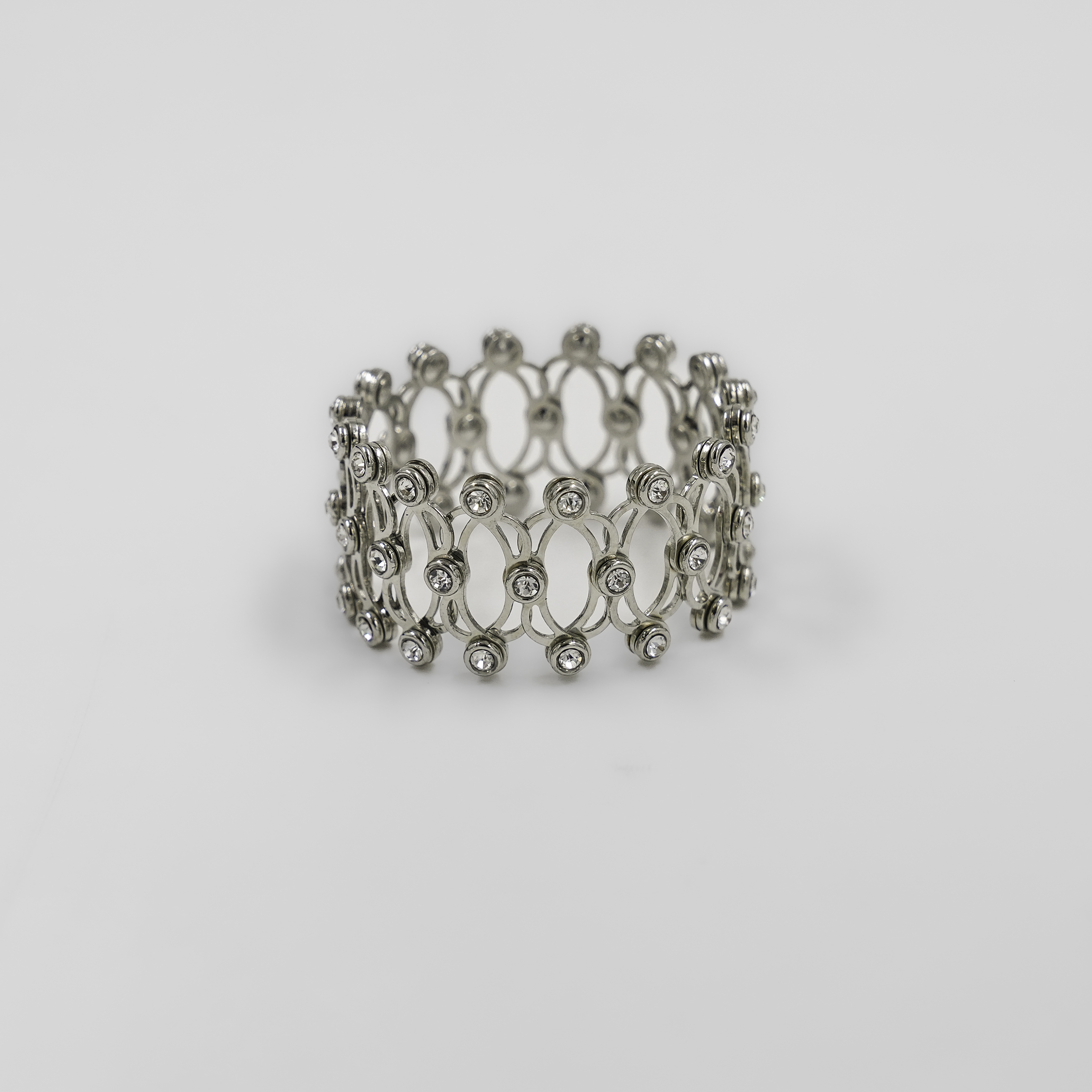 Elegant Silver Plated Stretch Ring with Crystal Embellishments