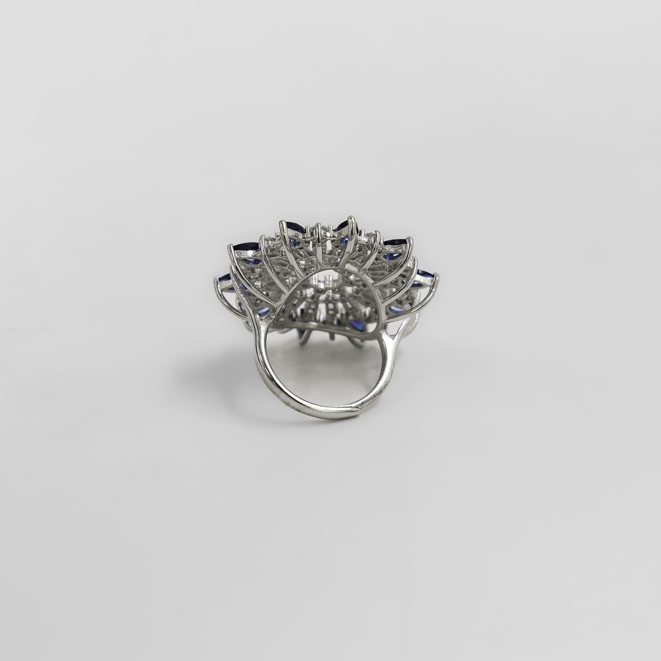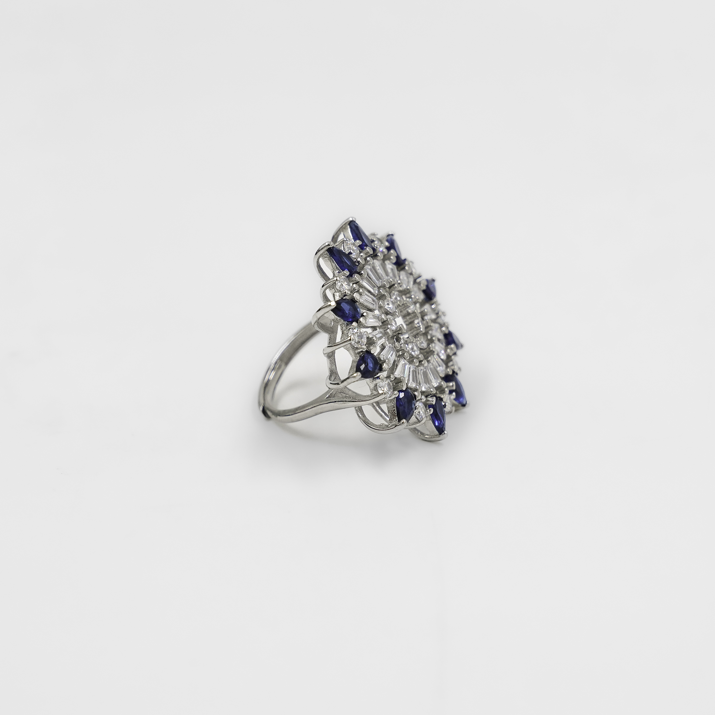 Elegant Silver Ring Adorned With Blue And White Jewellery Stones