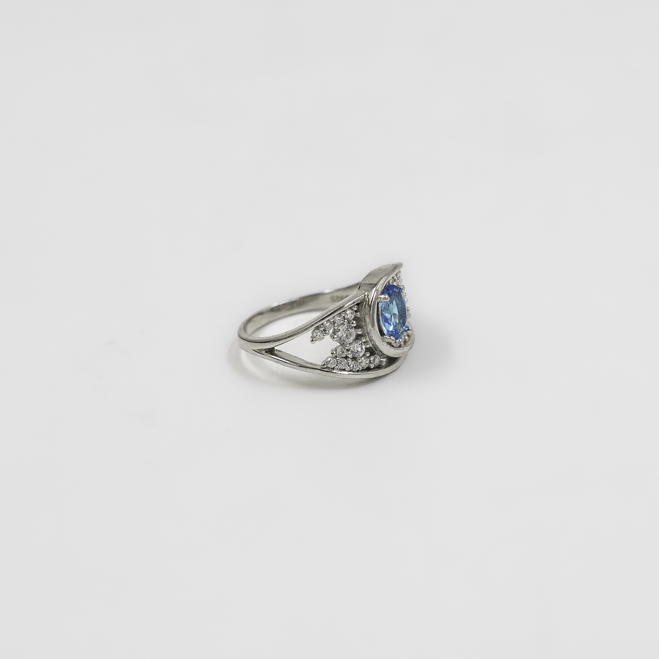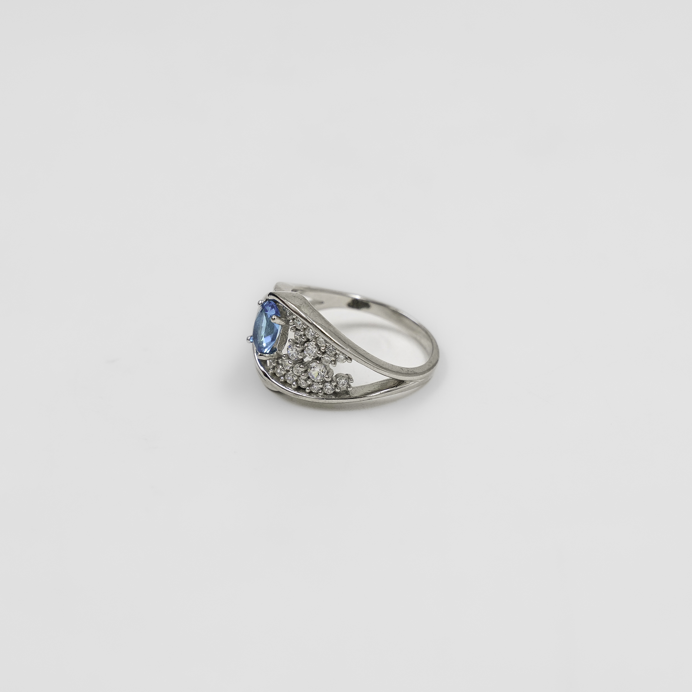 Elegant Silver Ring Blue Topaz And Cubic Zirconia Stones Detailing