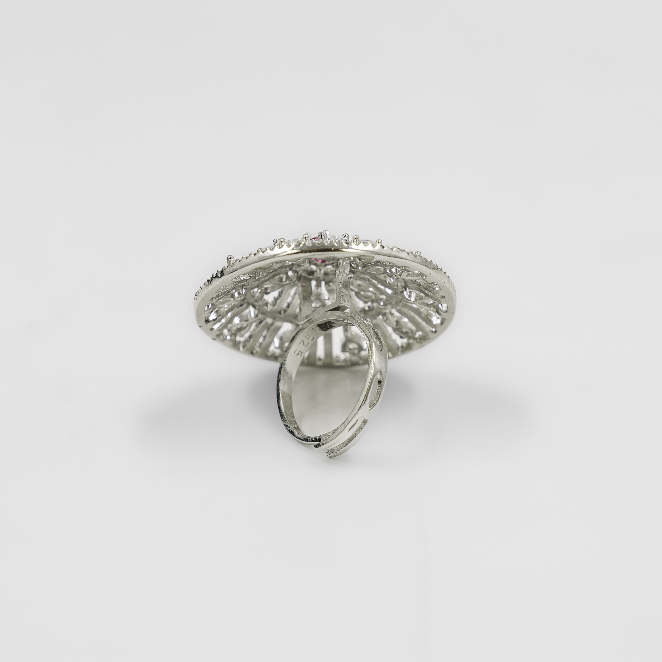 Elegant Silver Ring Pink Gemstone Accent Contemporary Jewellery