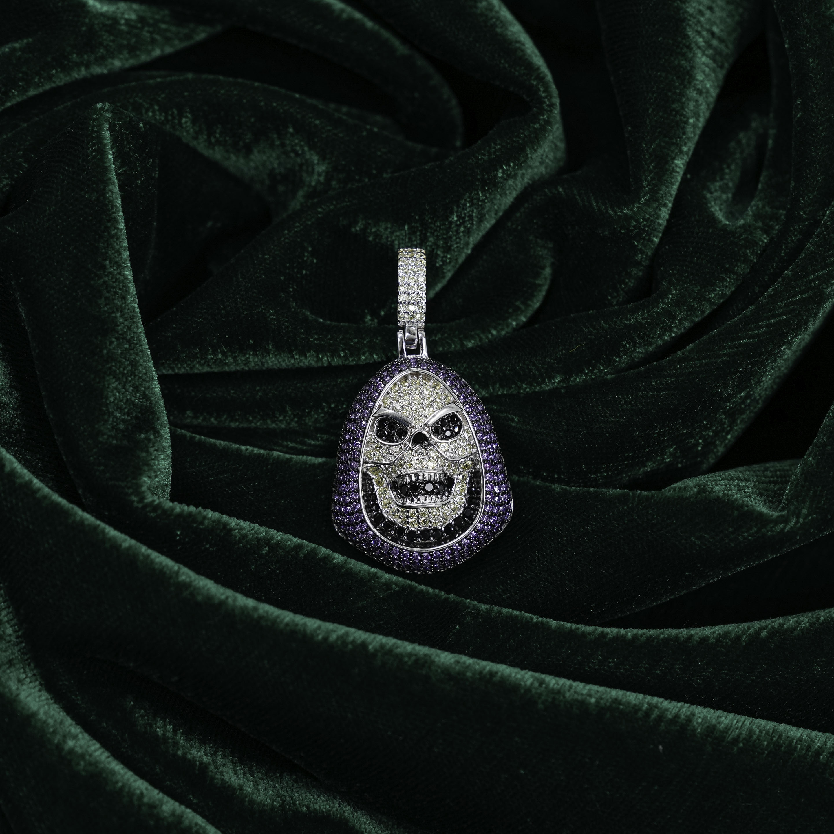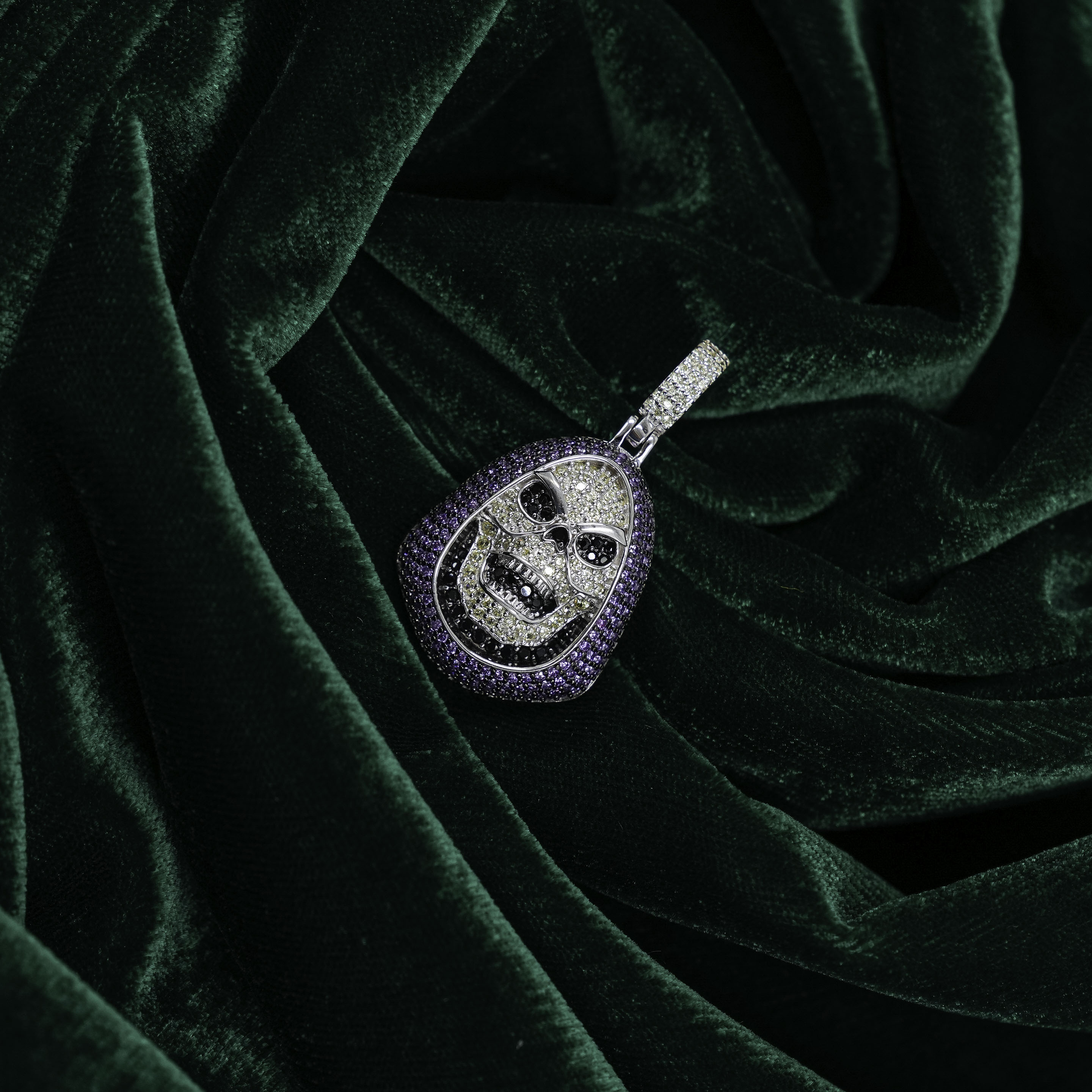 Elegant Silver Skull Design Pendant With Purple Embellishments