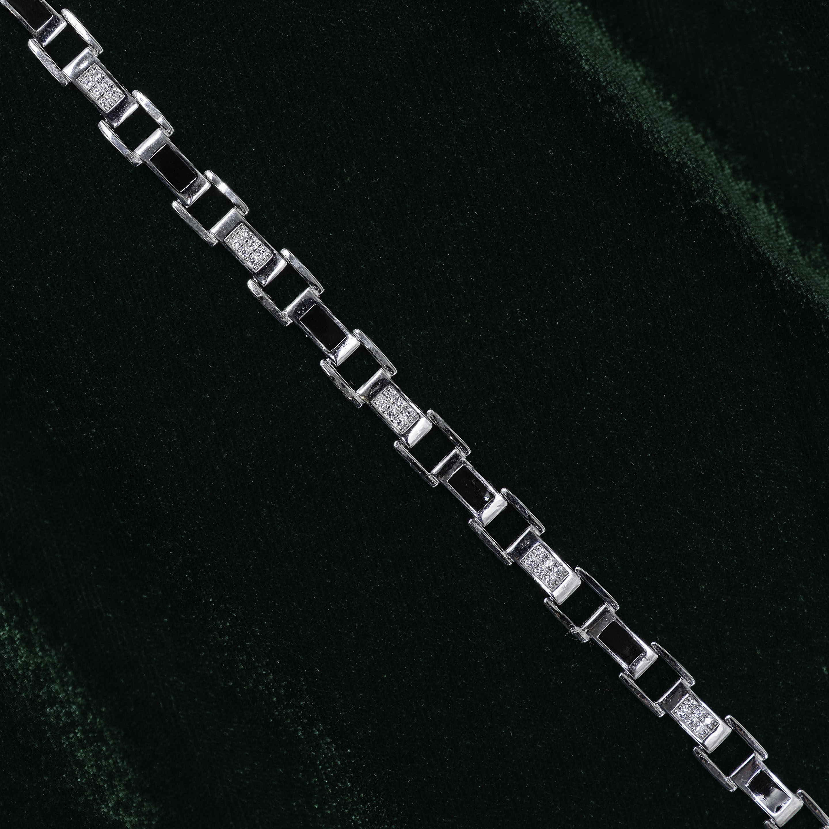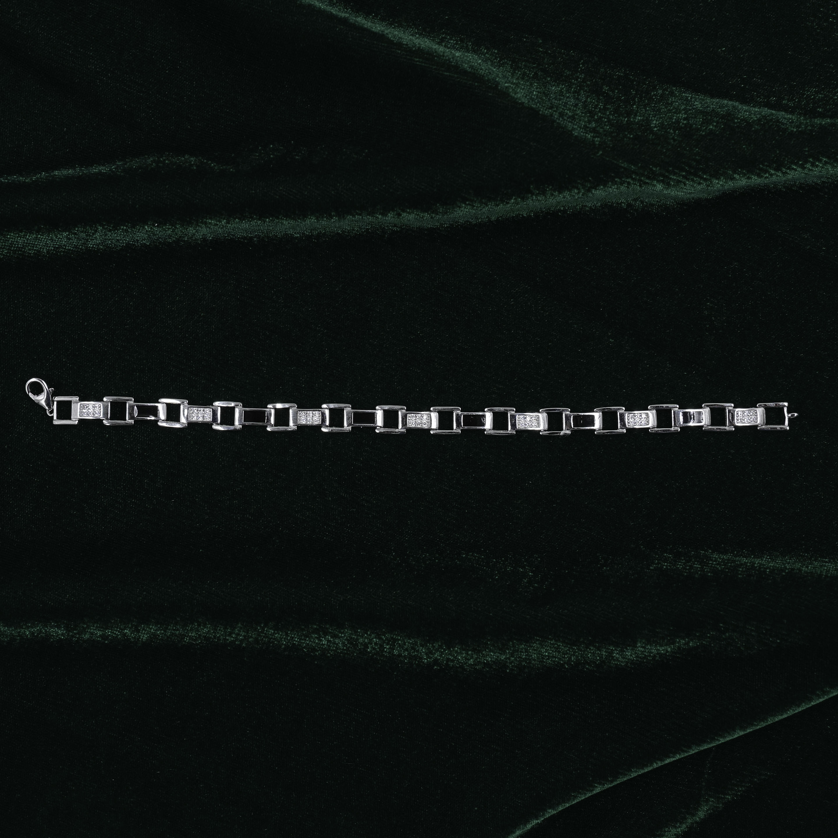 Elegant Silver Square Link Bracelet With Black Stone Setting Jewellery