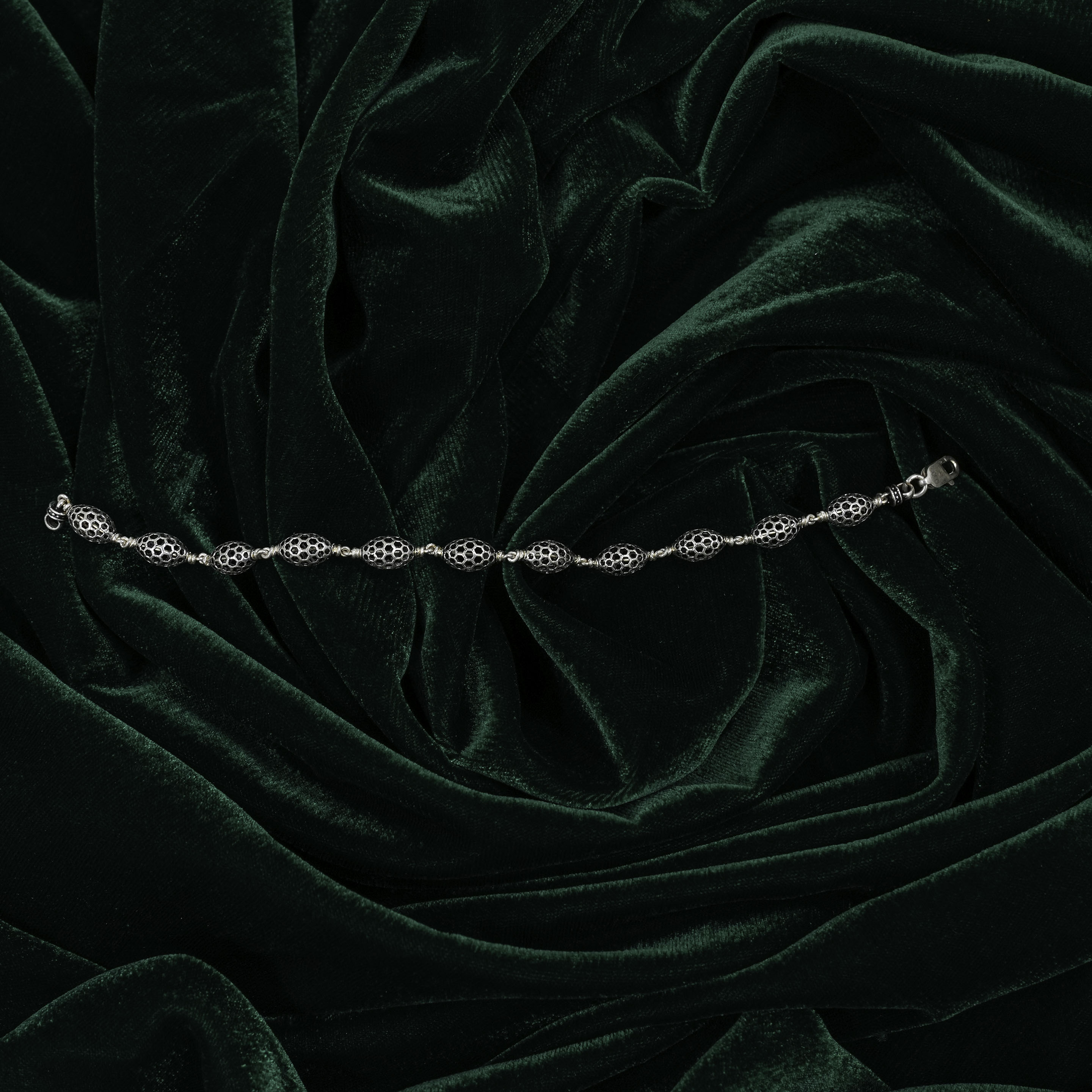 Elegant Sterling Silver Bead Bracelet Jewellery Accessory Green Velvet