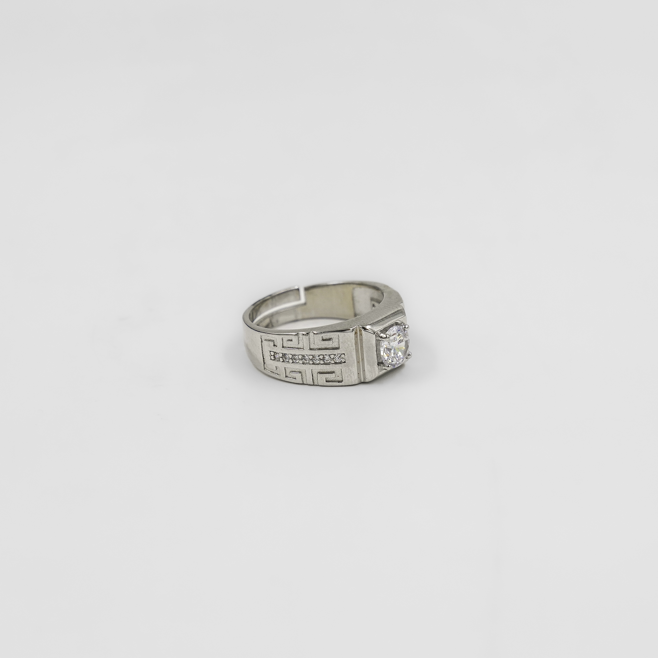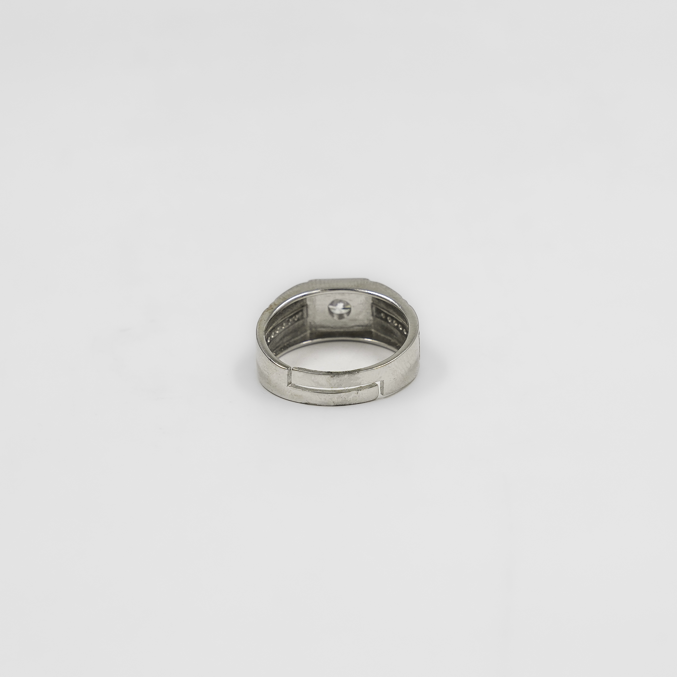 Elegant Sterling Silver Colourless Stone Mens Ring Adjustable Band