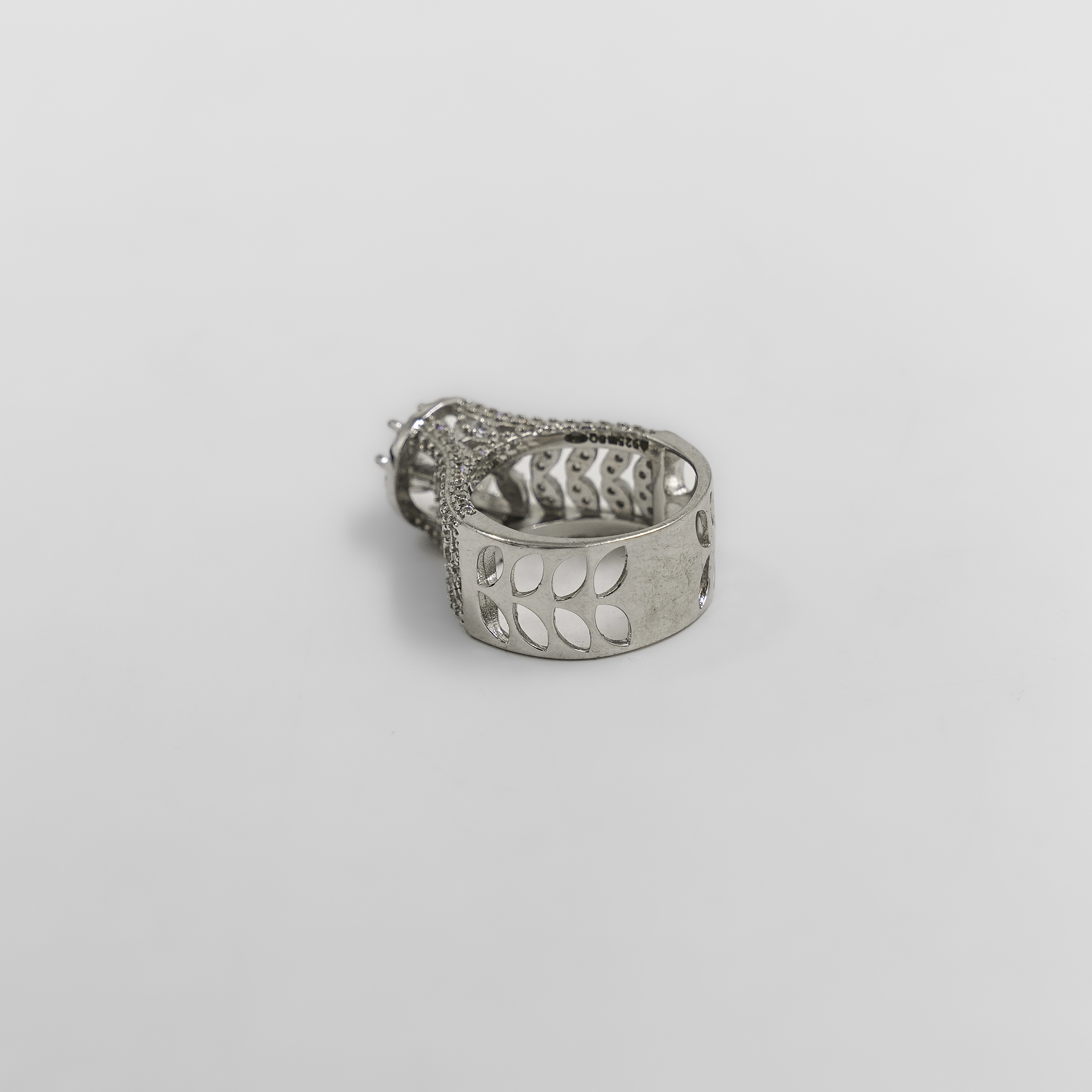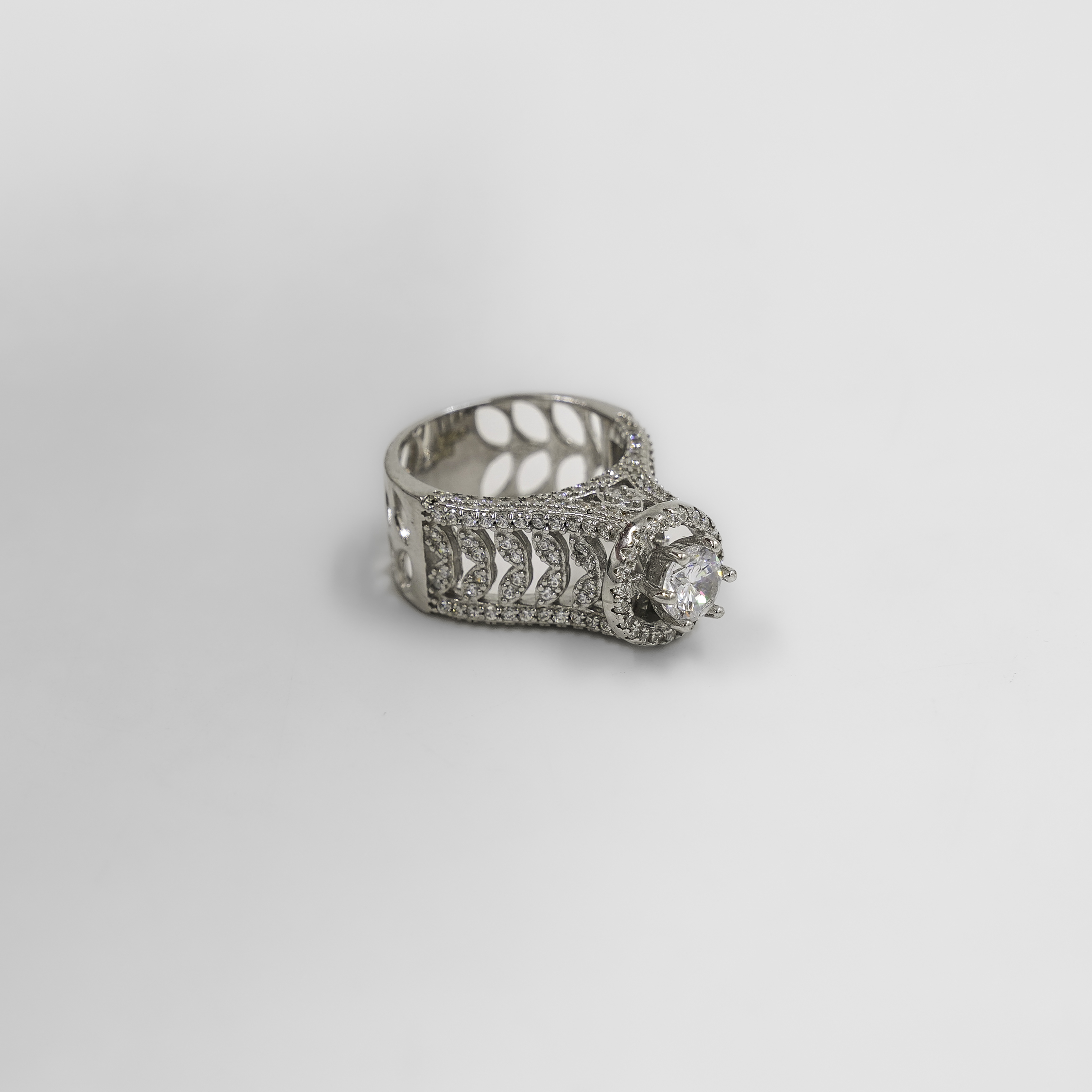 Elegant Sterling Silver Cubic Zirconia Statement Ring Intricate Design