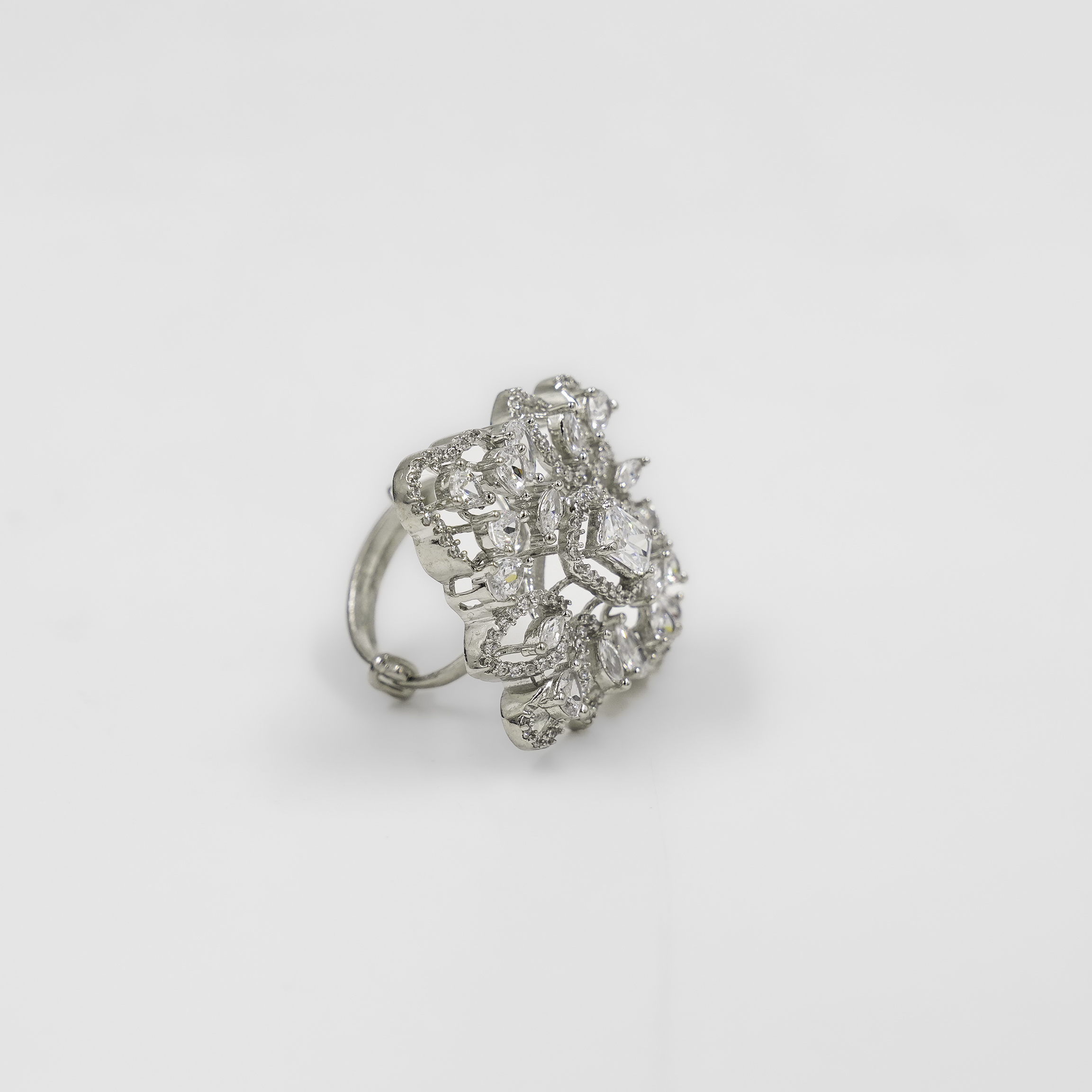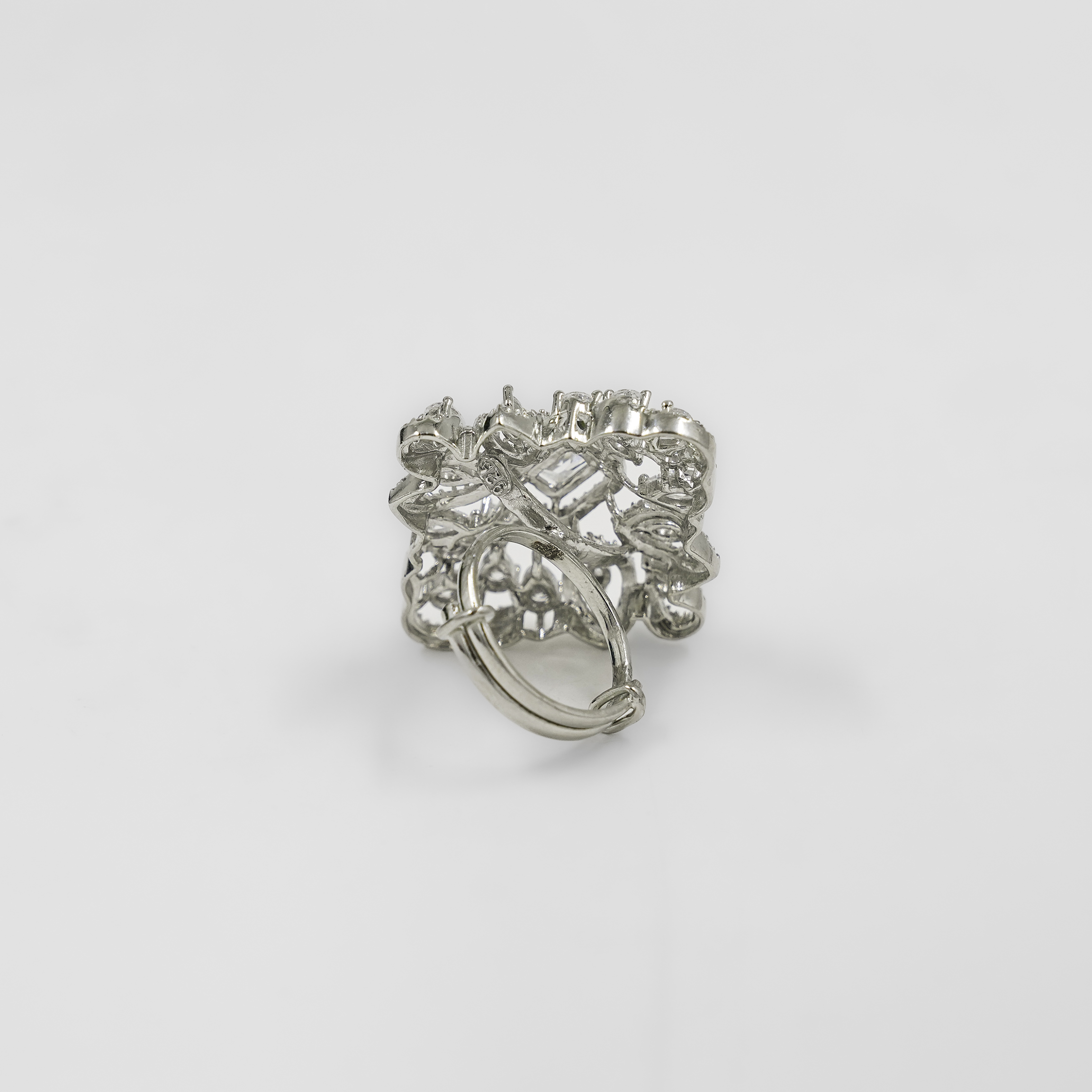 Elegant Sterling Silver Cubic Zirconia Square Cocktail Ring
