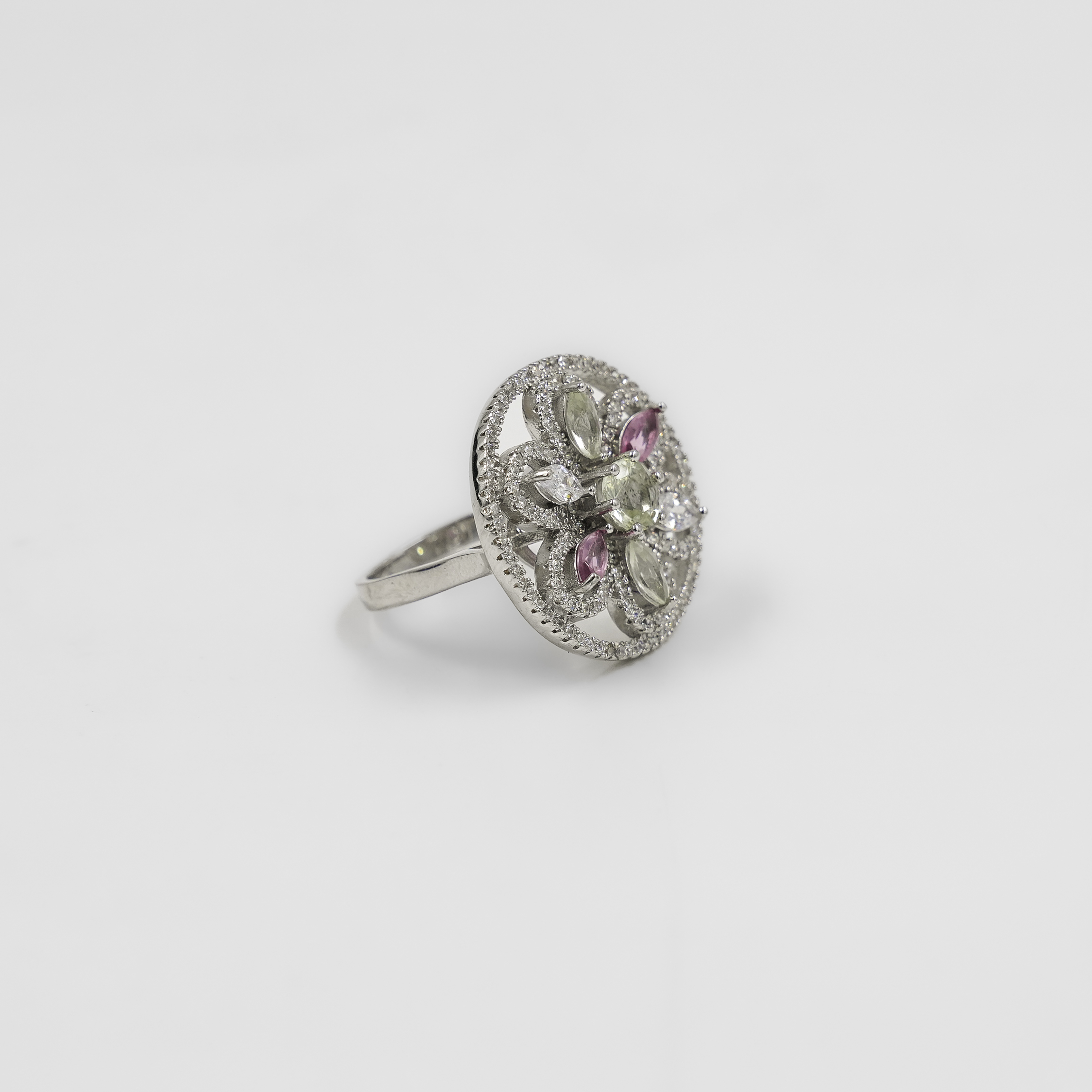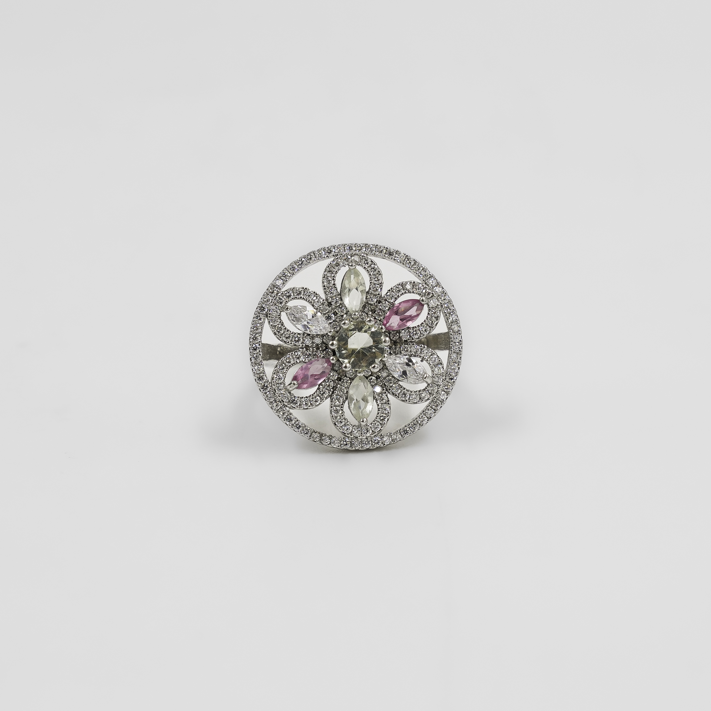 Elegant Sterling Silver Floral Design Cocktail Ring Statement Jewellery