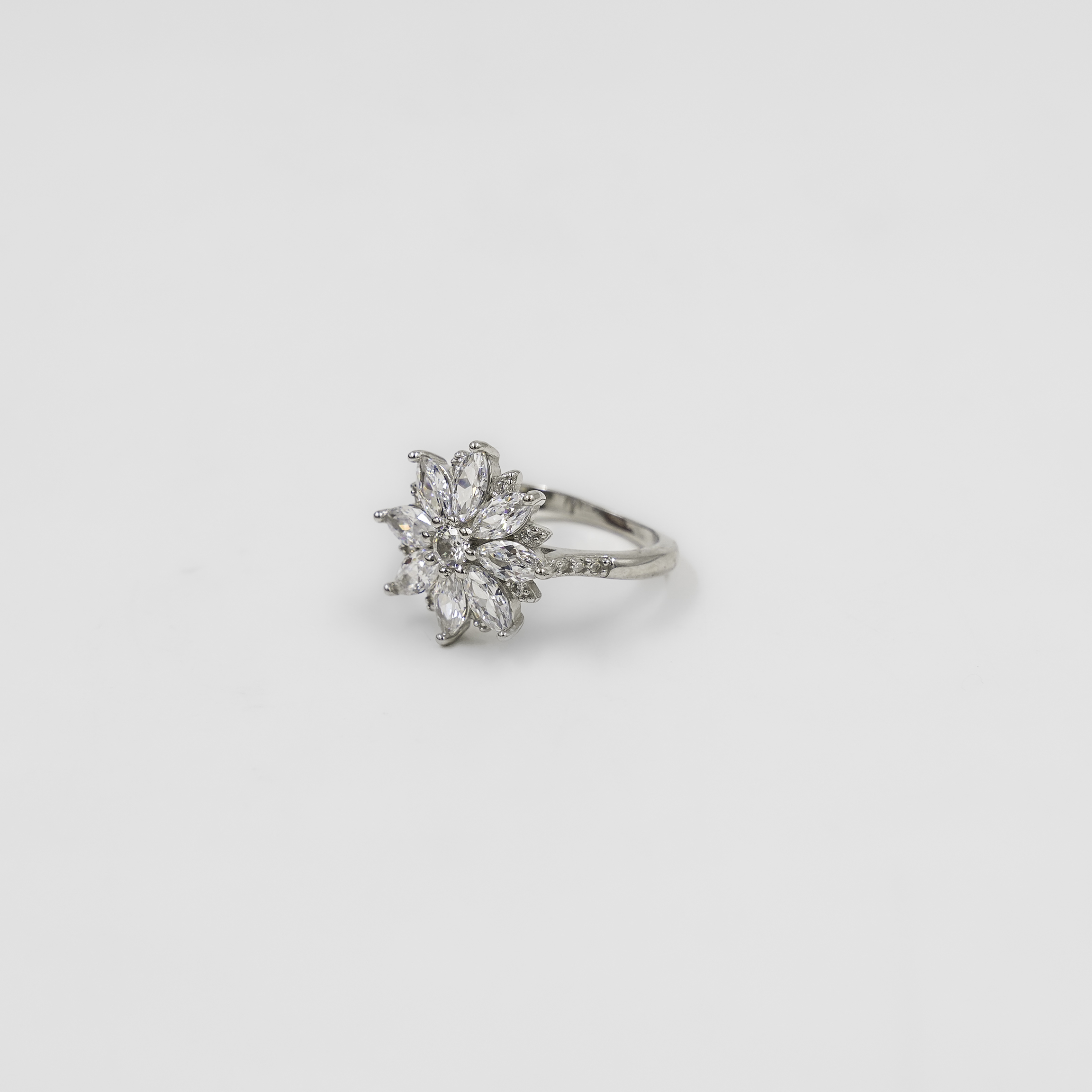 Elegant Sterling Silver Floral Design Ring with Cubic Zirconia