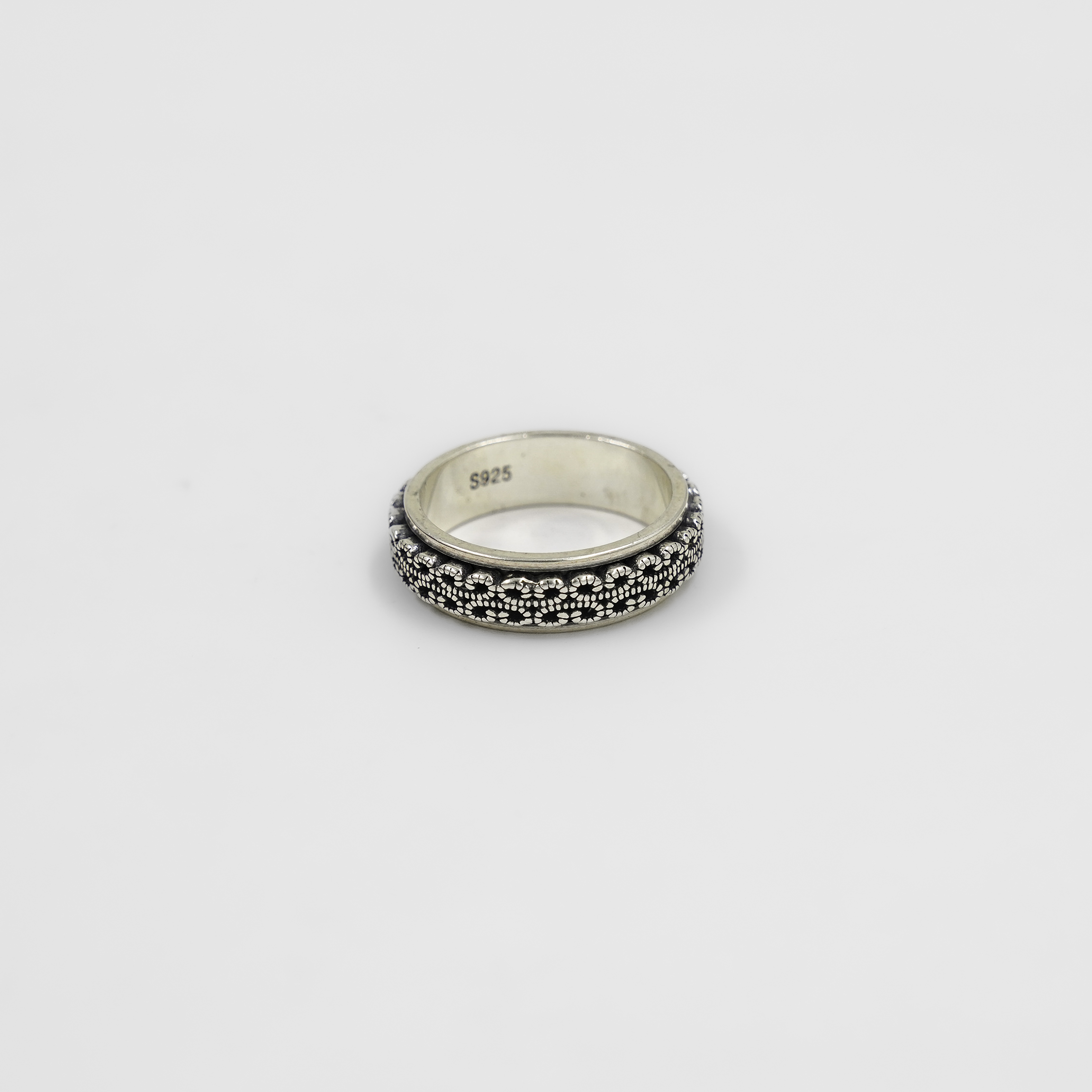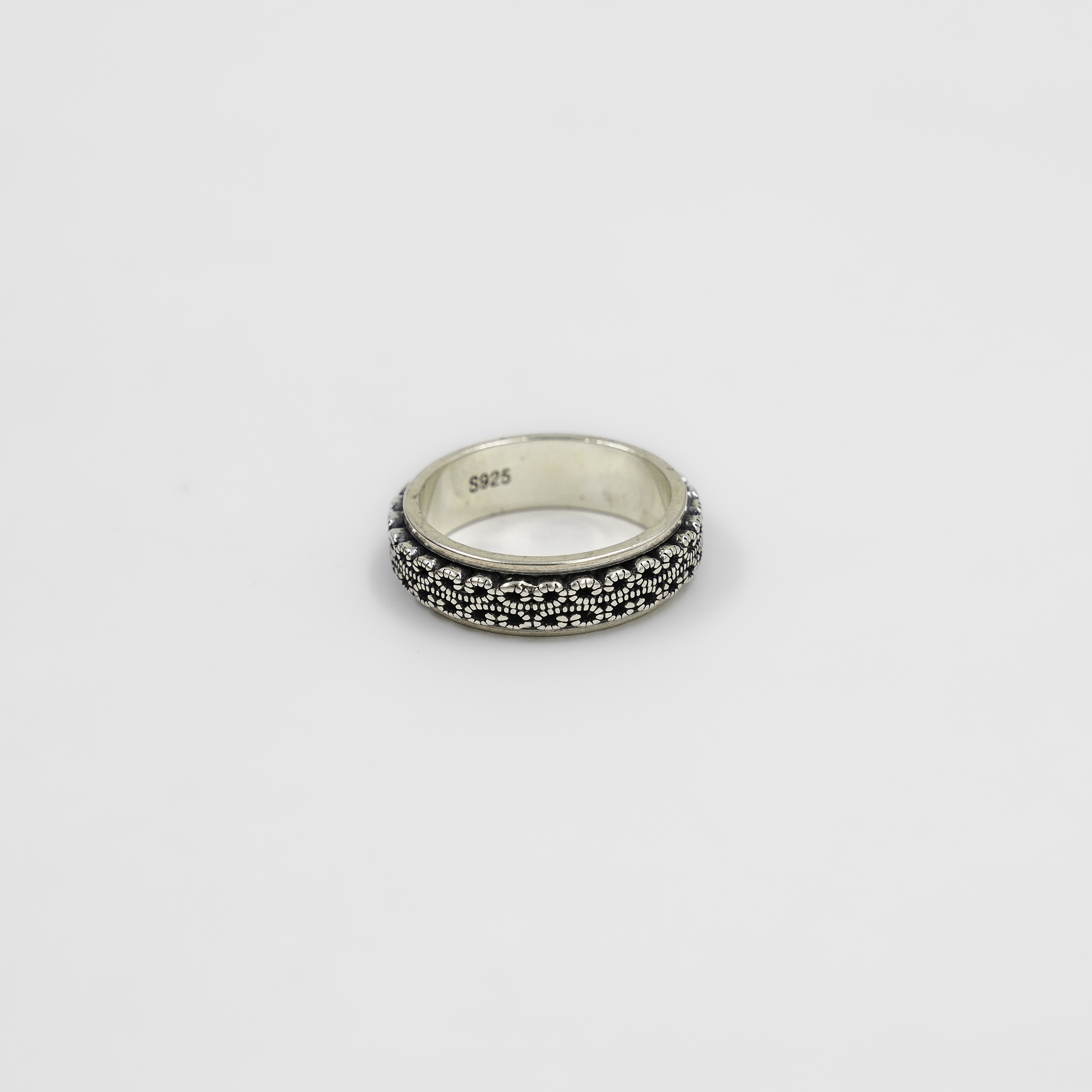 Elegant Sterling Silver Patterned Design Silver Spinner Ring