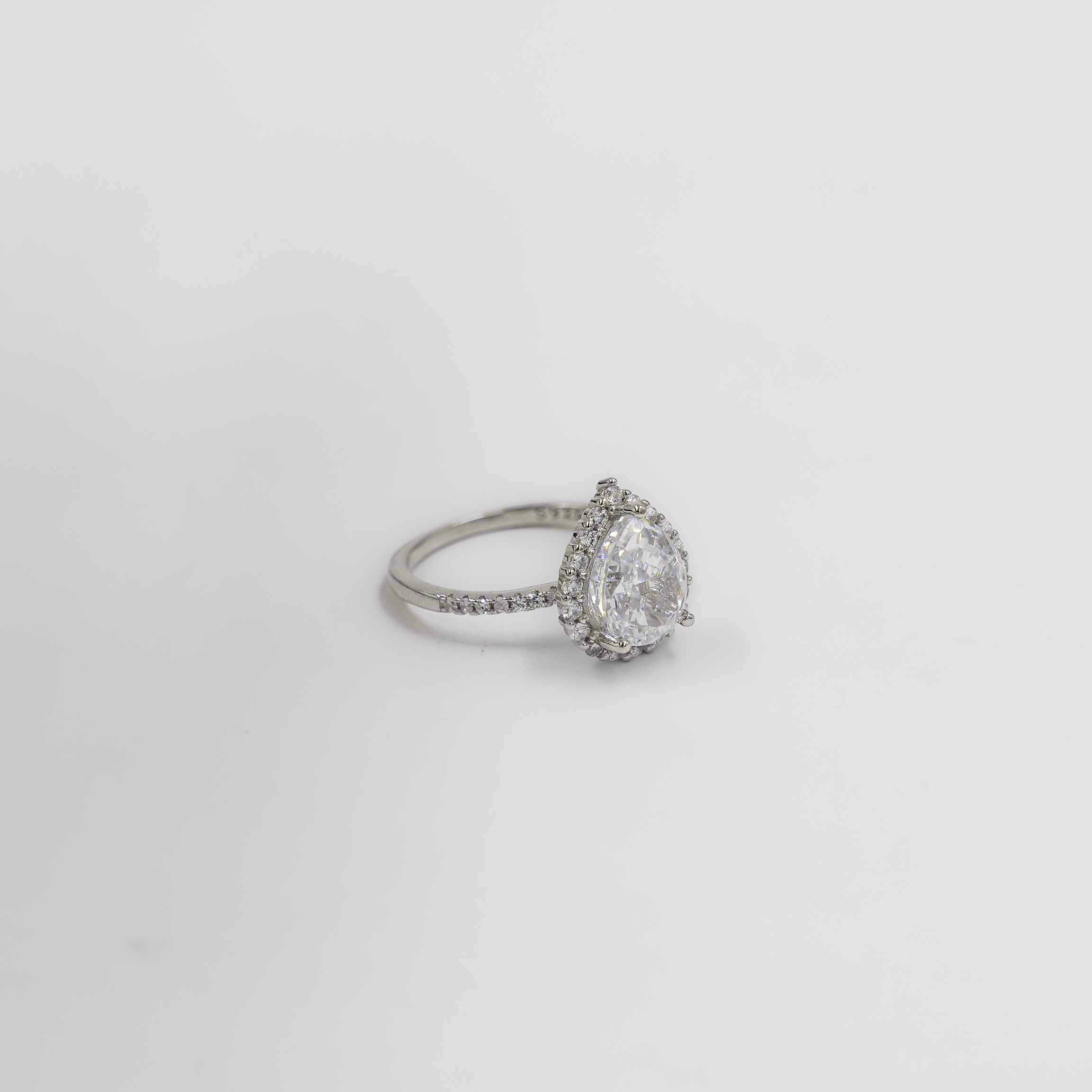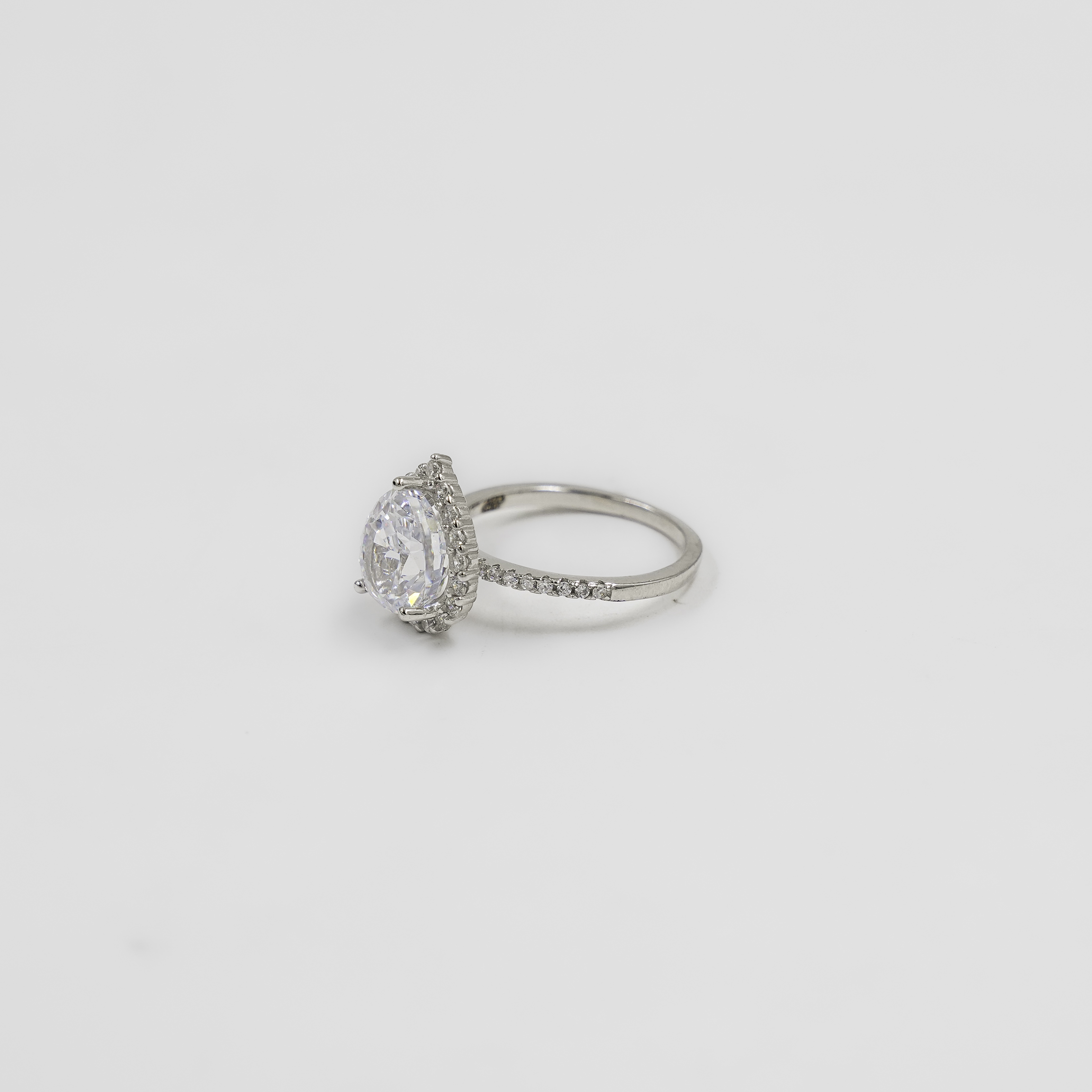 Elegant Sterling Silver Ring With Pear Cut Cubic Zirconia Stone
