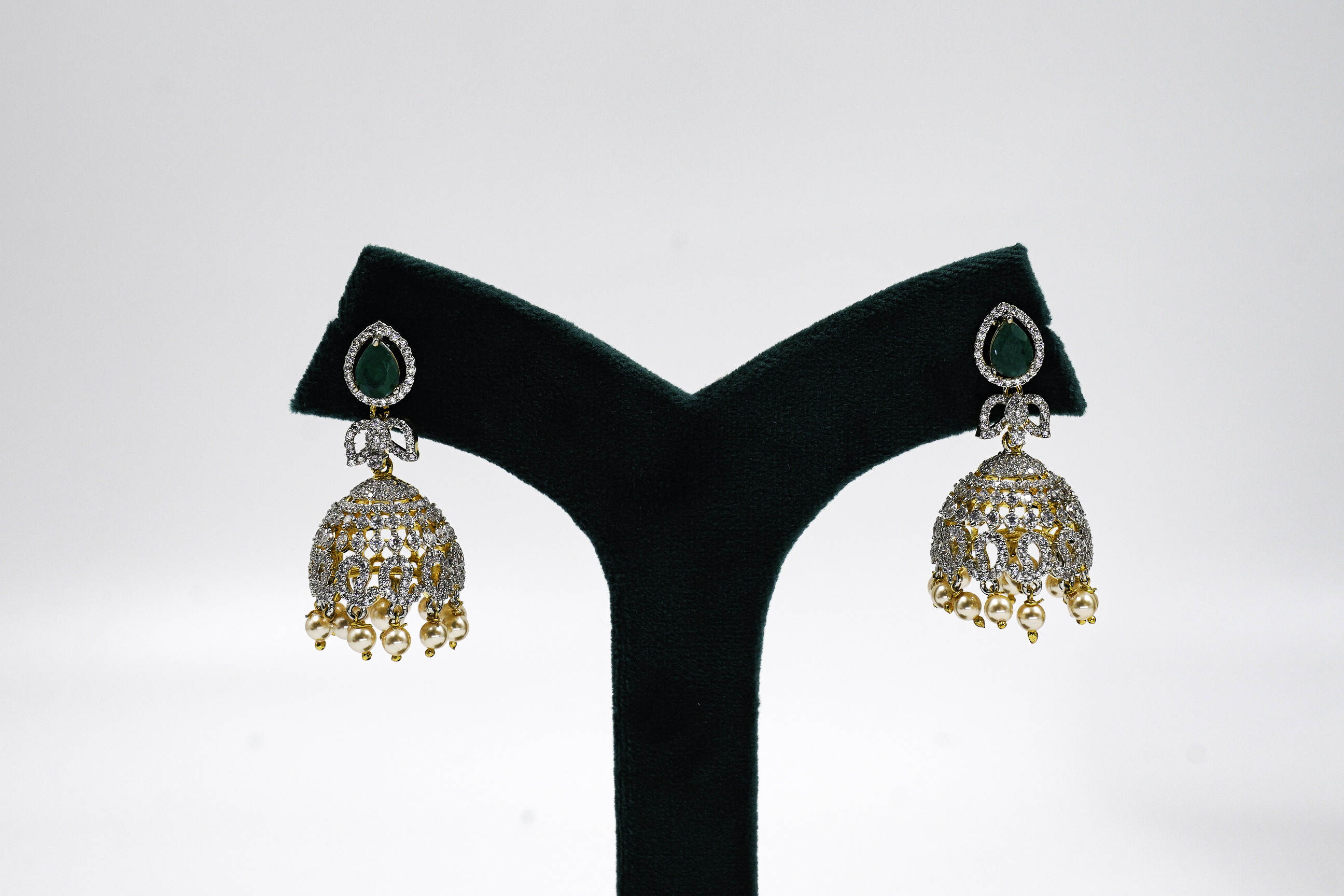 Elegant emerald studded silver necklace with intricate detailing, perfect for weddings and special occasions. Buy Emerald Silver Necklace from Raag Silver Jewellery in Hyderabad.
