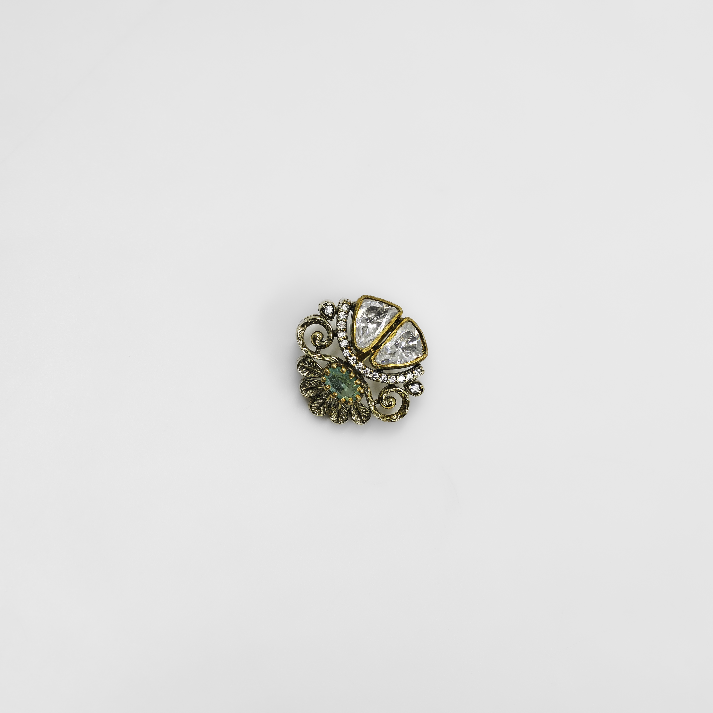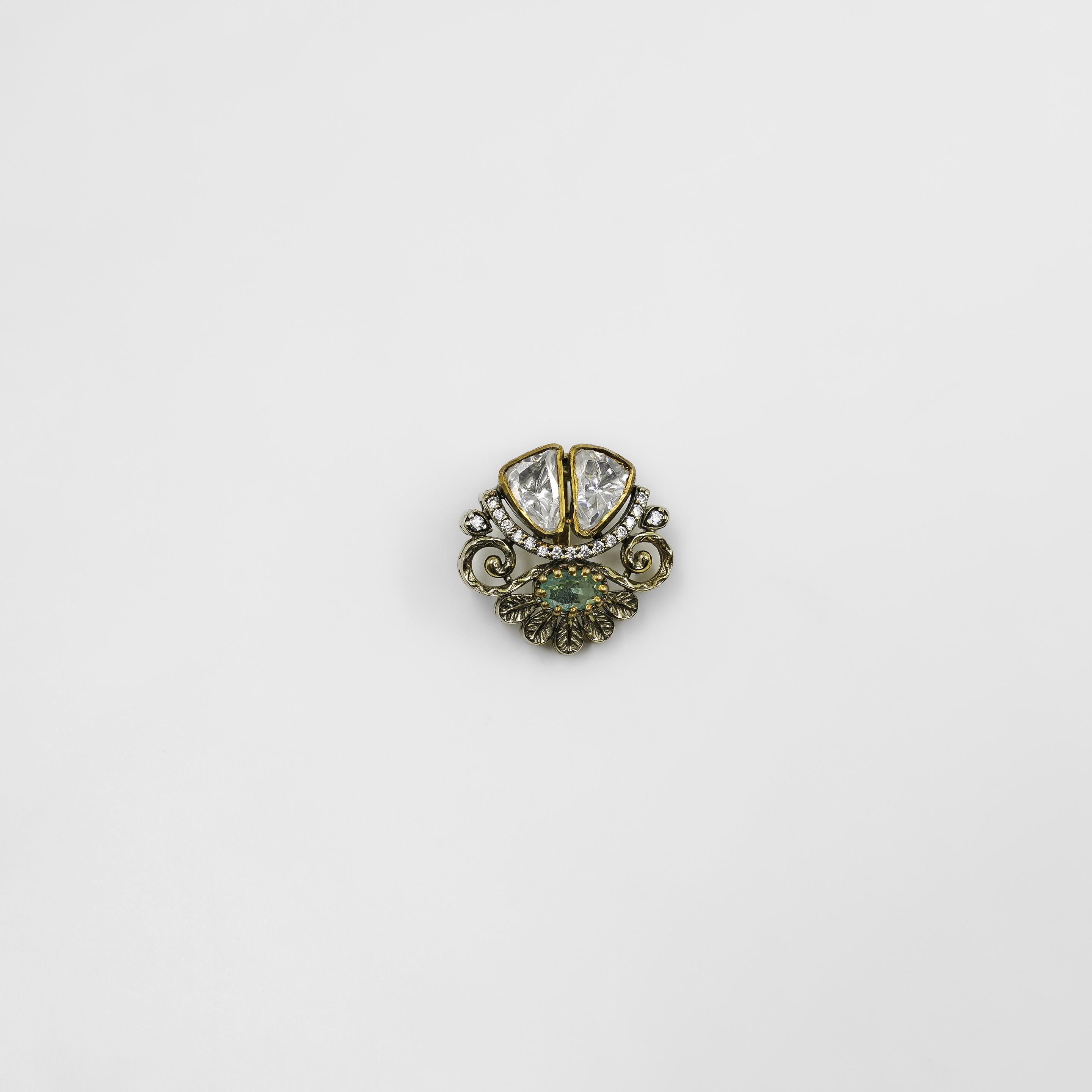 Antique silver pendant with emerald centerpiece, a unique statement piece. Buy Emerald Silver Pendant from Raag Silver Jewellery in Hyderabad for timeless elegance.