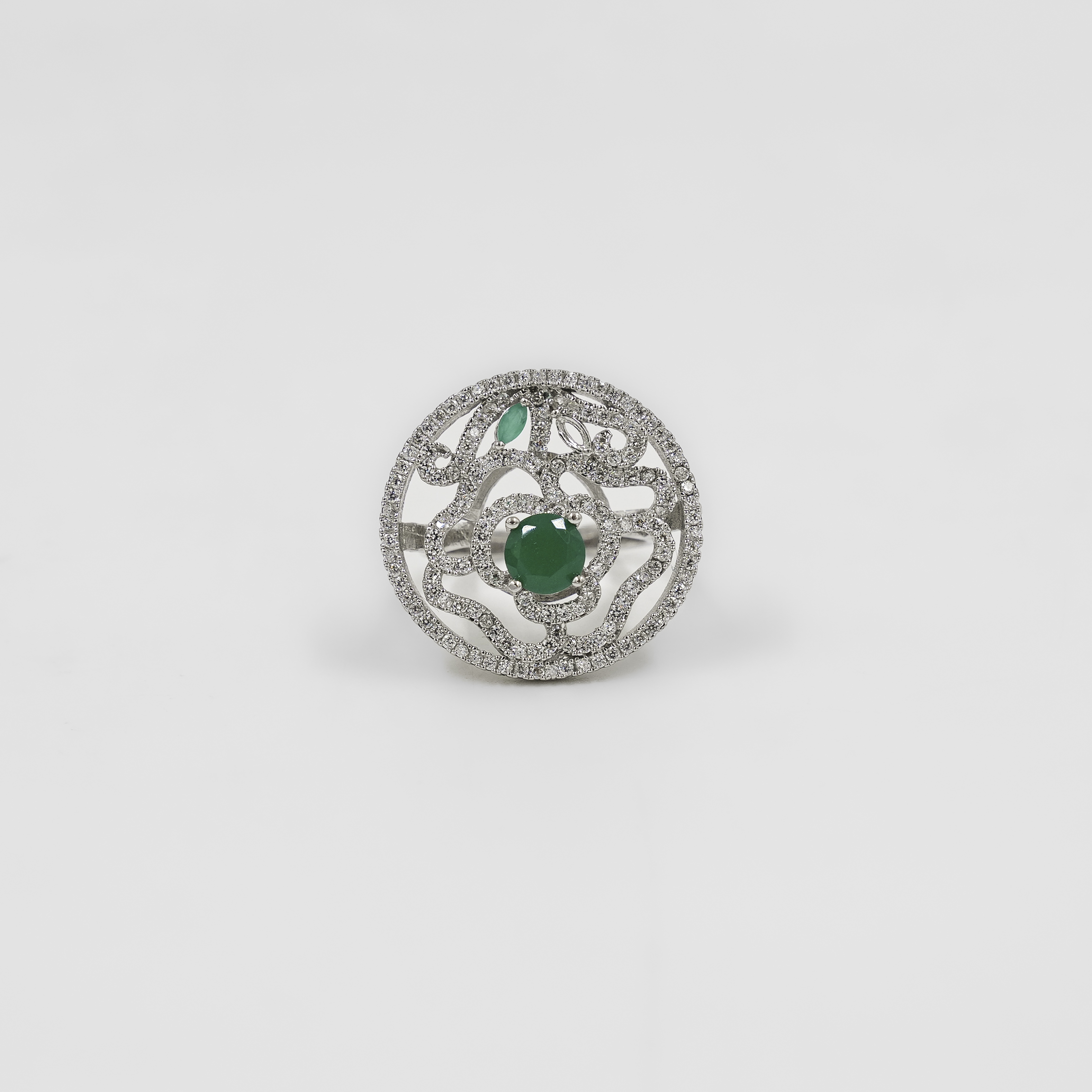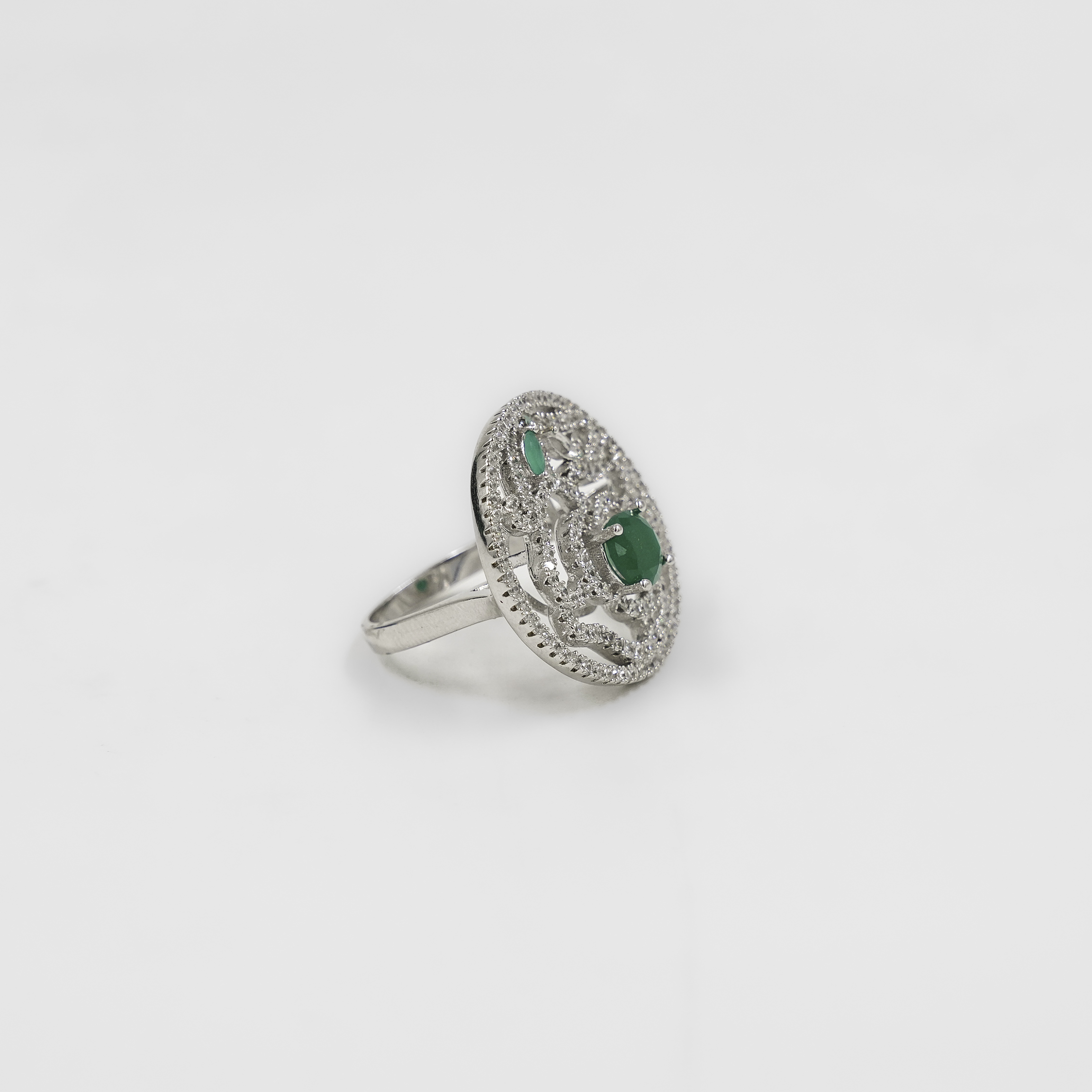 Estate Style Sterling Silver Green Agate Designer Cocktail Ring