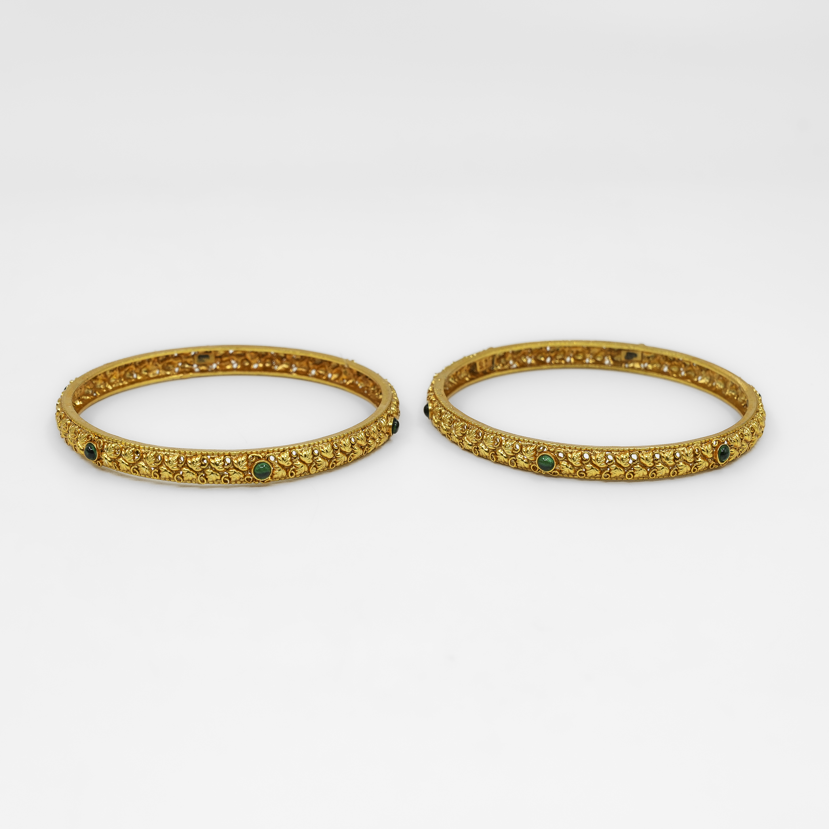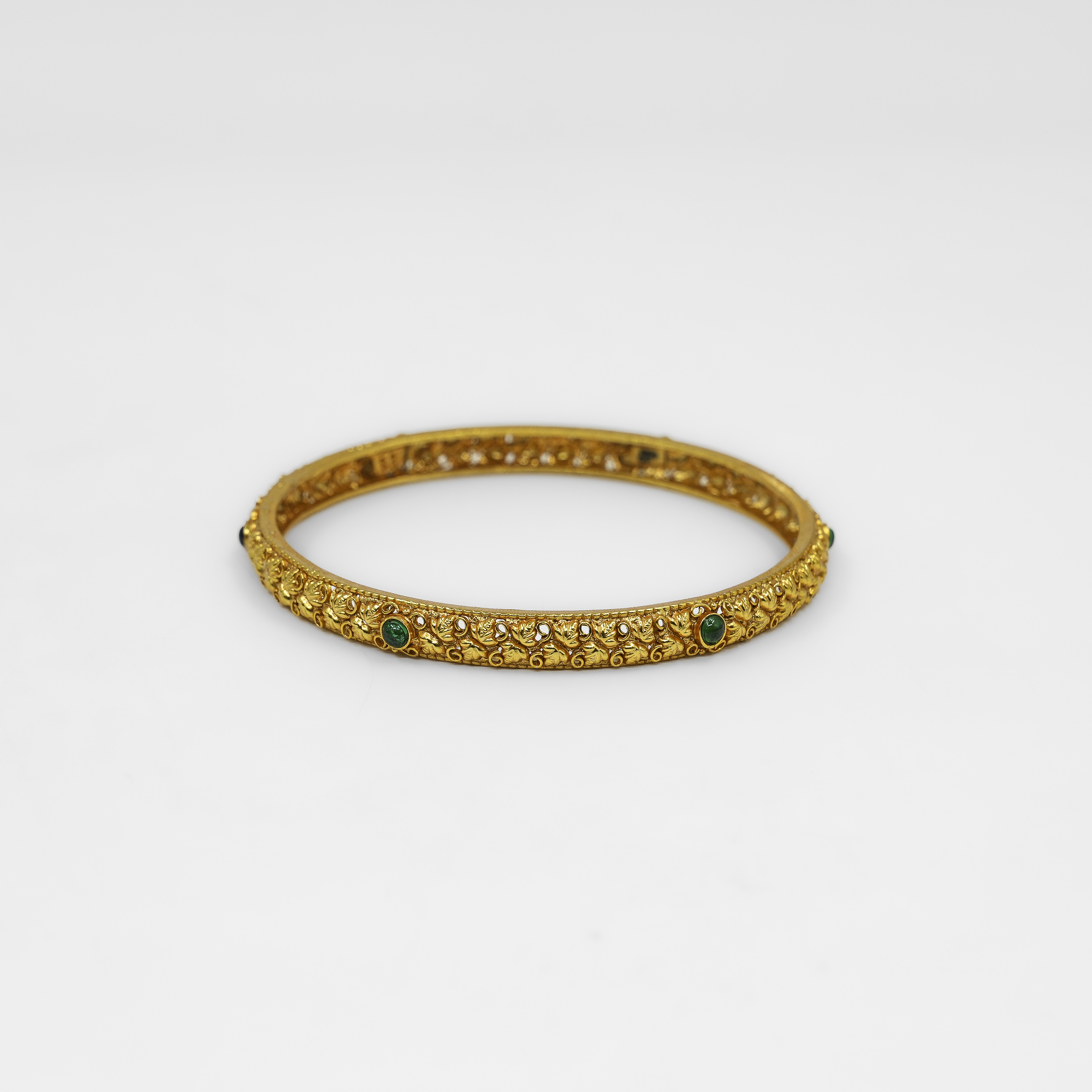 Classic Gold Polished Silver bangle with intricate pattern, perfect for traditional wear. Buy Gold Polished Silver Bangle from Raag Silver Jewellery in Hyderabad.