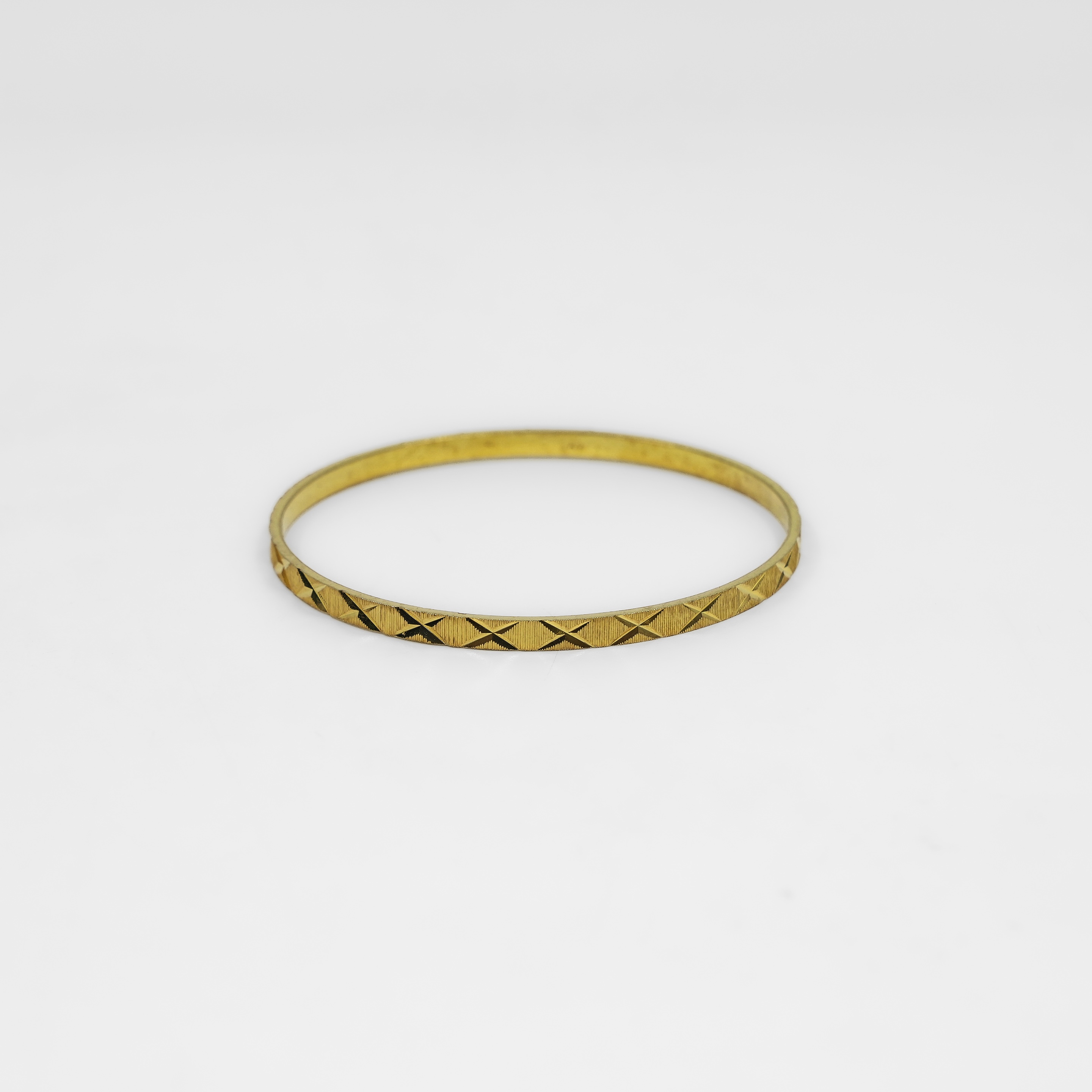 Classic Gold Polished Silver bangle with delicate detailing, perfect for traditional and festive occasions. Buy Gold Polished Silver Bangle from Raag Silver Jewellery in Hyderabad.