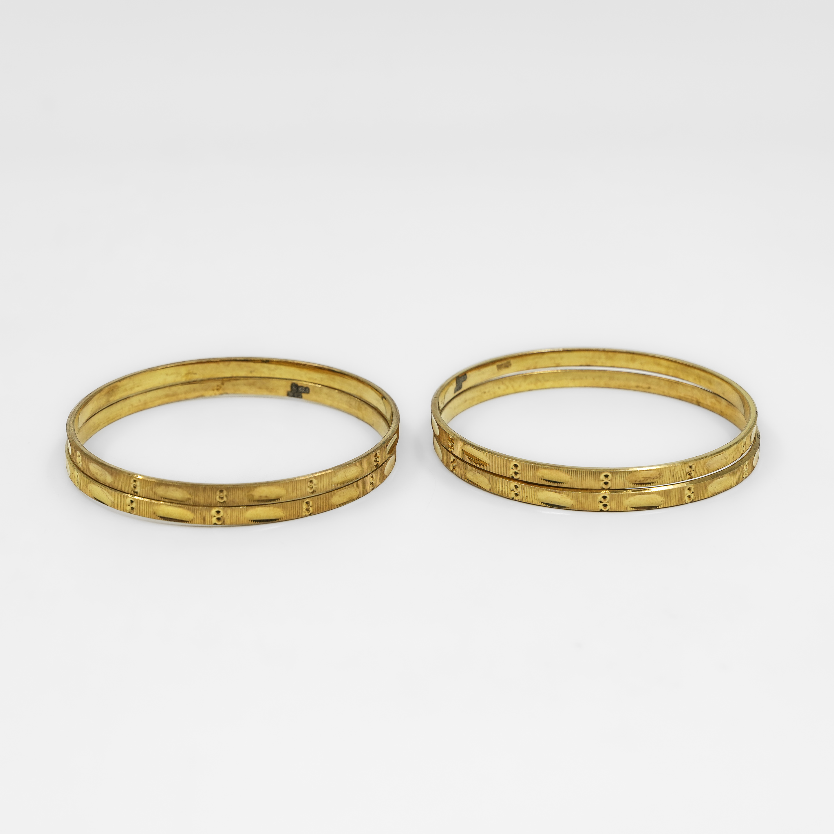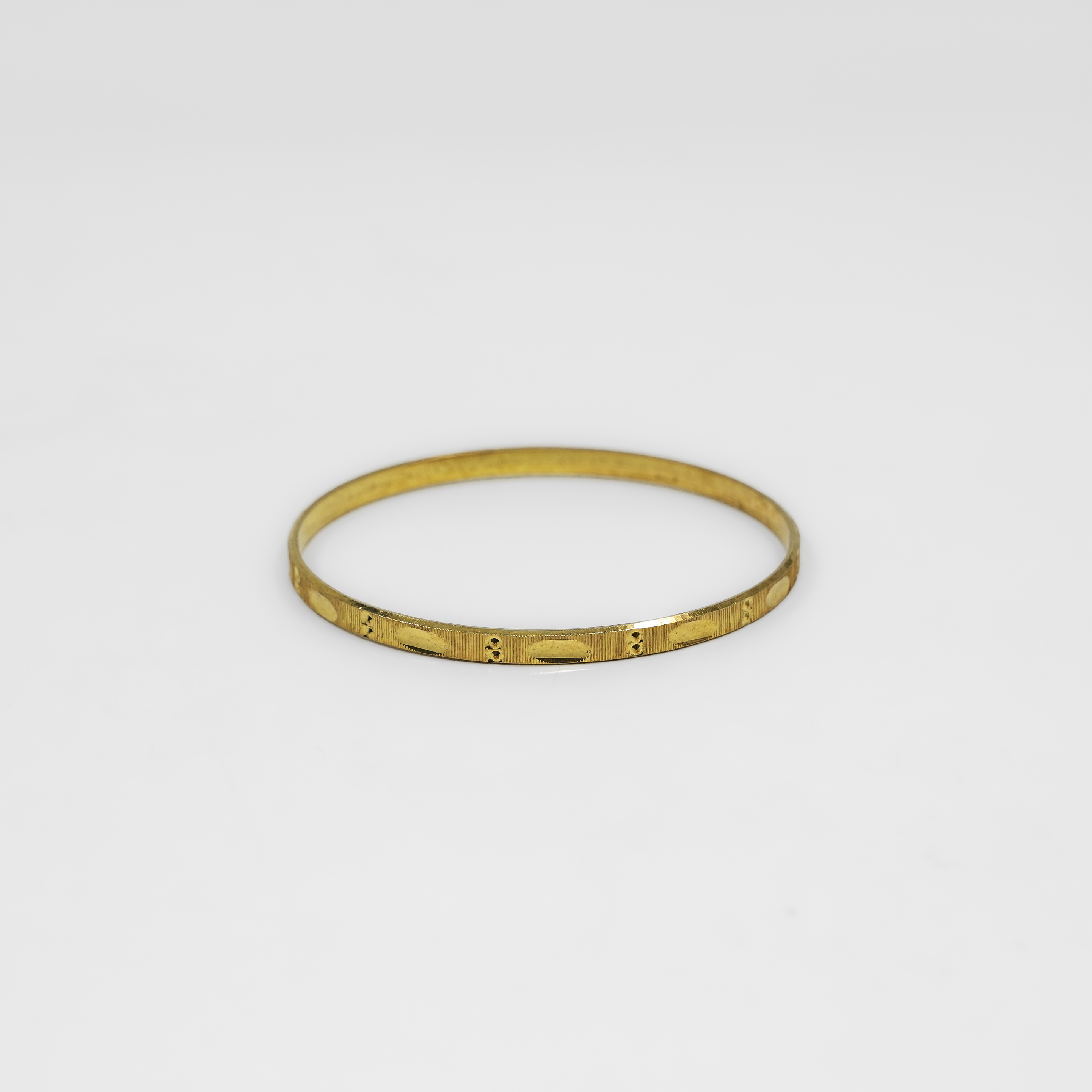 Classic Gold Polished Silver bangle with textured design, perfect for daily wear and traditional occasions. Buy Gold Polished Silver Bangle from Raag Silver Jewellery in Hyderabad.