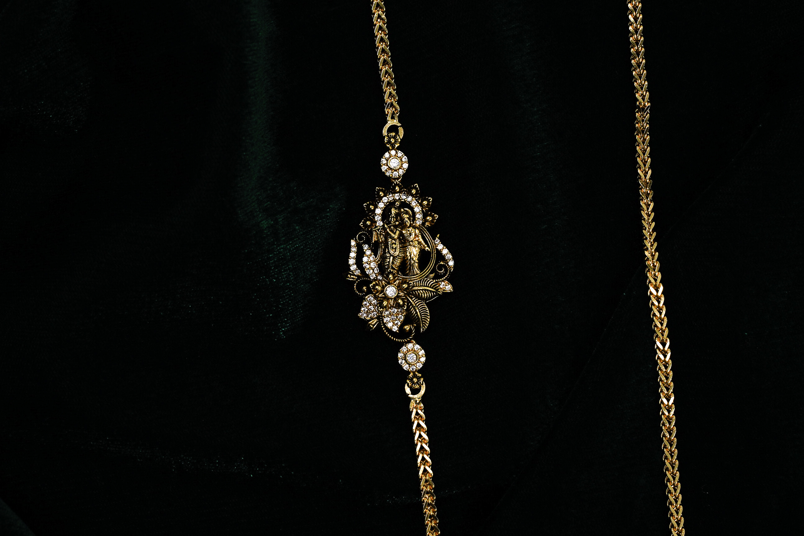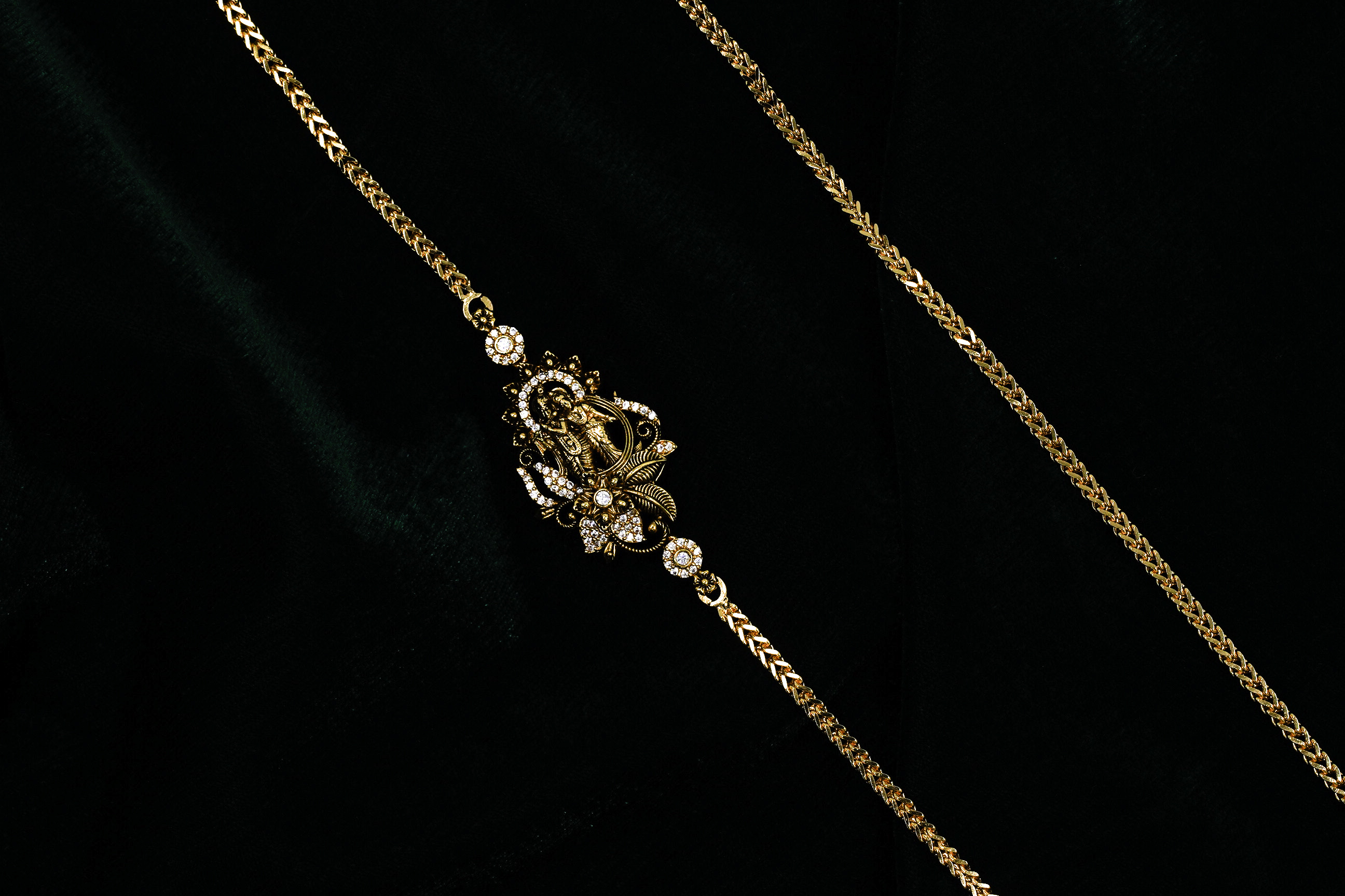 Elegant Gold Polished Silver chain featuring a traditional design, perfect for festive occasions. Buy Gold Polished Silver Chain from Raag Silver Jewellery in Hyderabad.