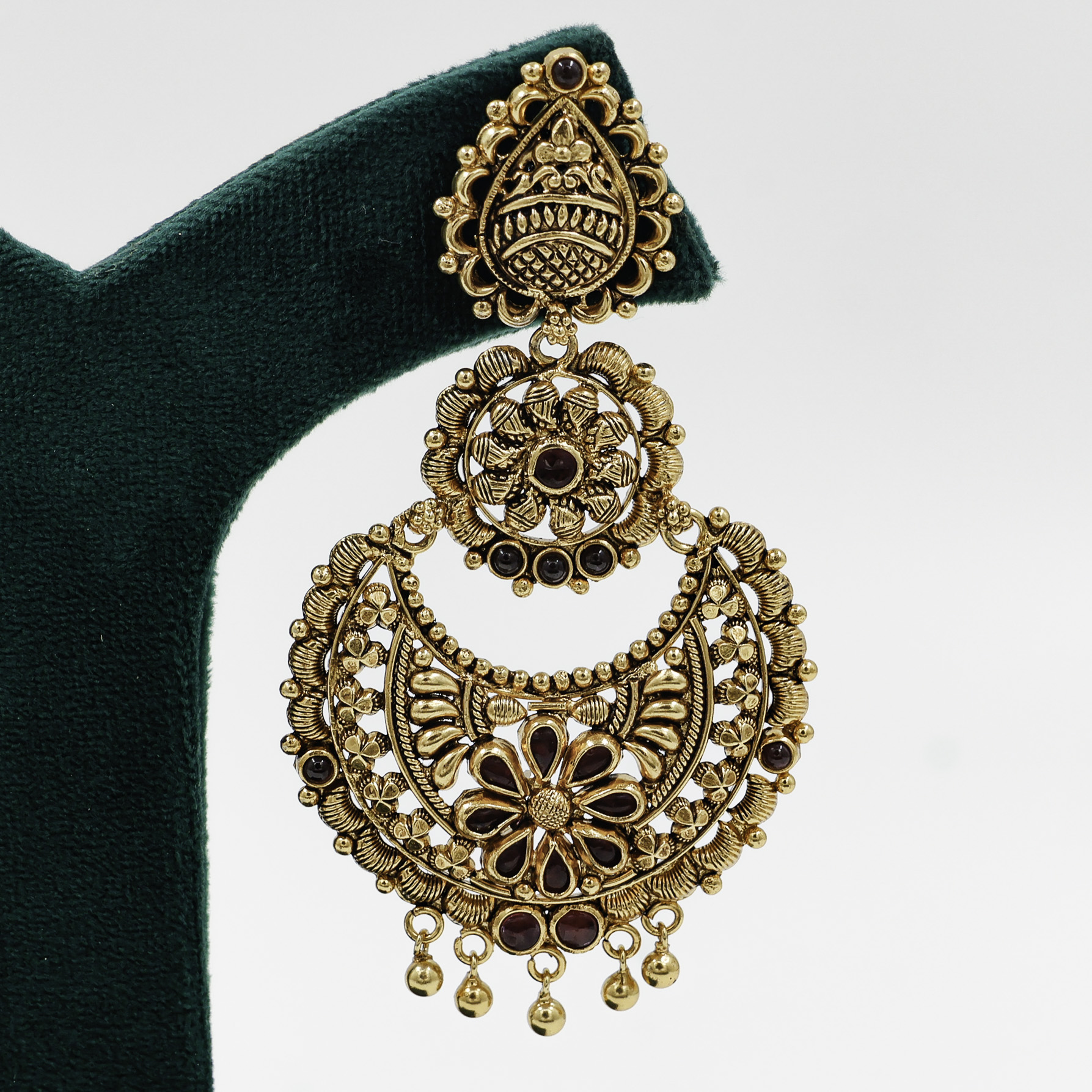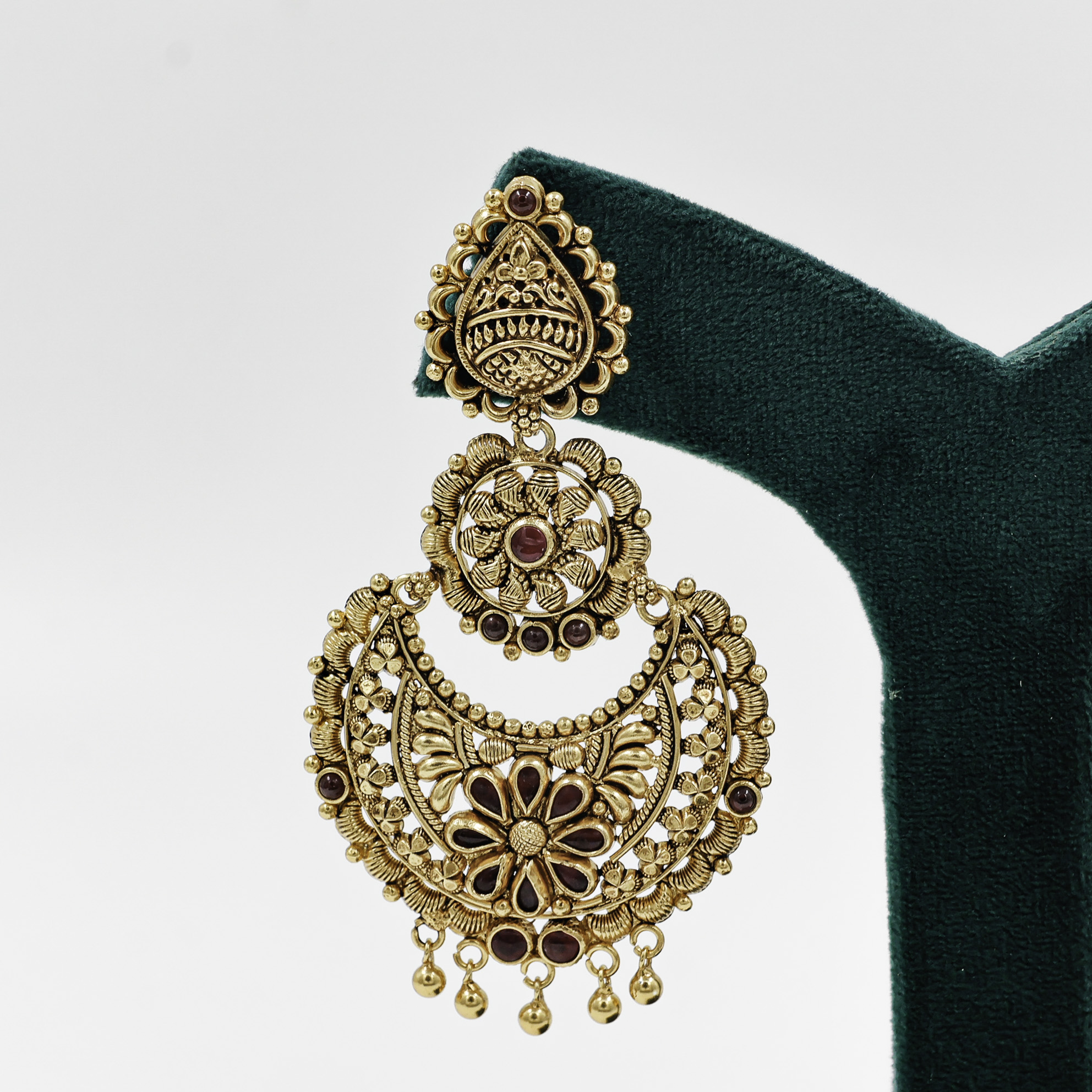 Intricate Gold Polished Silver drop earrings with floral design, perfect for weddings and festive occasions. Buy Gold Polished Silver drop earrings from Raag Silver Jewellery in Hyderabad.