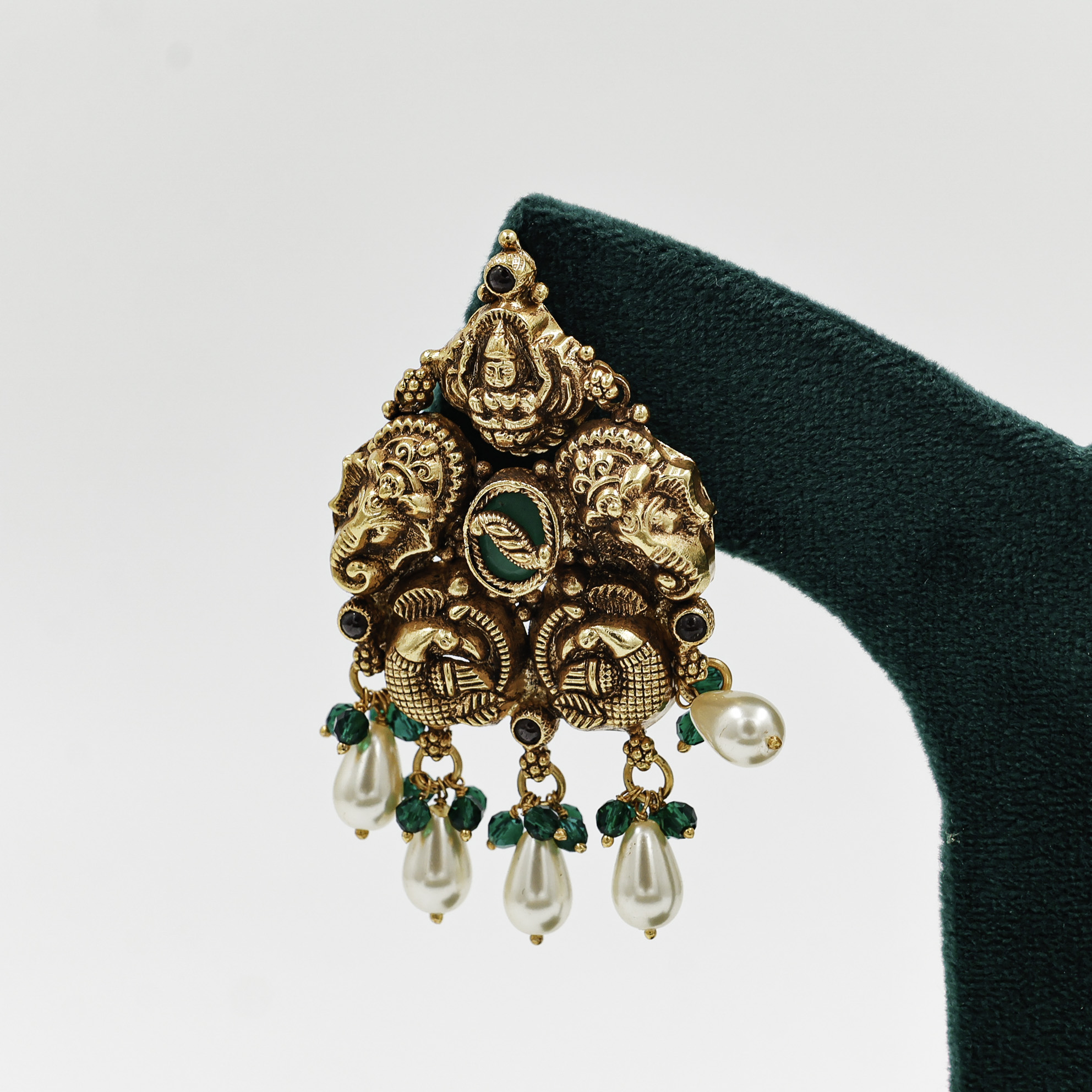 Elegant Gold Polished Silver earrings with intricate detailing, perfect for traditional occasions. Buy Gold Polished Silver Earrings from Raag Silver Jewellery in Hyderabad.